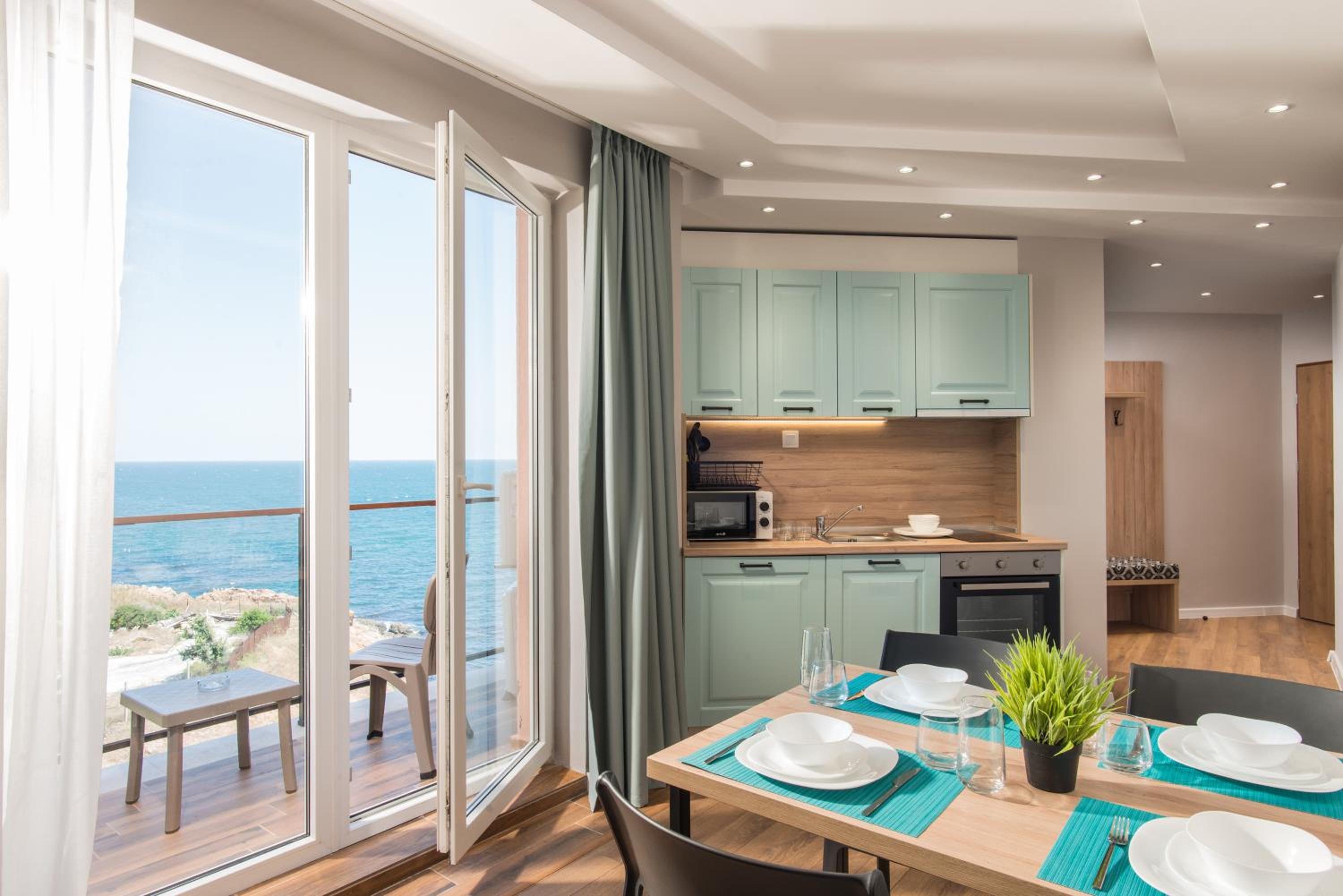 Приятна атмосфера, първа линия с гледка към морето, красиво обзавеждане, удобни легла и разтегателен диван. Вече за втори път сме тук и отново ще дойдем! Препоръчвам за семейства с деца, пясъчен плаж се намира точно под хотела. Благодарим много!