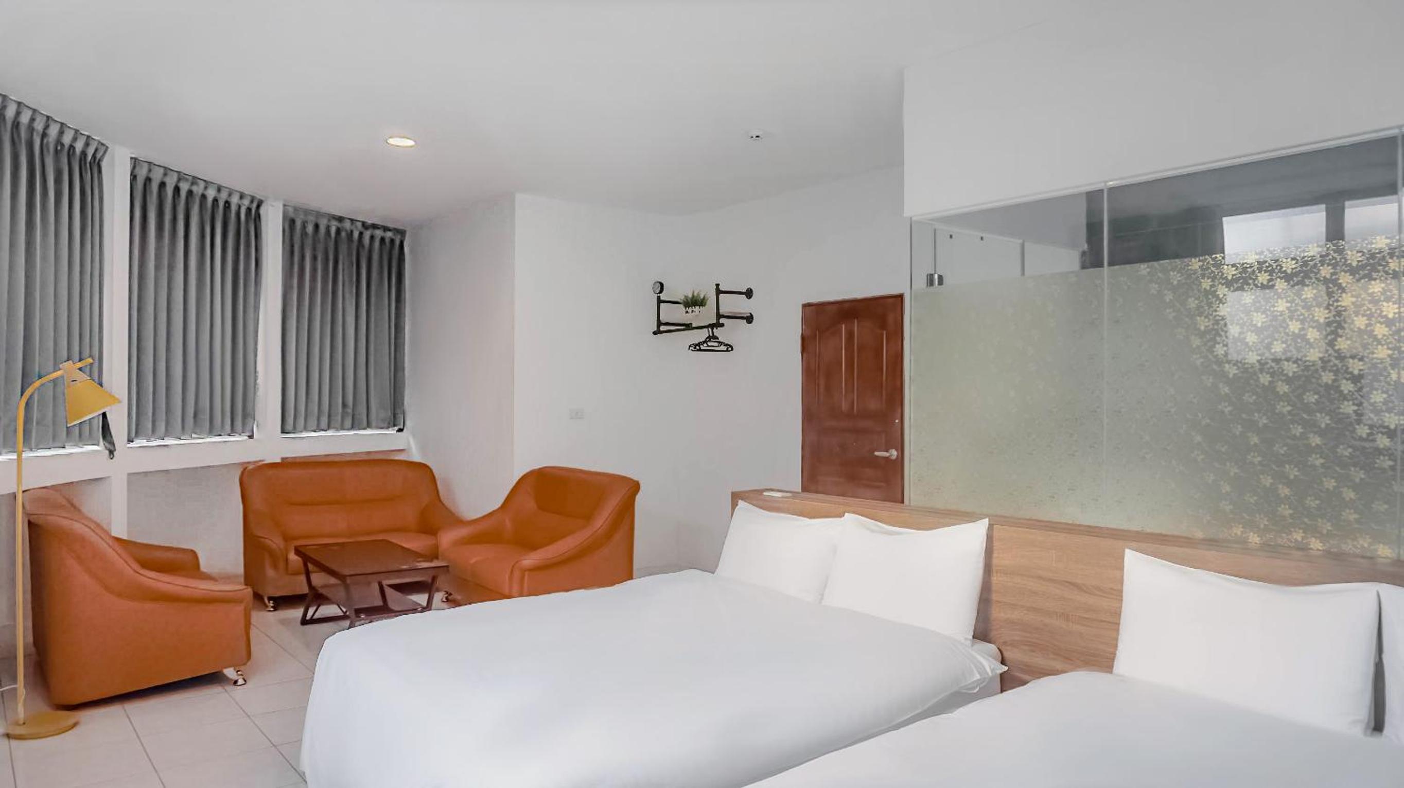 兩天一夜 環境安靜,舒適 衛浴設備乾濕分離 大廳還有咖啡飲料厚片吐司隨時可吃很棒