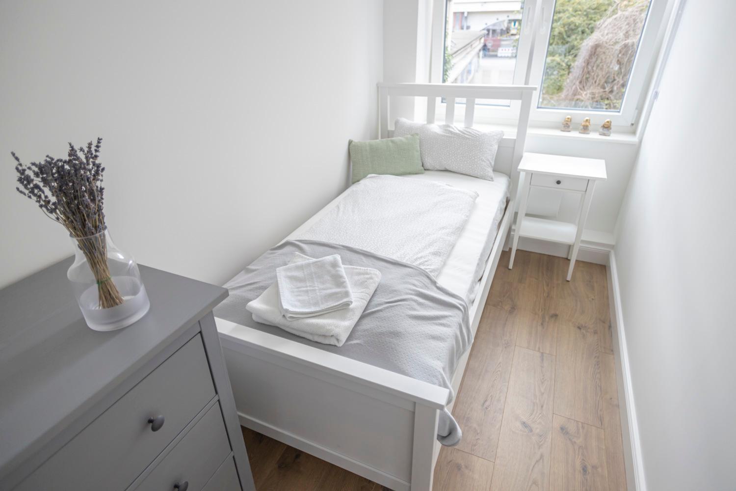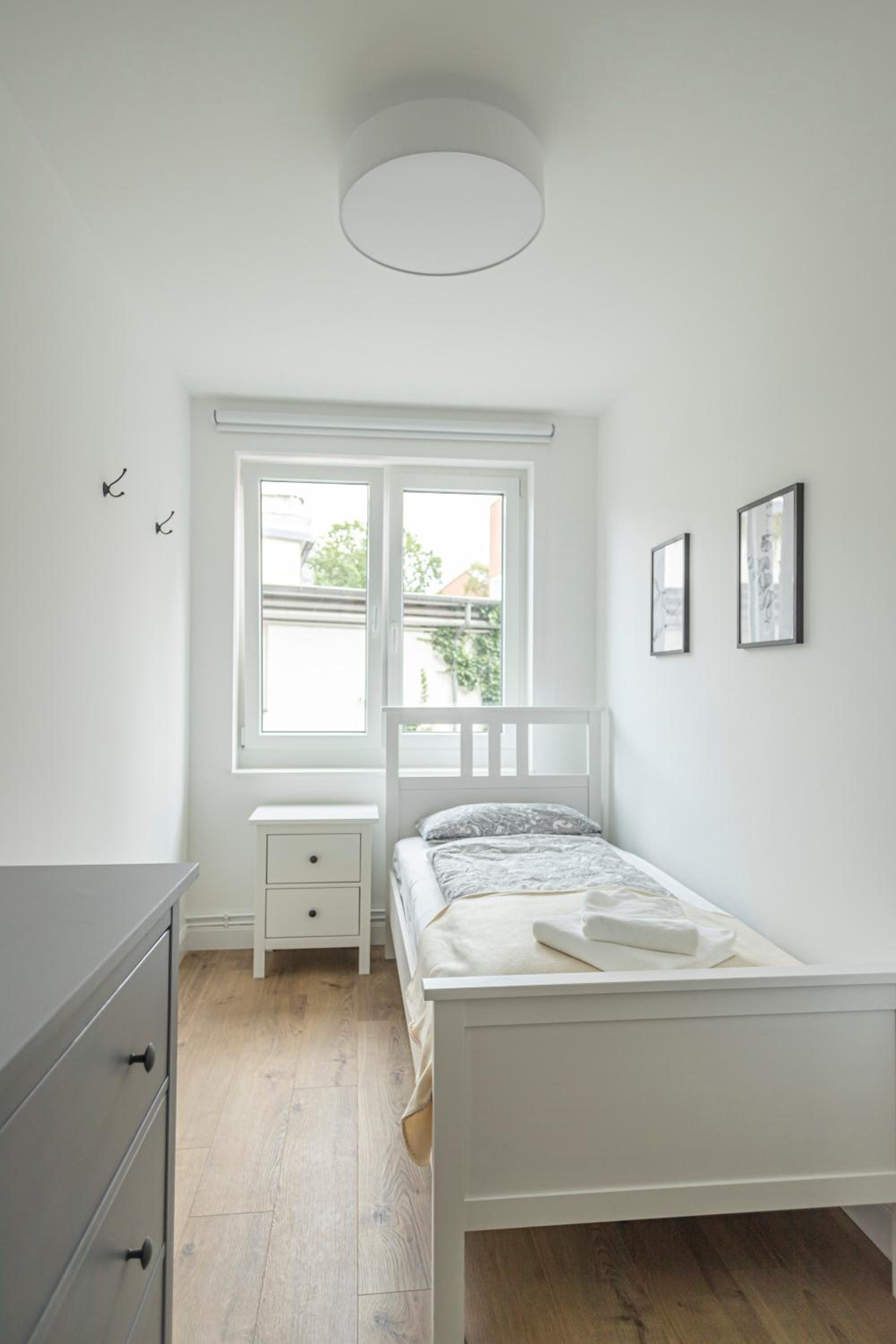 Gute Zimmerausstattung und -aufteilung, kurzer Weg zur U-Bahn U3 - 15 Min. bis zum Zentrum, günstiges Parkhaus in der Nähe