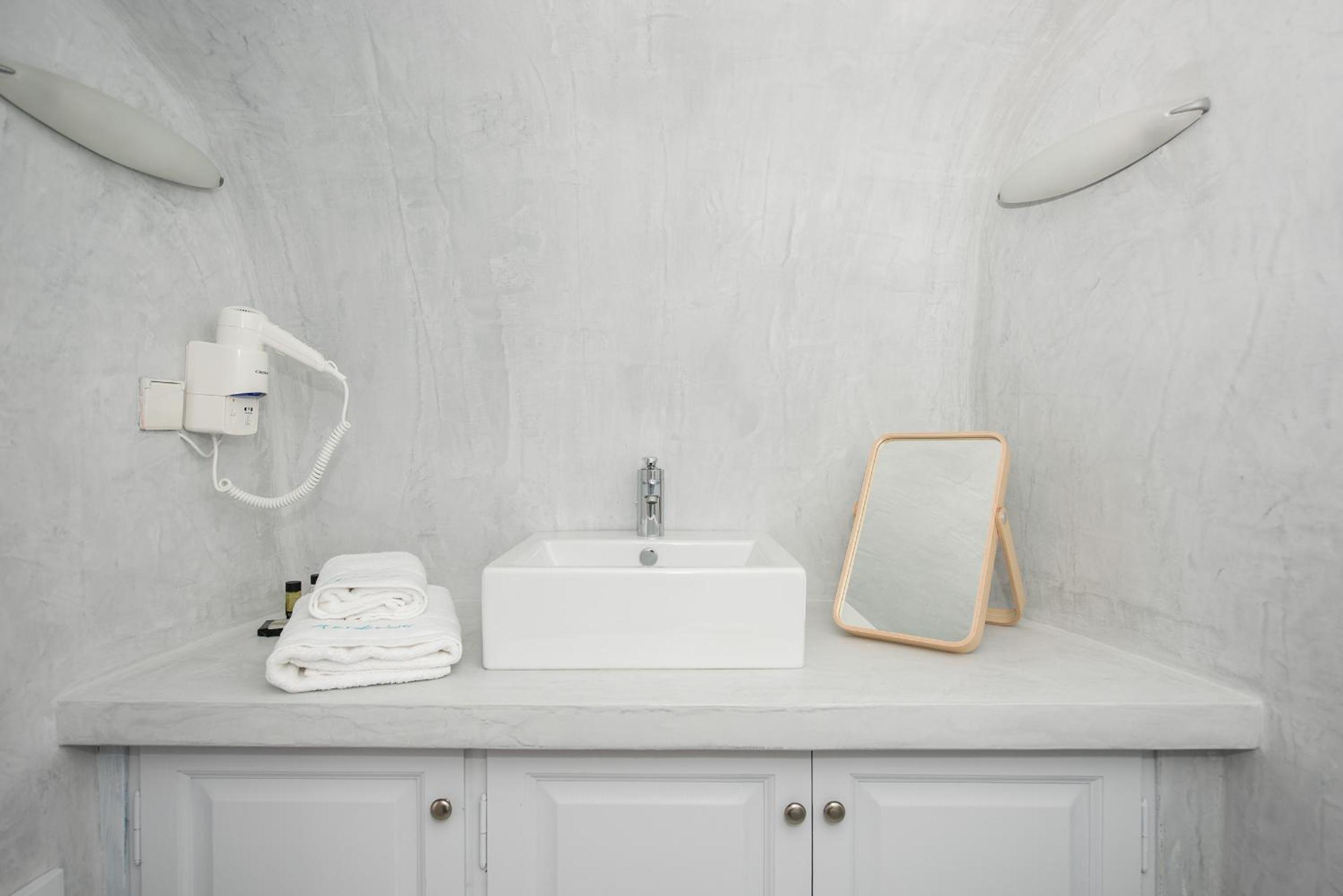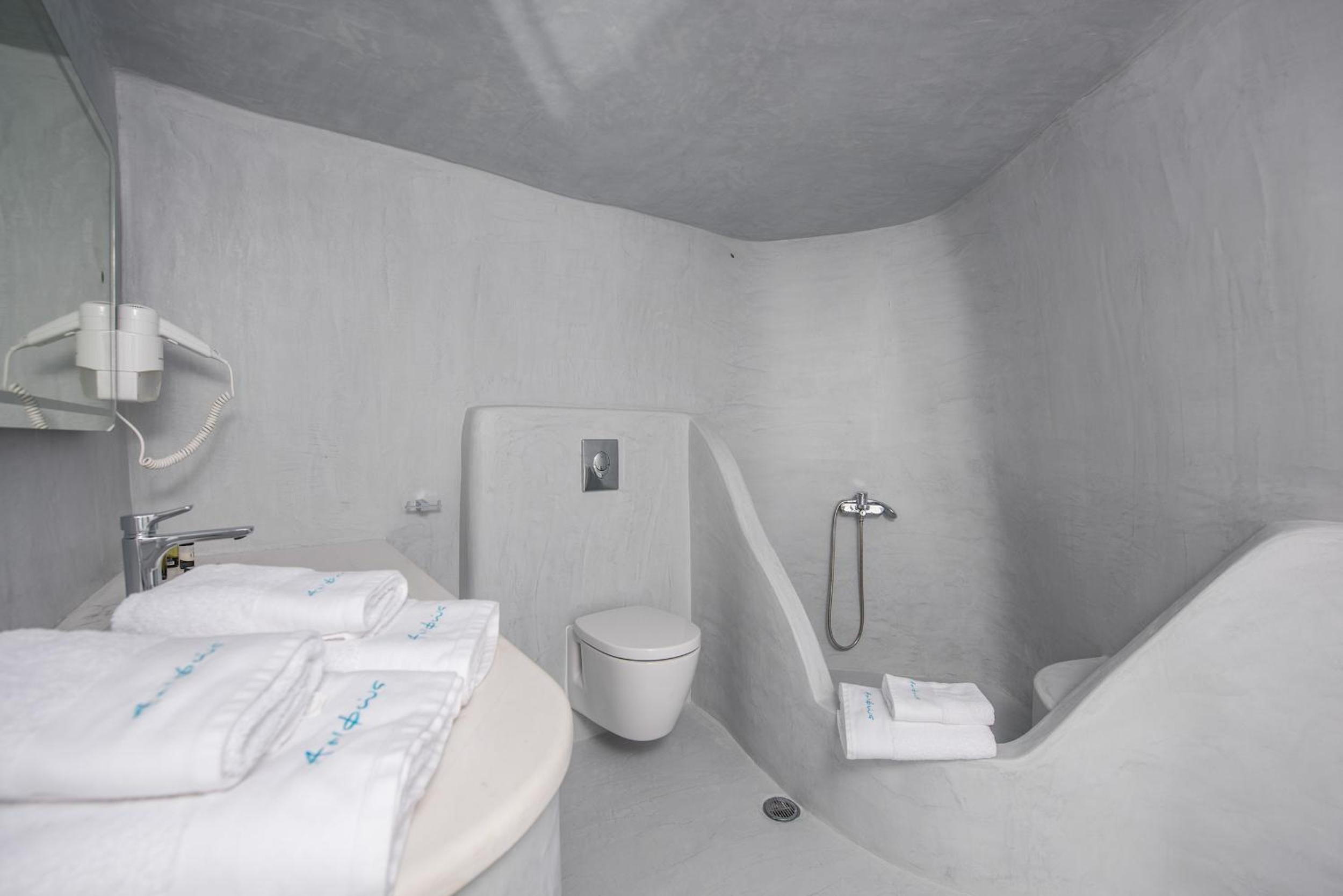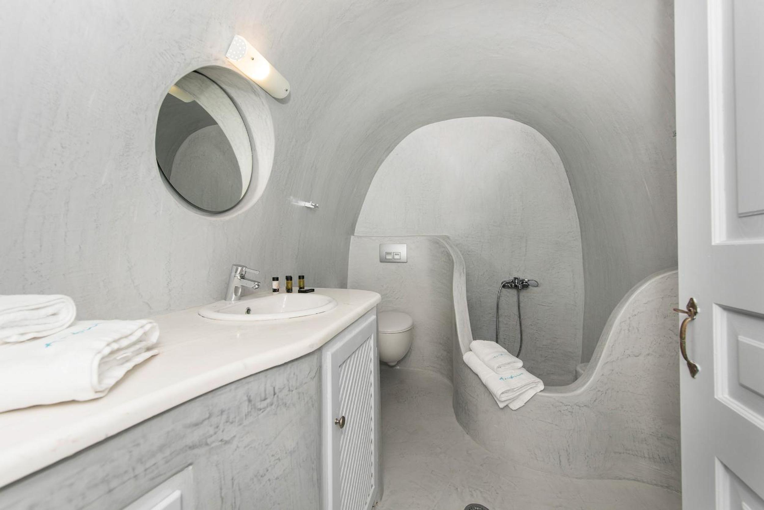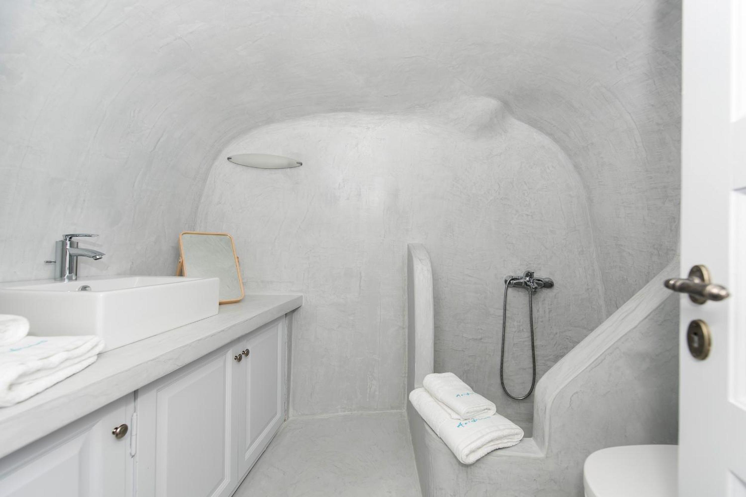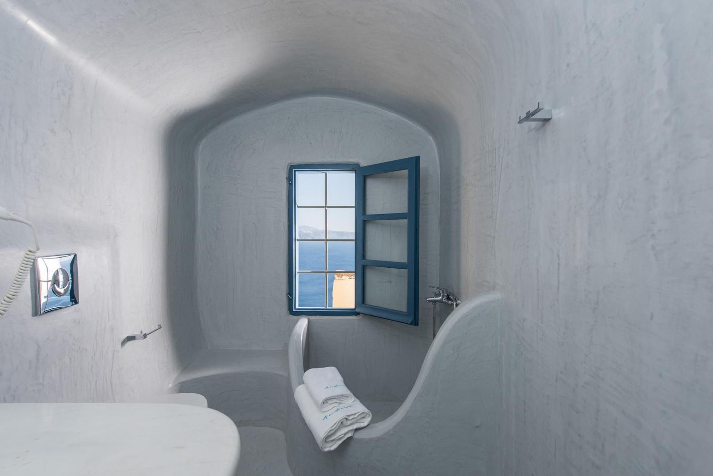 Those views were incredible! The suite was a little outdated but very comfy, The loungers in our balcony were a little dirty but we were provided with pool towels, so we used them of course. Location was incredible in Oia. We were assisted with our luggage and had no problems with the stairs.