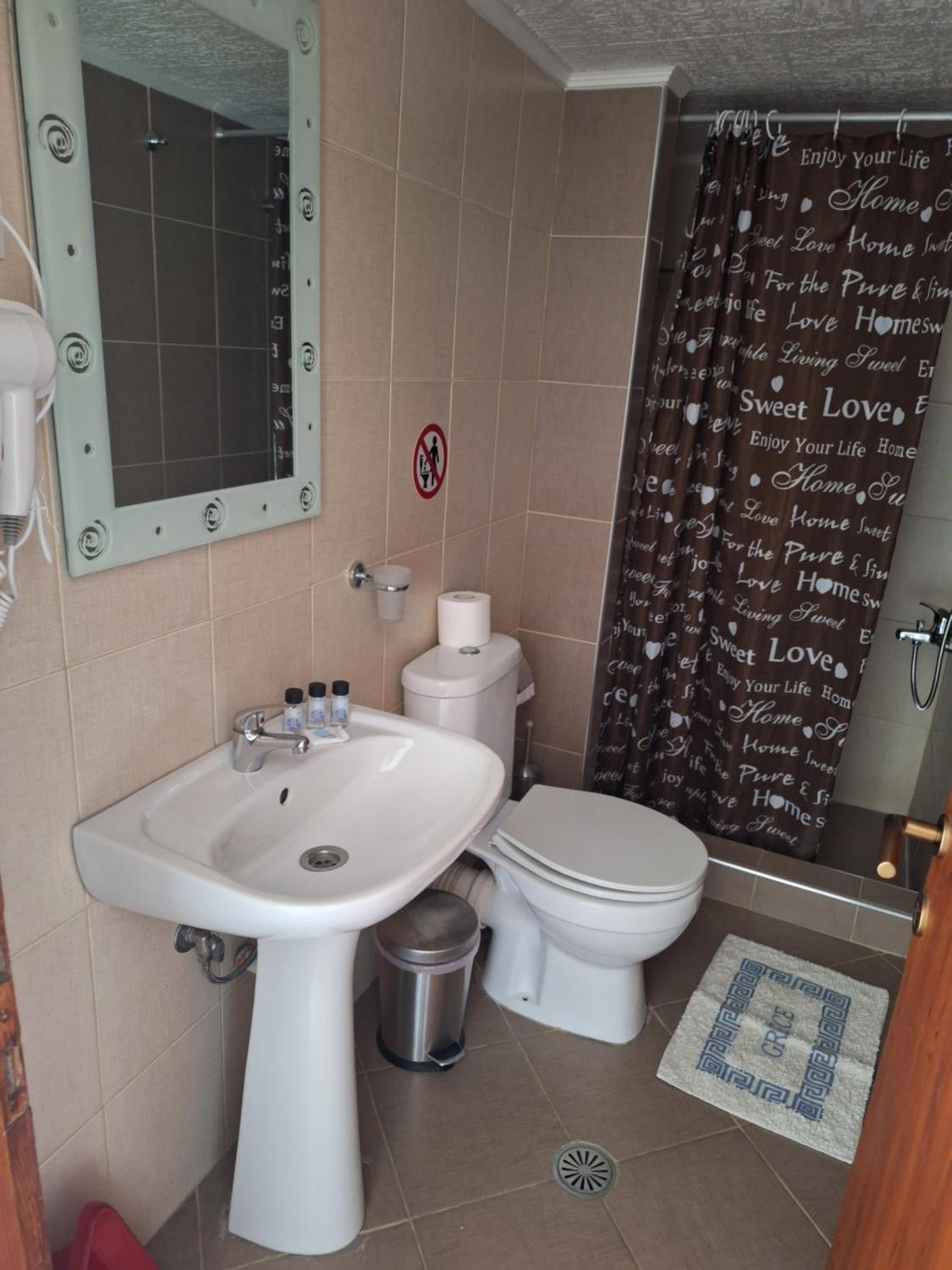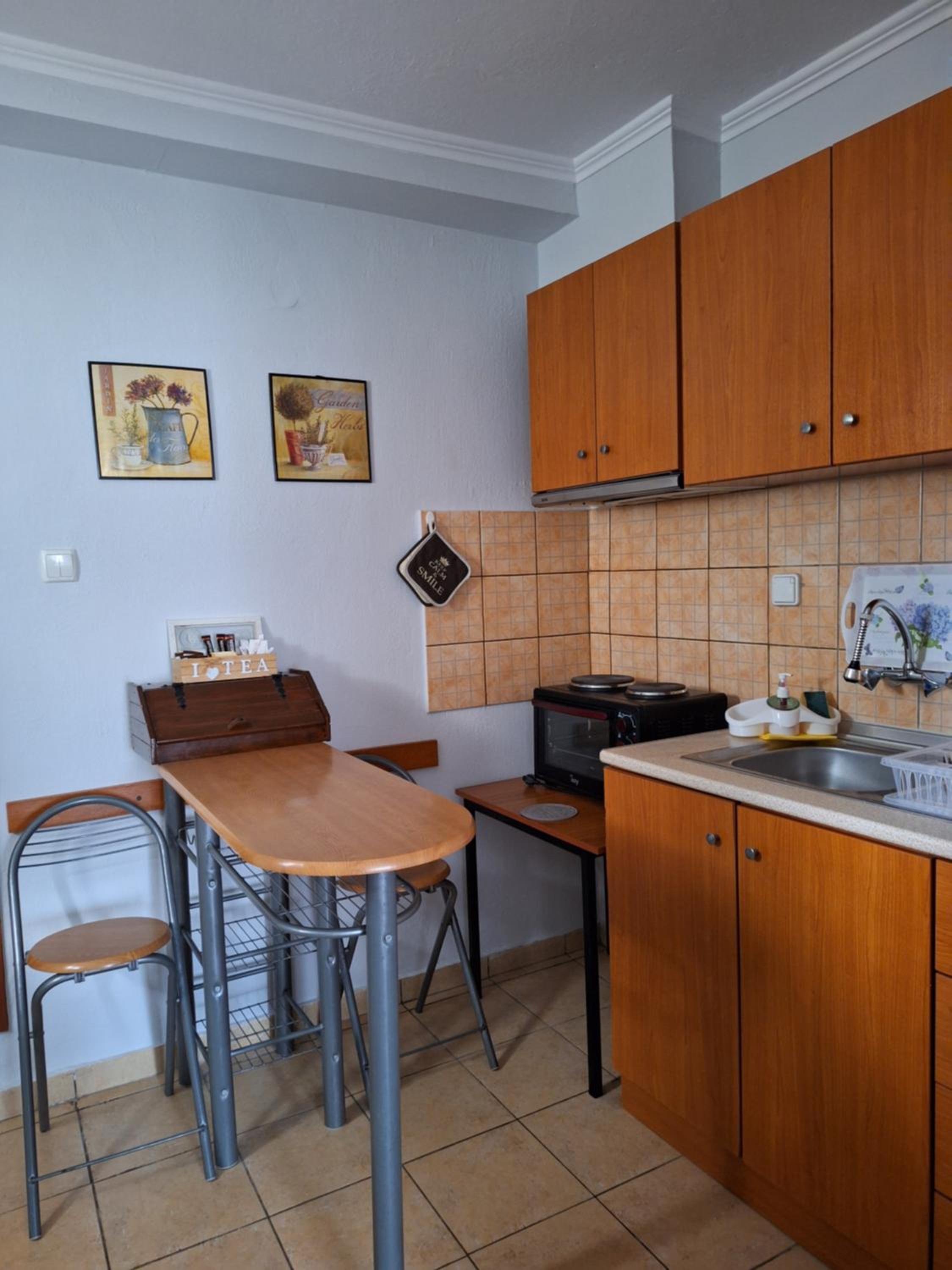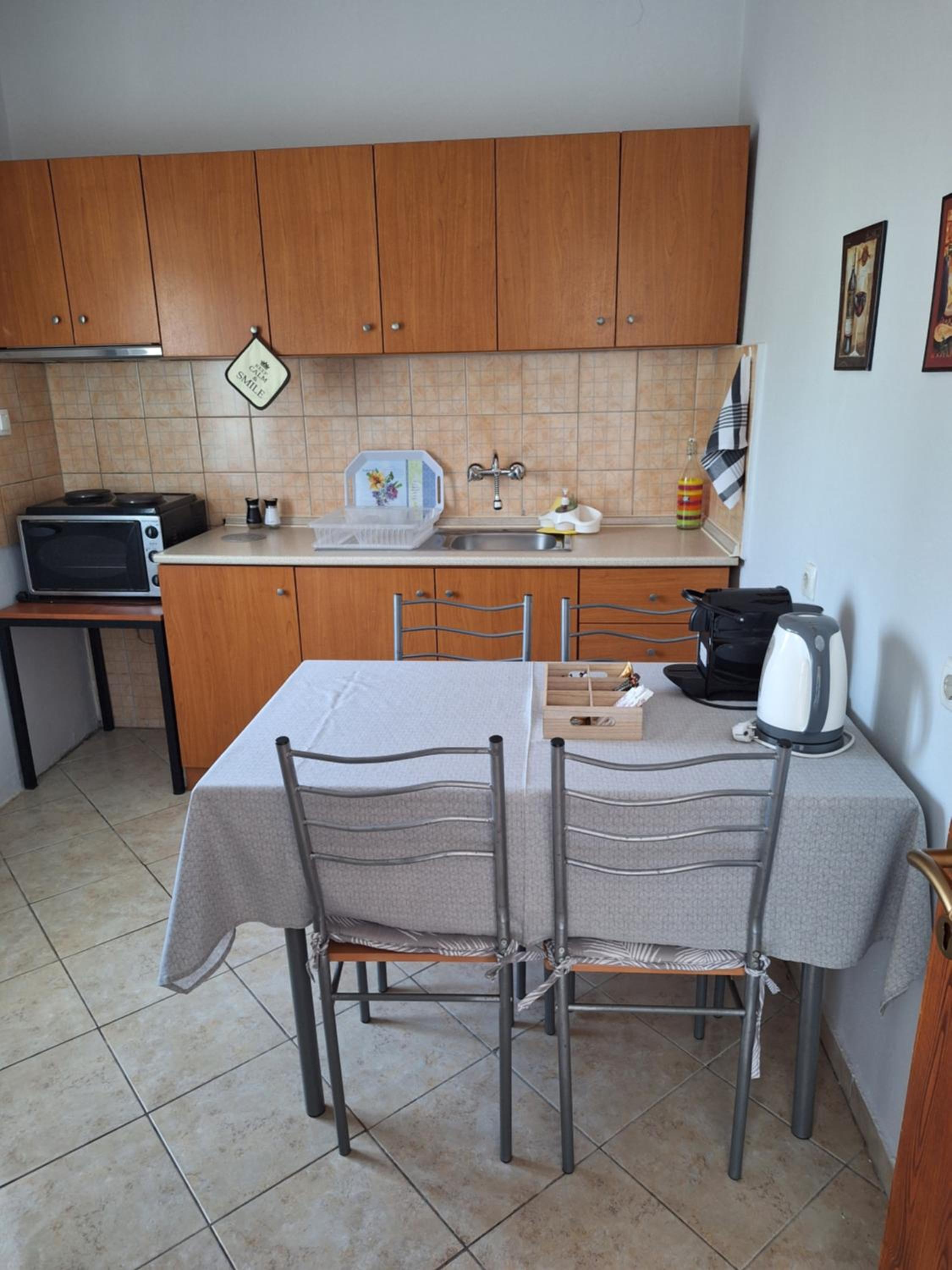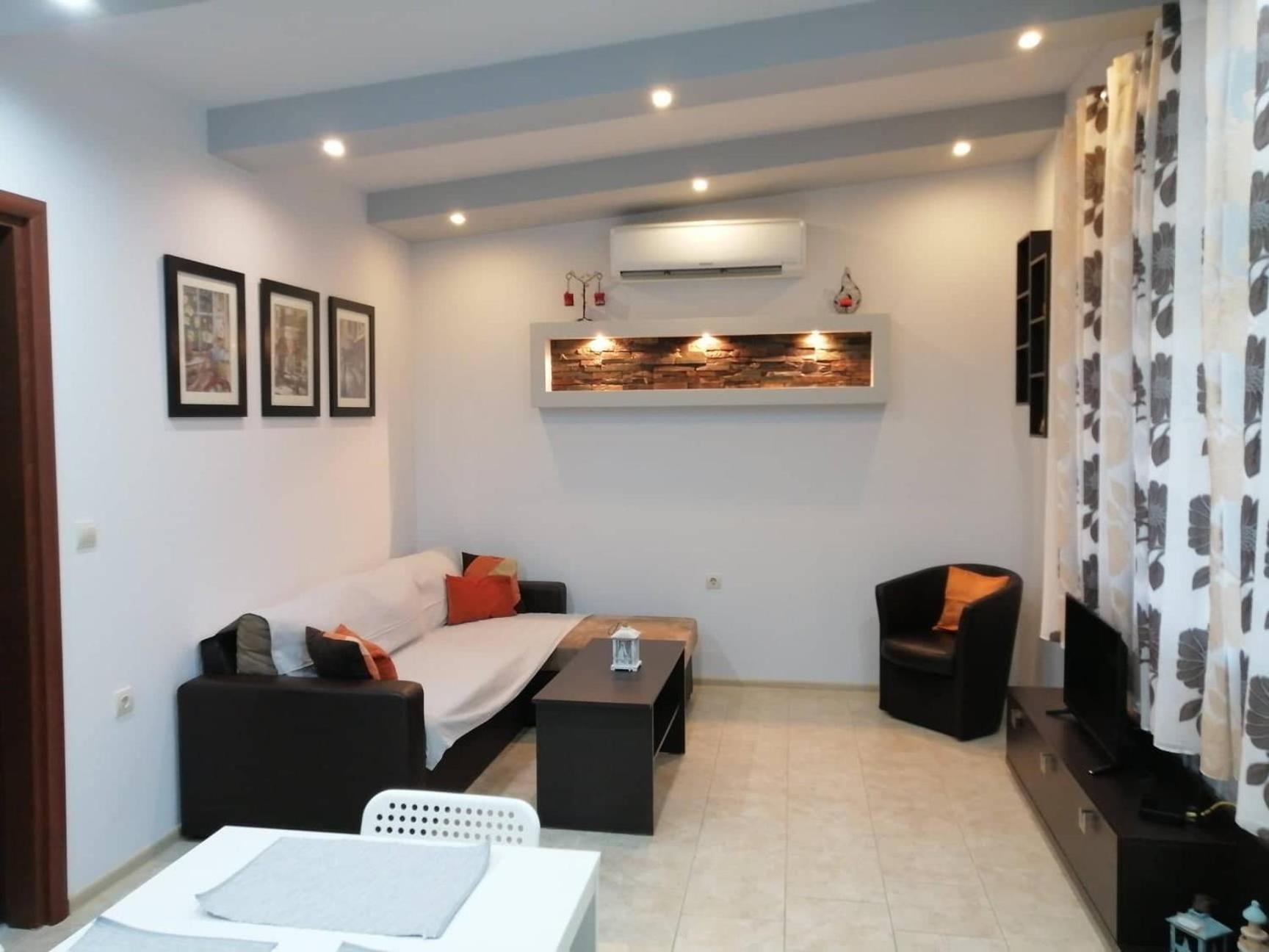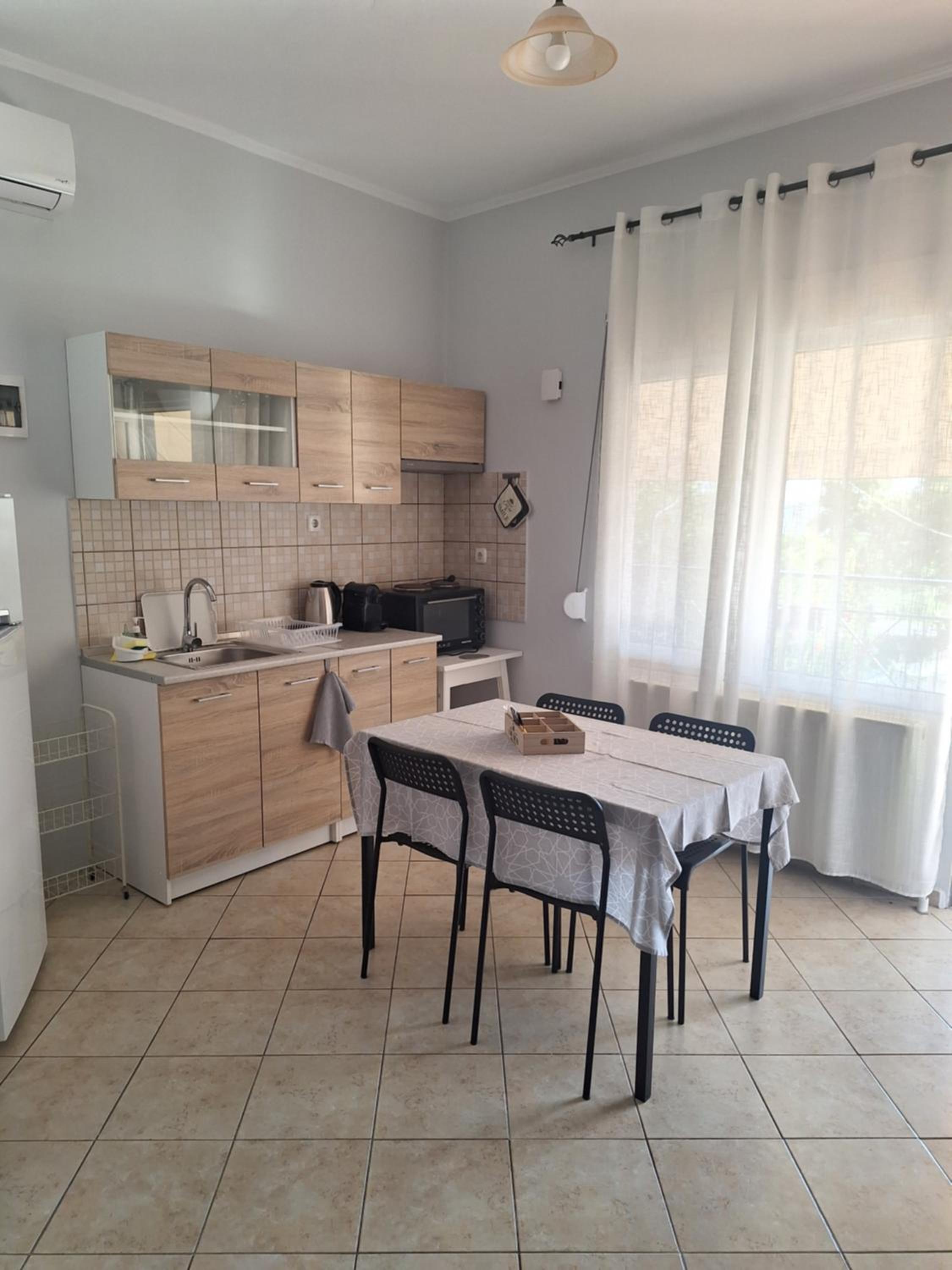 The place is really quiet, you can relax. Katerina is nice and helpful. She treated us like her family and was available at all times. The apartment is spacious and well equipped. The AC is working great, but once the room is cooled it can be turned off because the rooms are cold. They don t heat easily.