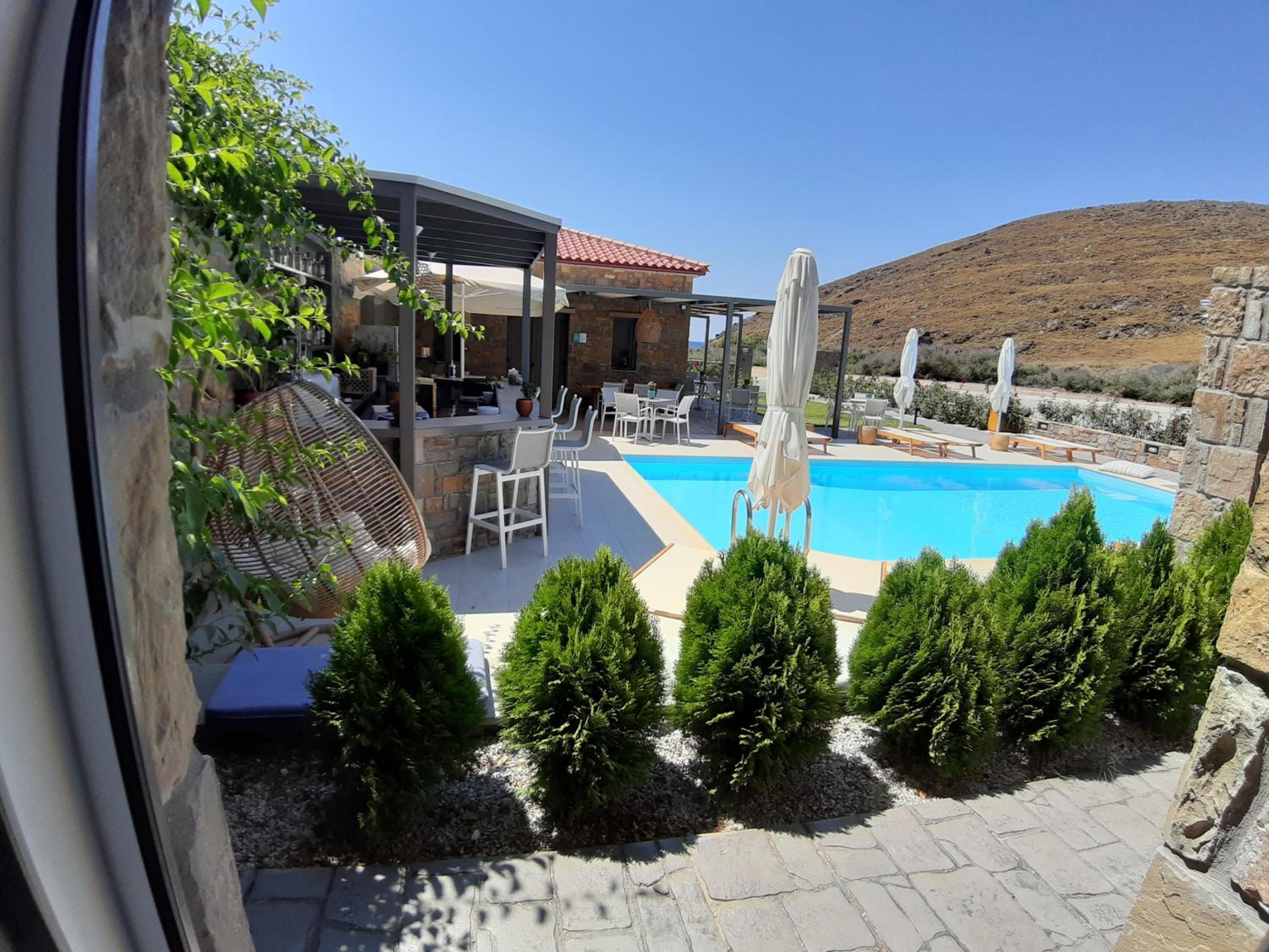What an amazing place and people! I was truly impressed and enjoyed our stay so much. Breakfast was delicious, honey and jam home made (rose jam is omg so yummy) fresh figs directly from the tree into your plate, vegetables from their own garden, they had plant milk available (not common in Greece), the apartment was new and nice and the bathroom beautiful, the complex is surrendered by hills so no neighbours, the pools and sun beds with relaxed bars creating a good vibe, Venetia is the best host and everyone was so nice and welcoming!