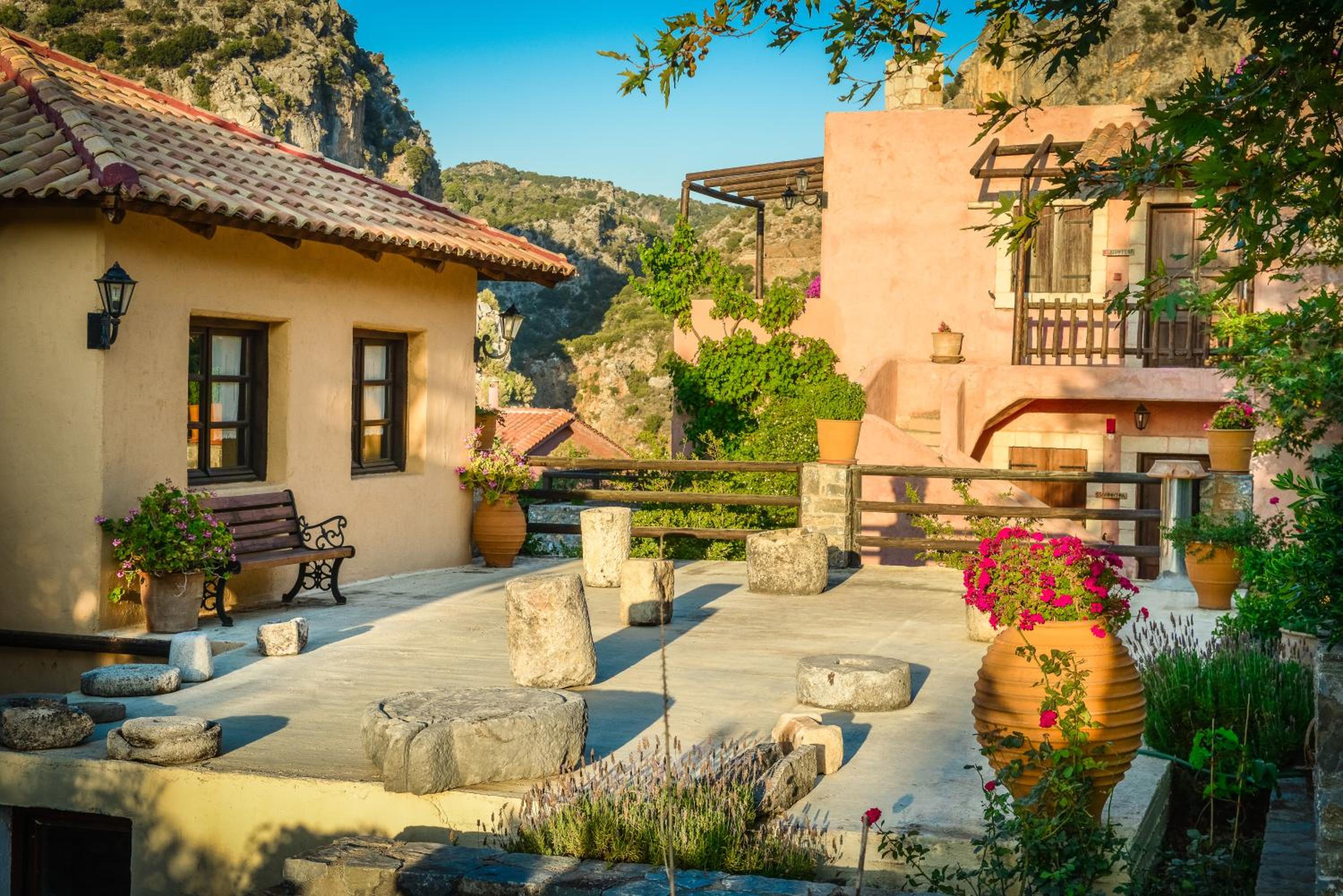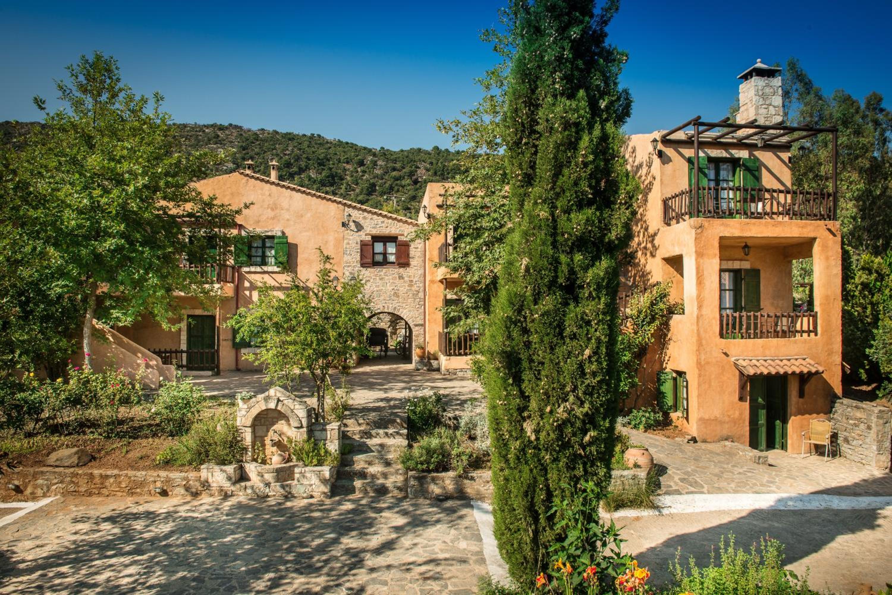 Located near Mount Psiloritis and the springs of Mylopotamos, Enagron provides a tranquil setting amidst olive groves and vineyards, with communal terraces, a lounge, and bar for relaxation.