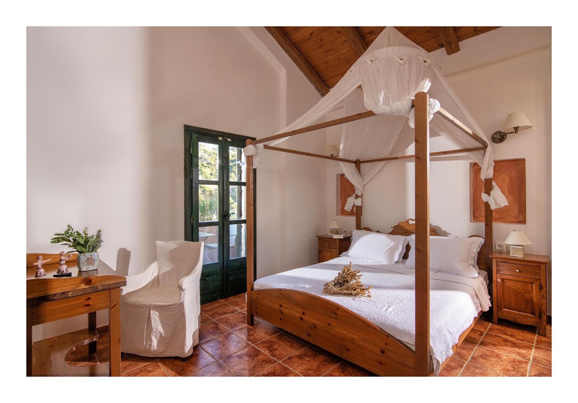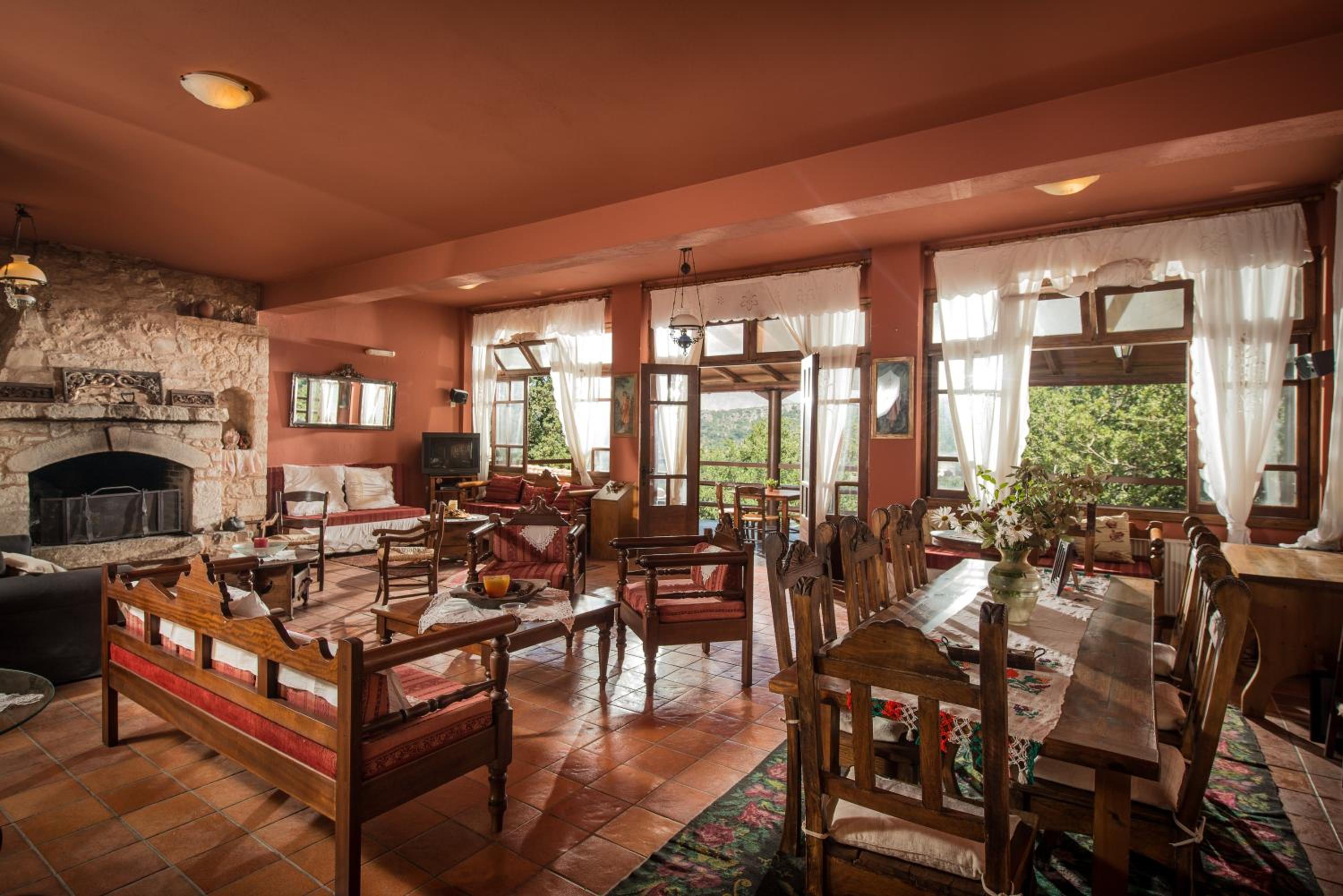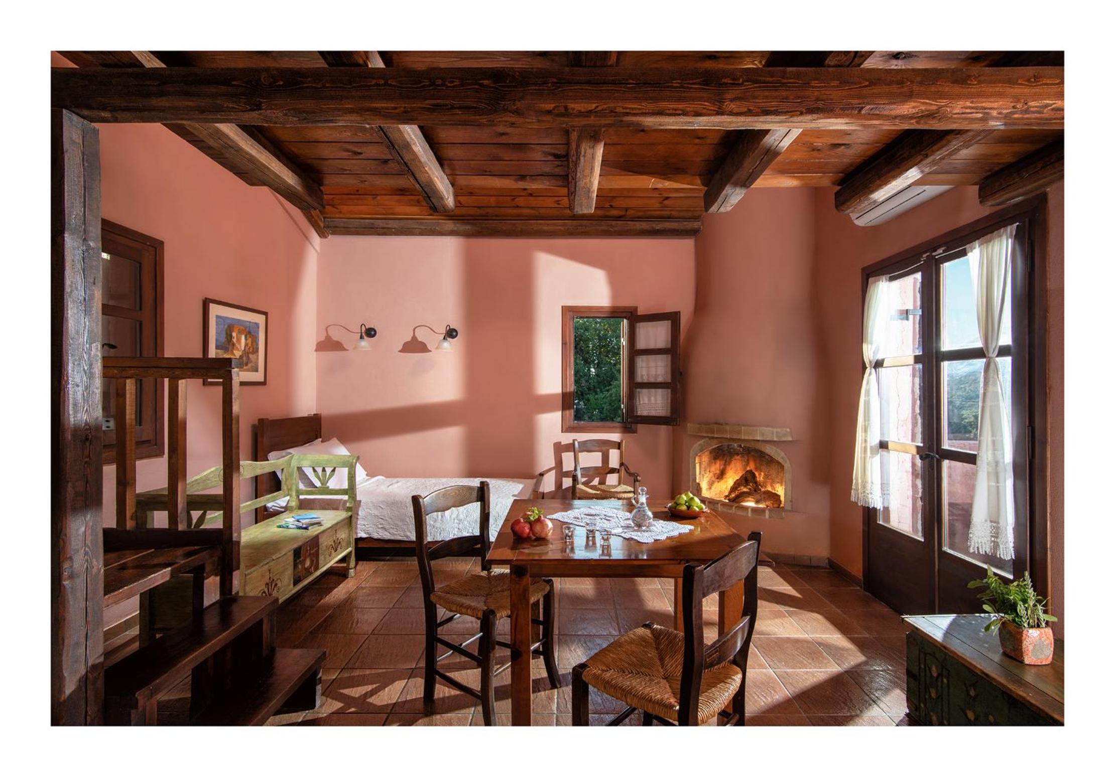 Enagron Ecotourism Houses offer fully furnished apartments accommodating 2 to 6 people, equipped with central heating, air conditioning, and a fireplace.