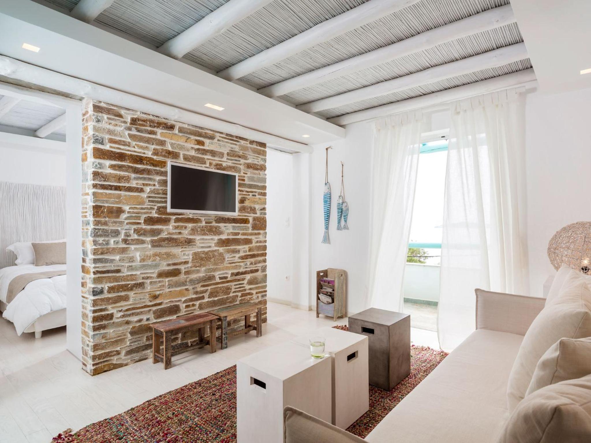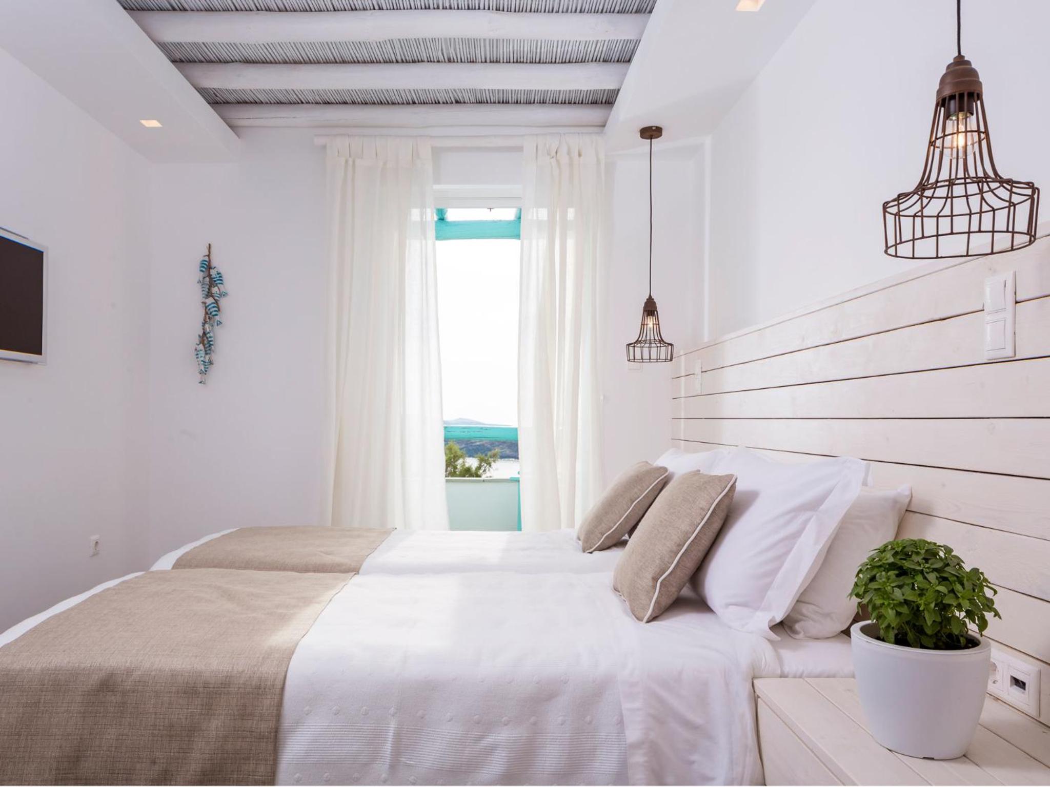 Indulge in breathtaking panoramic sea views from the comfort of your own balcony in our uniquely decorated rooms. The perfect blend of Cycladic style and modern elements awaits you at Paradise Design Apartments.