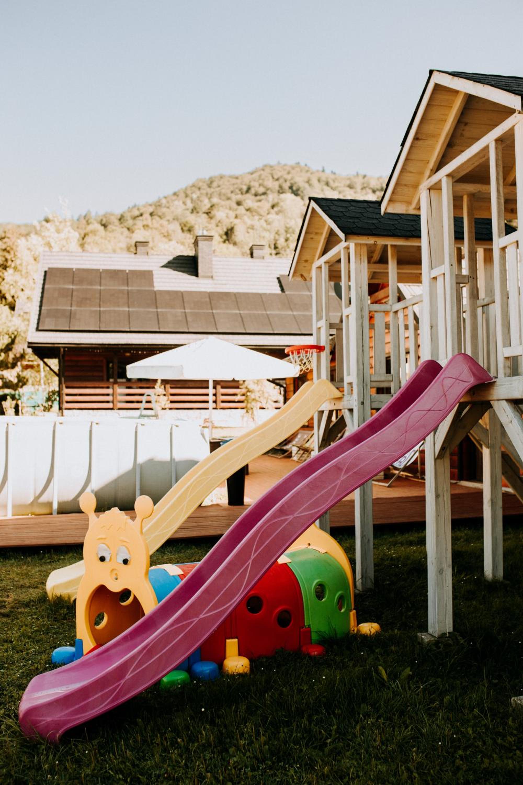 Relaxation and Recreation: Unwind in the outdoor pool, sauna, or hot tub, or explore the area with bicycle and ski rentals. Children can enjoy the playground, making it a perfect family getaway.