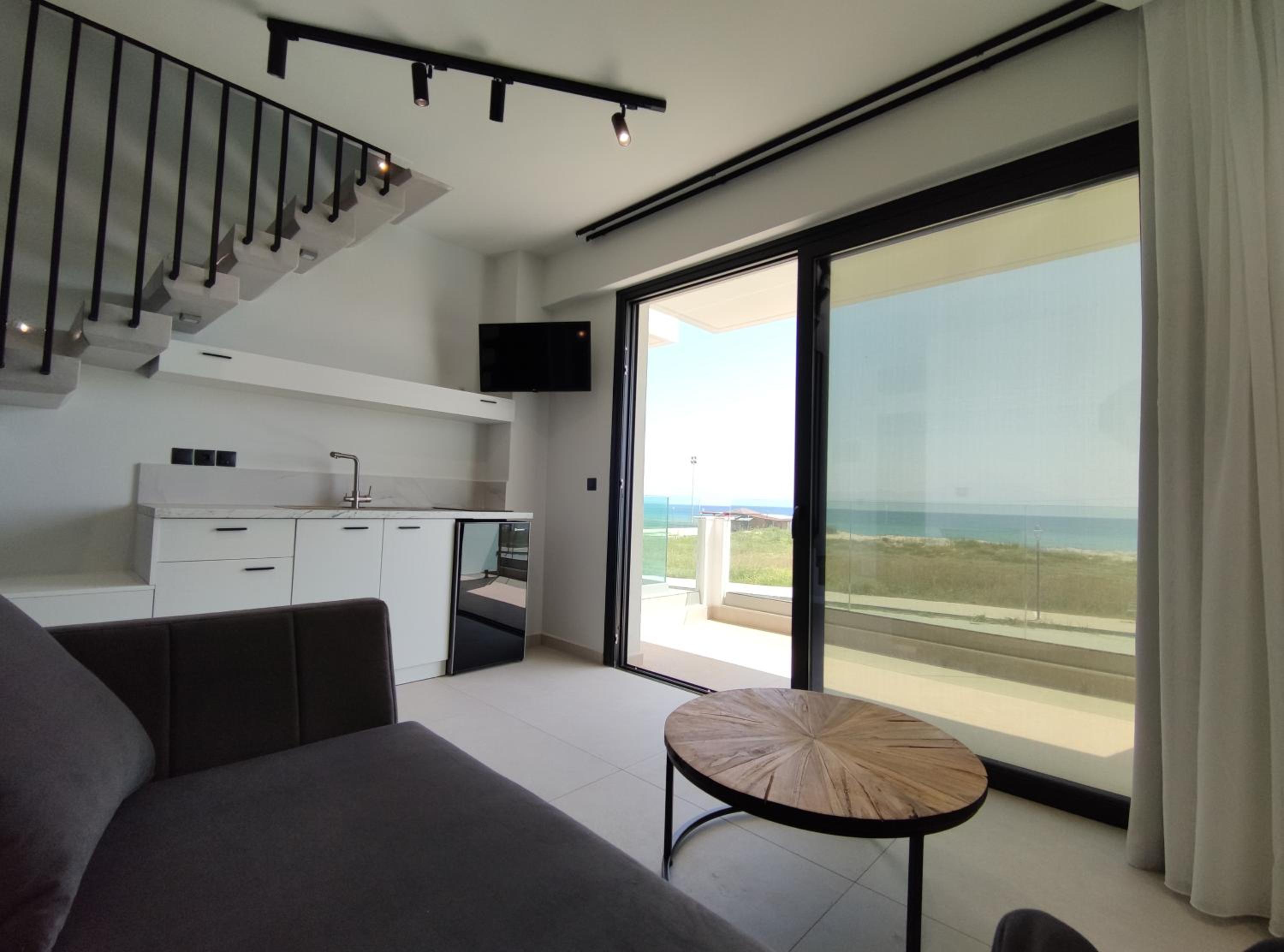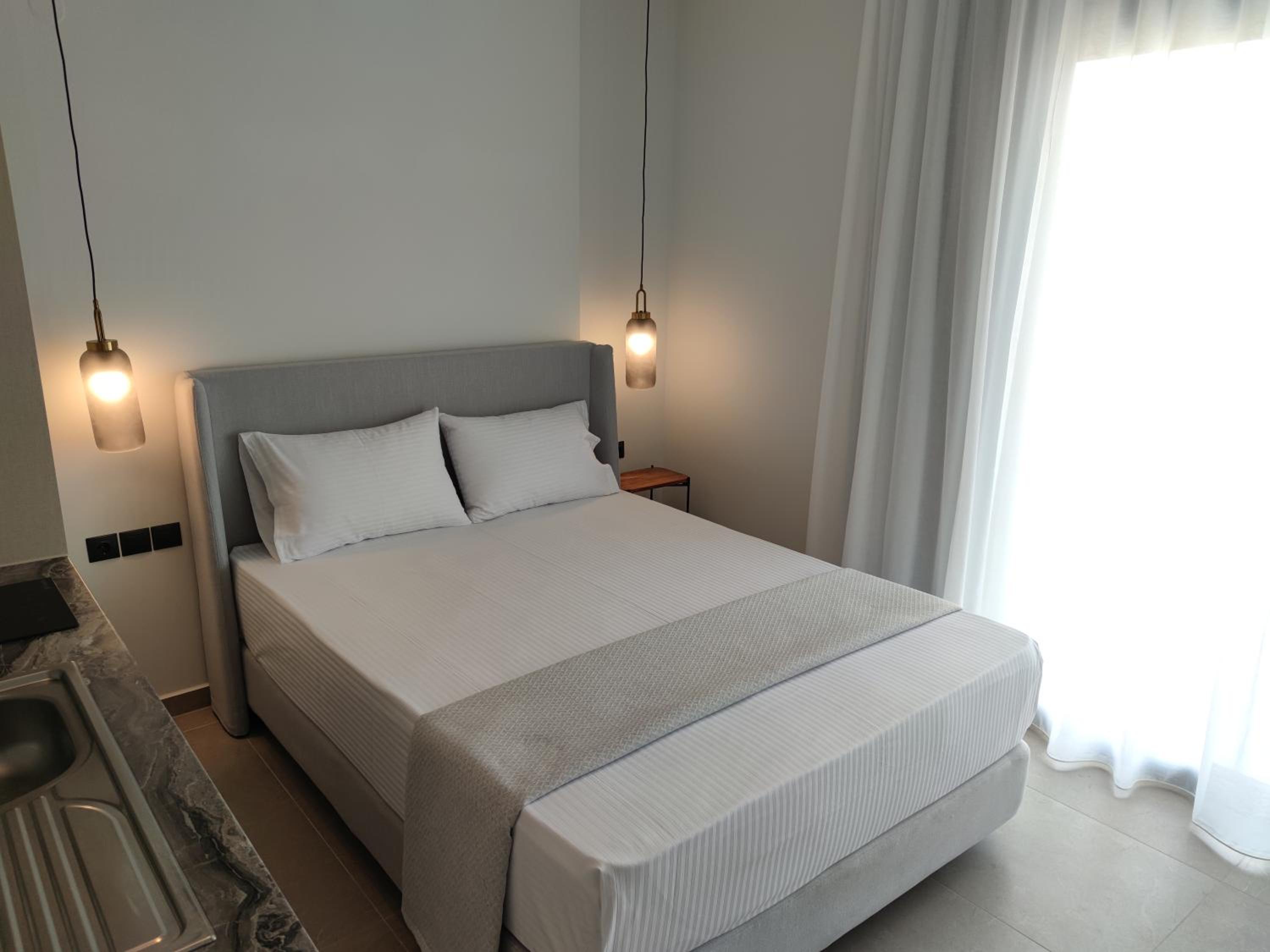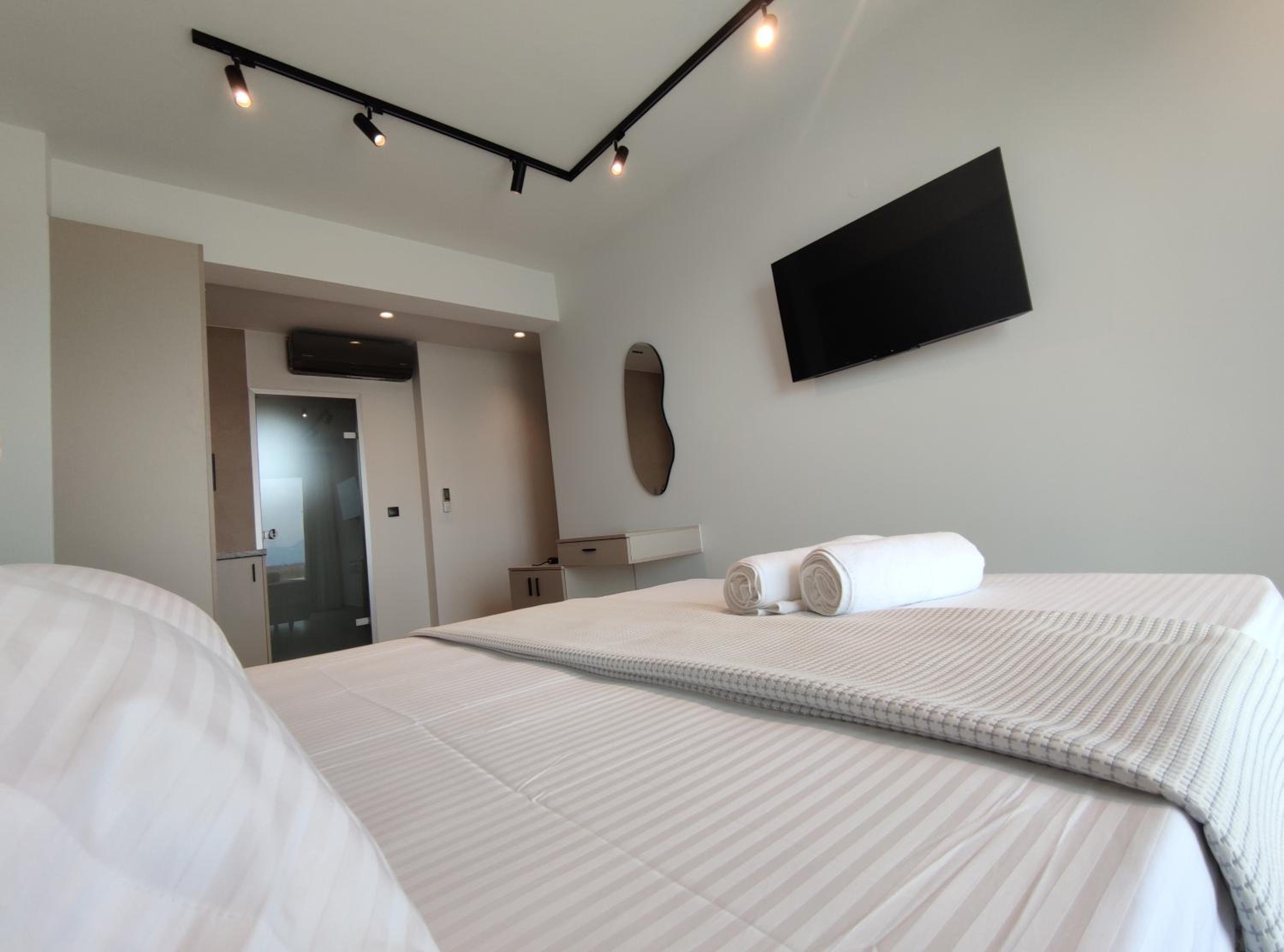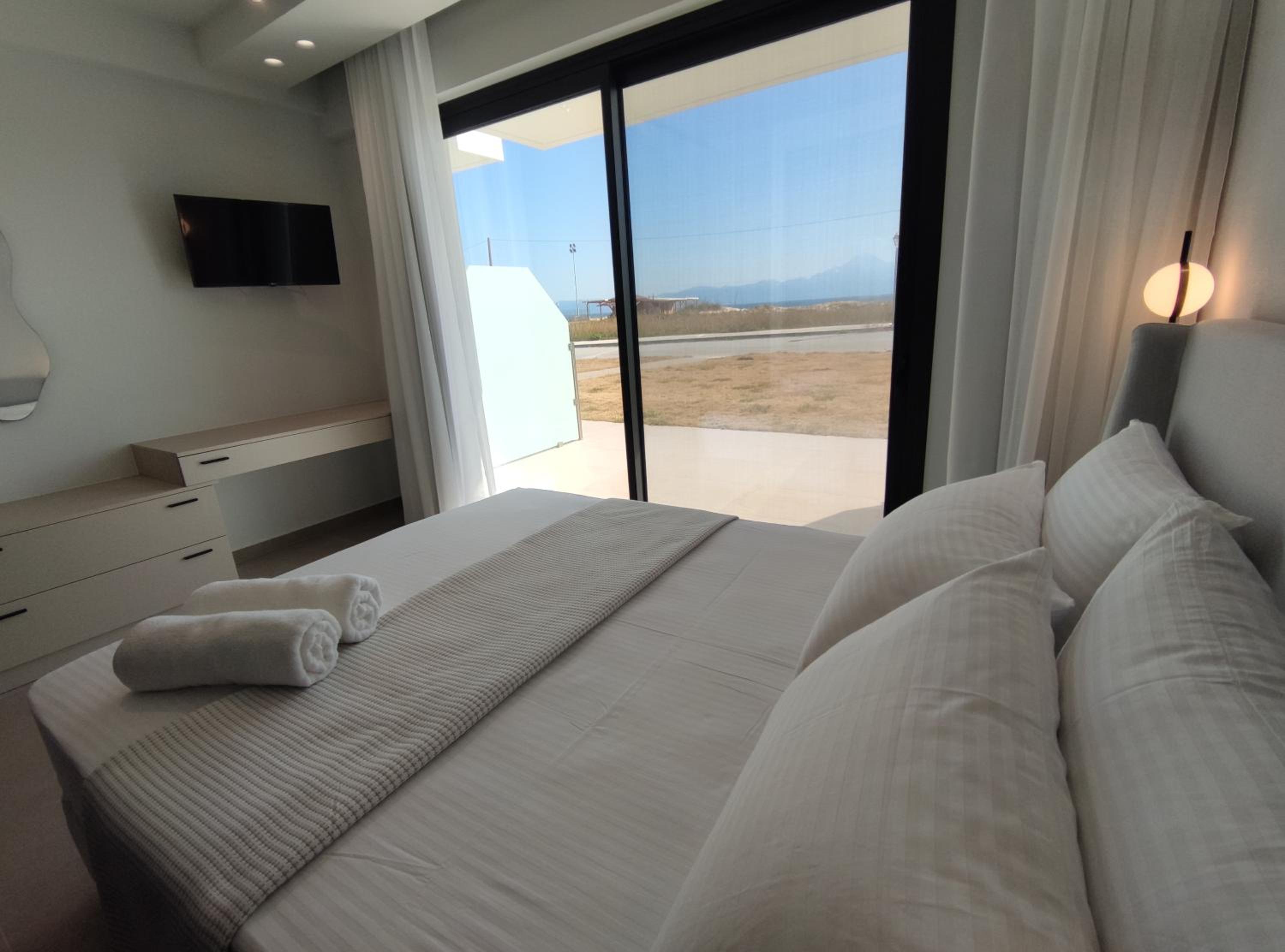 Family-Friendly Accommodation: With spacious family rooms and a welcoming terrace, Onar in Sarti caters to families looking for a relaxing getaway. The flat-screen TV, well-equipped kitchenette, and cozy bed linens ensure a comfortable stay for all.