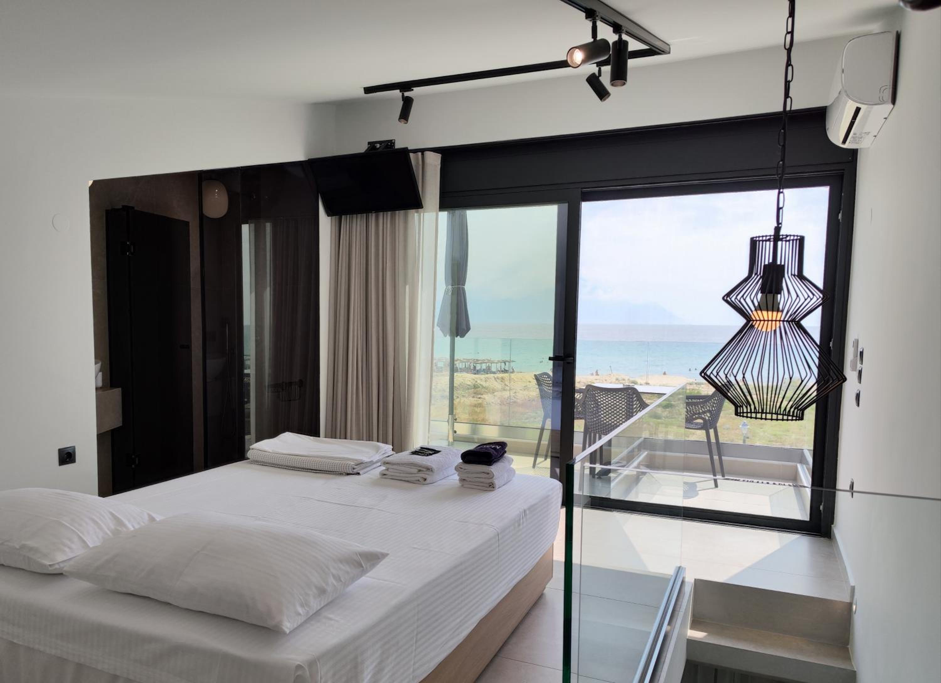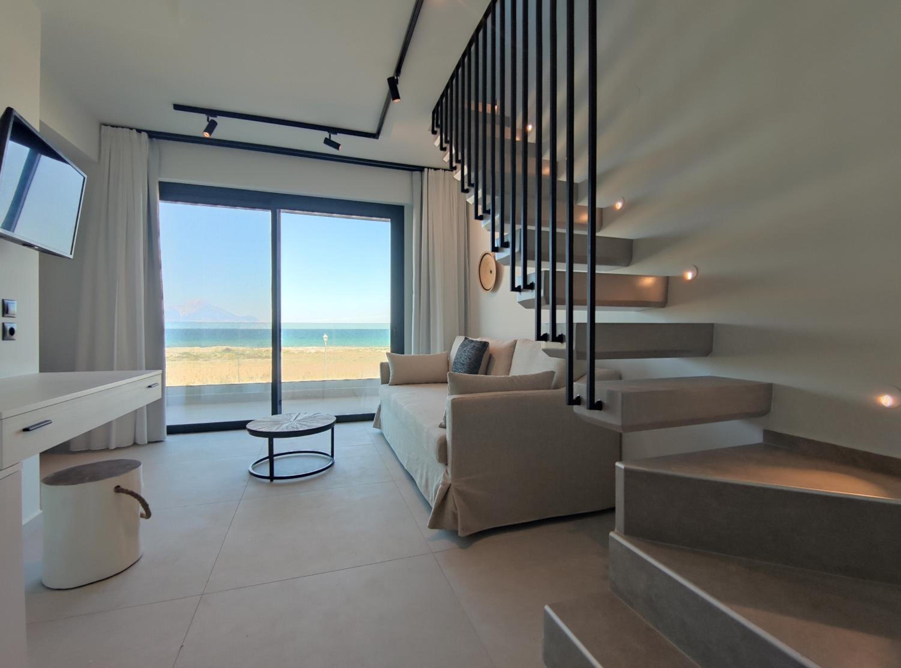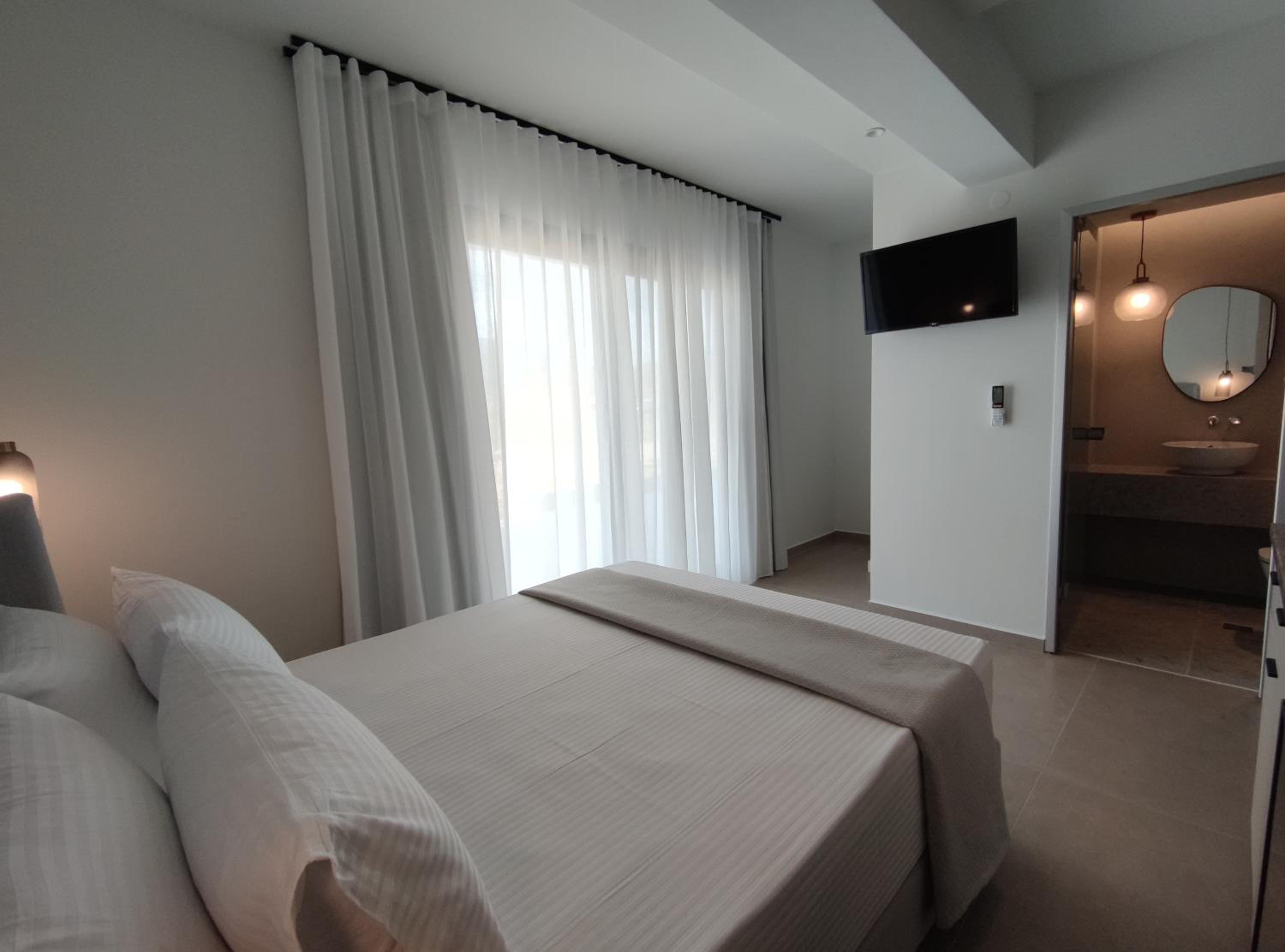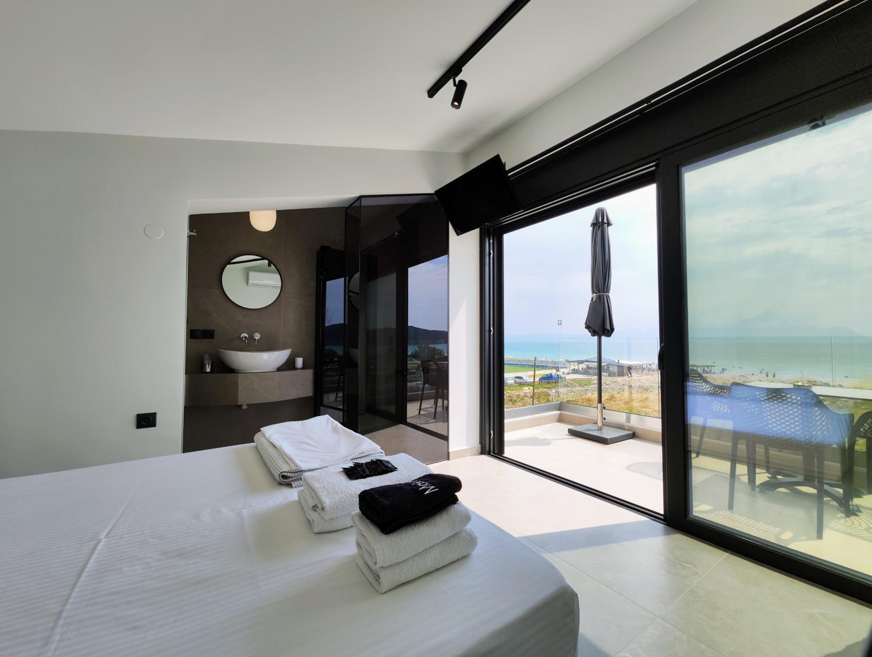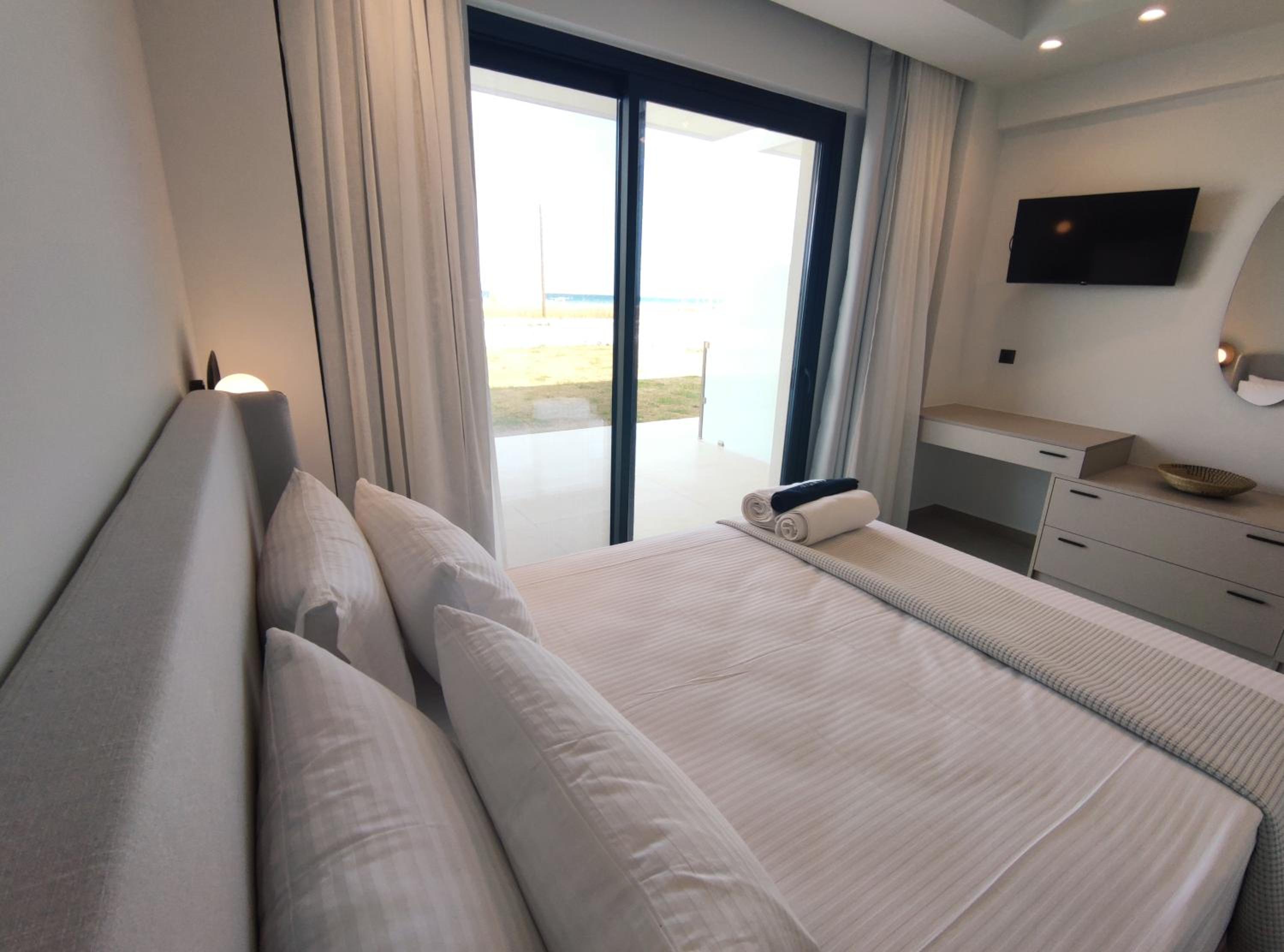 Family-Friendly Accommodation: With spacious family rooms and a welcoming terrace, Onar in Sarti caters to families looking for a relaxing getaway. The flat-screen TV, well-equipped kitchenette, and cozy bed linens ensure a comfortable stay for all.