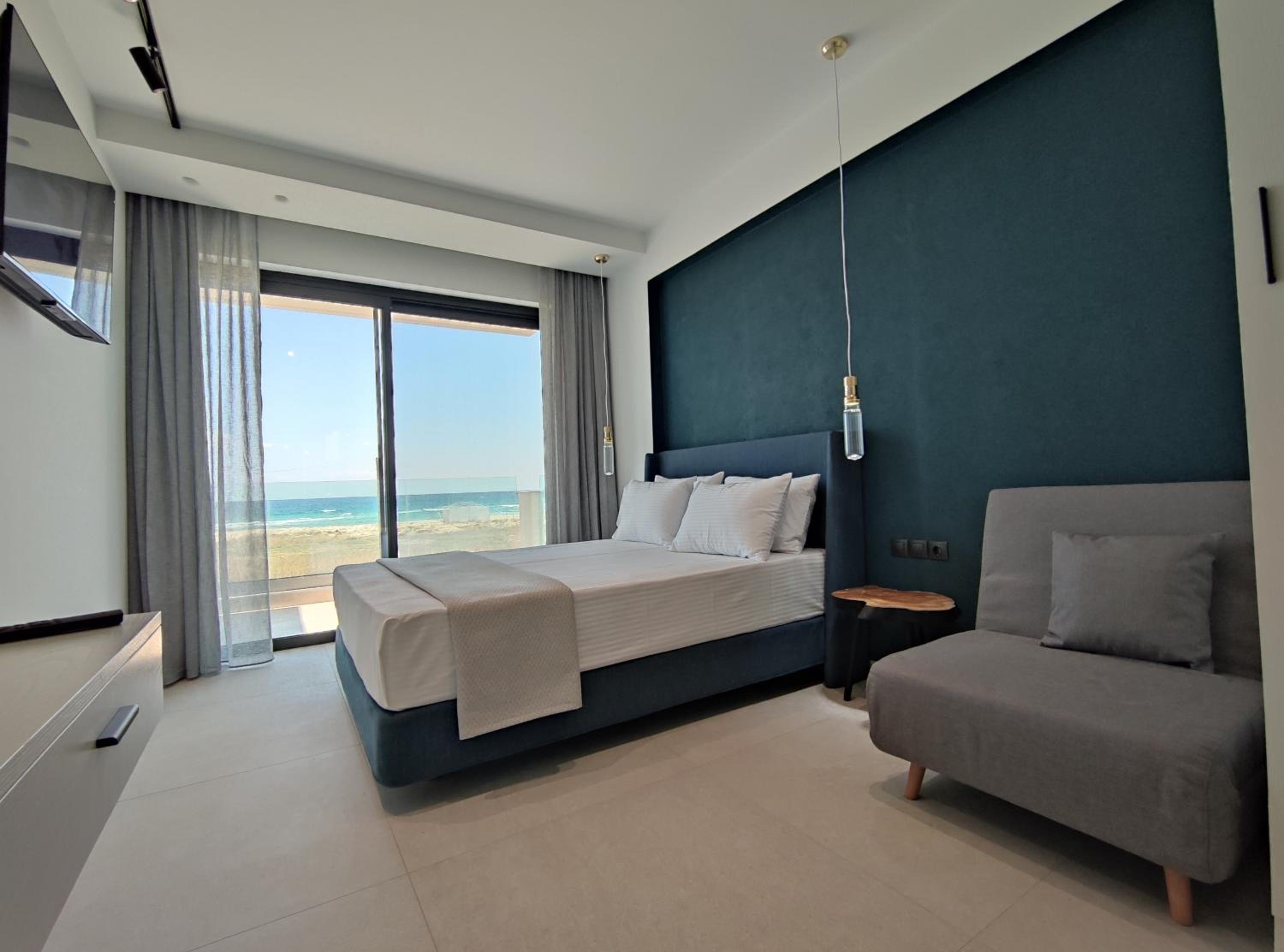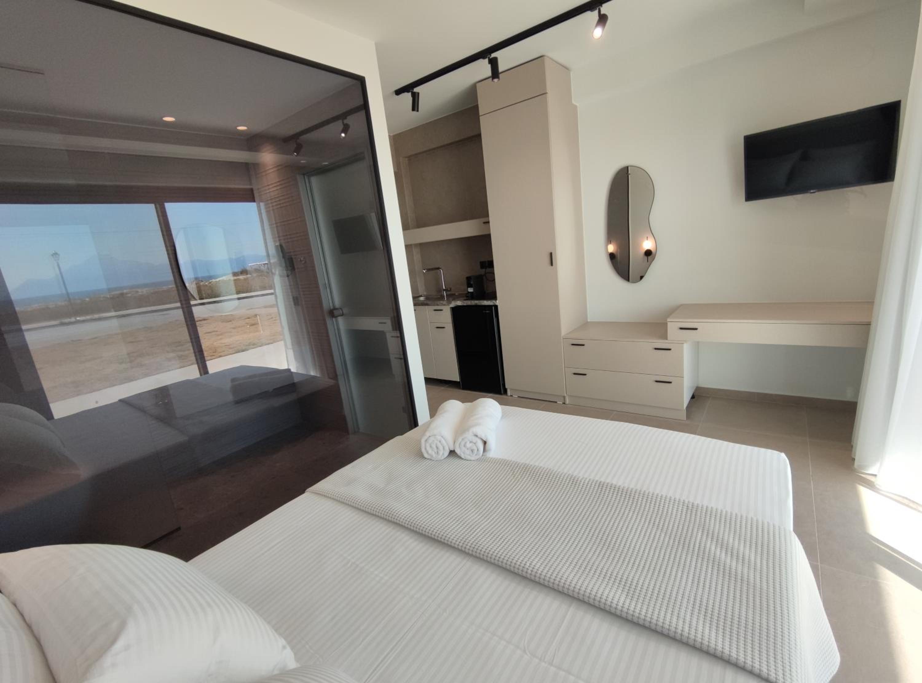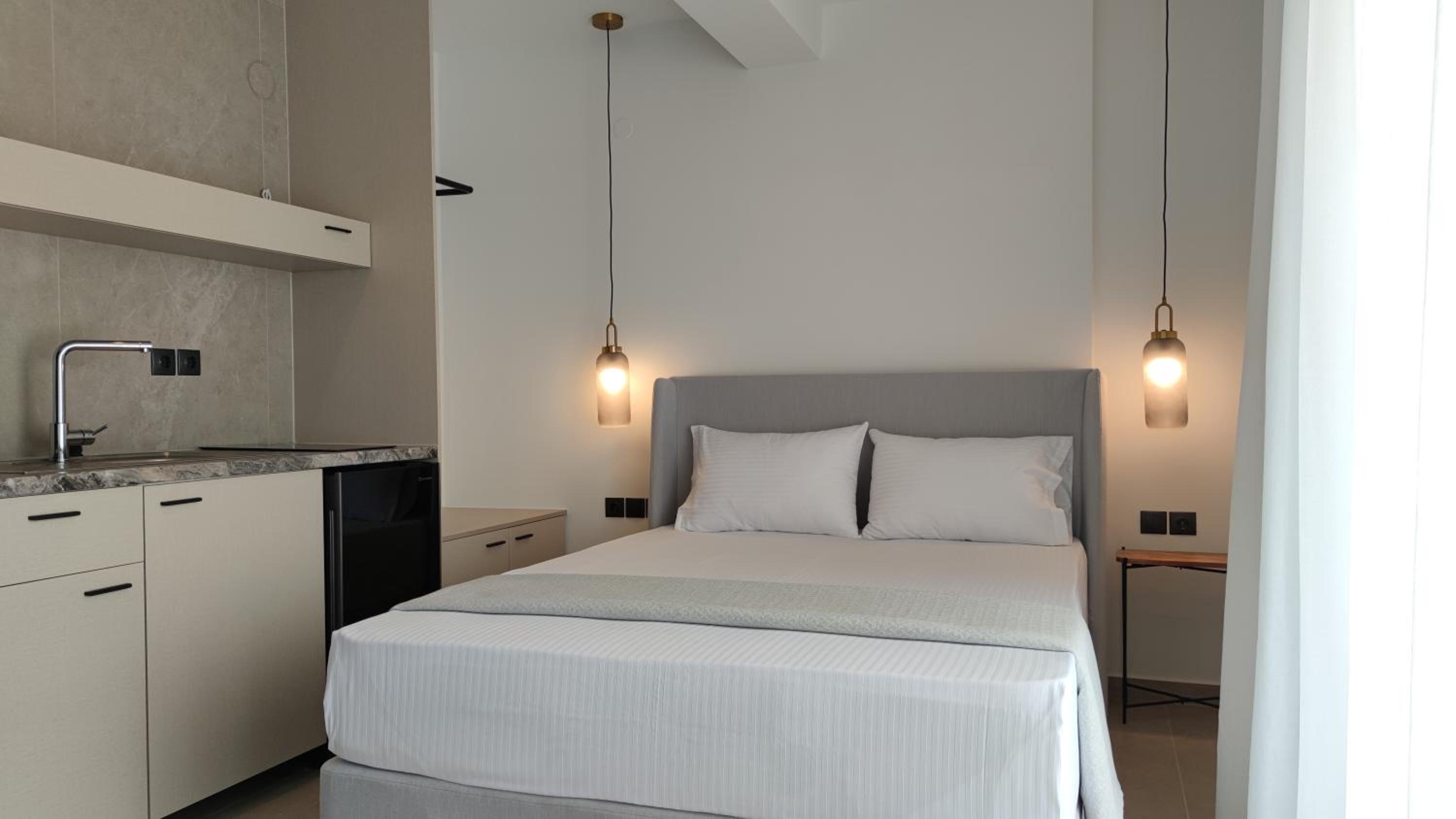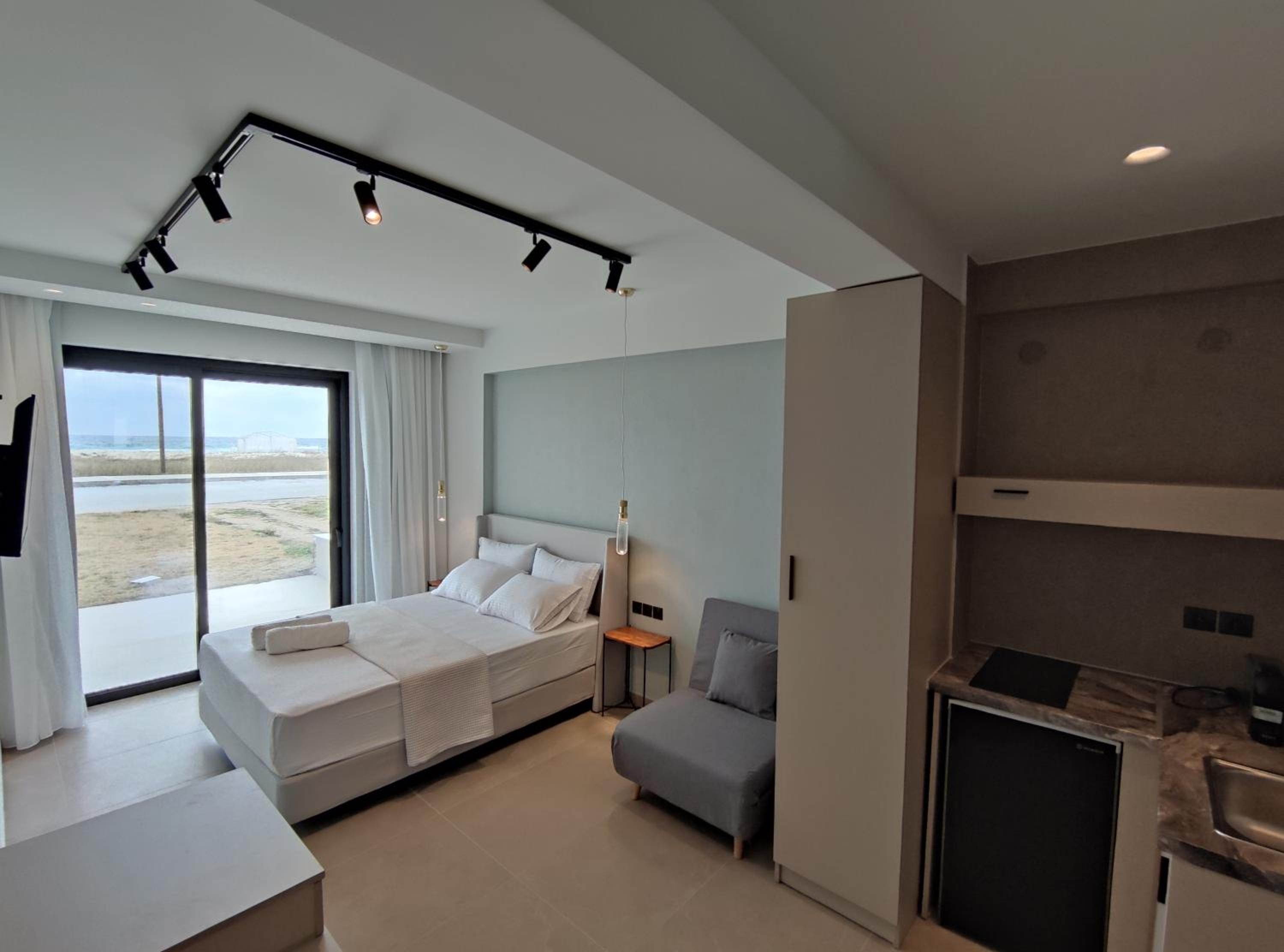 Family-Friendly Accommodation: With spacious family rooms and a welcoming terrace, Onar in Sarti caters to families looking for a relaxing getaway. The flat-screen TV, well-equipped kitchenette, and cozy bed linens ensure a comfortable stay for all.