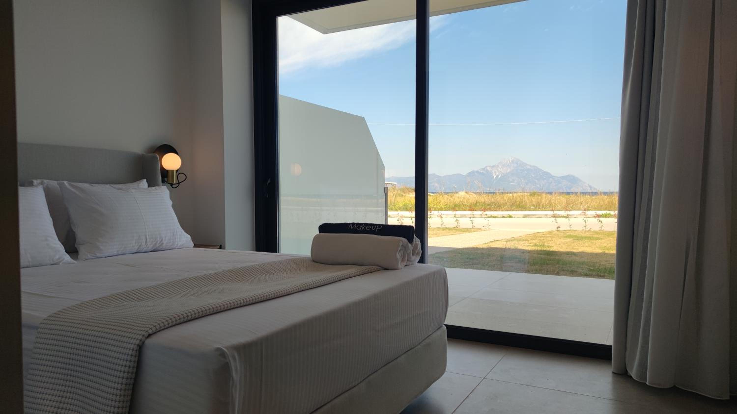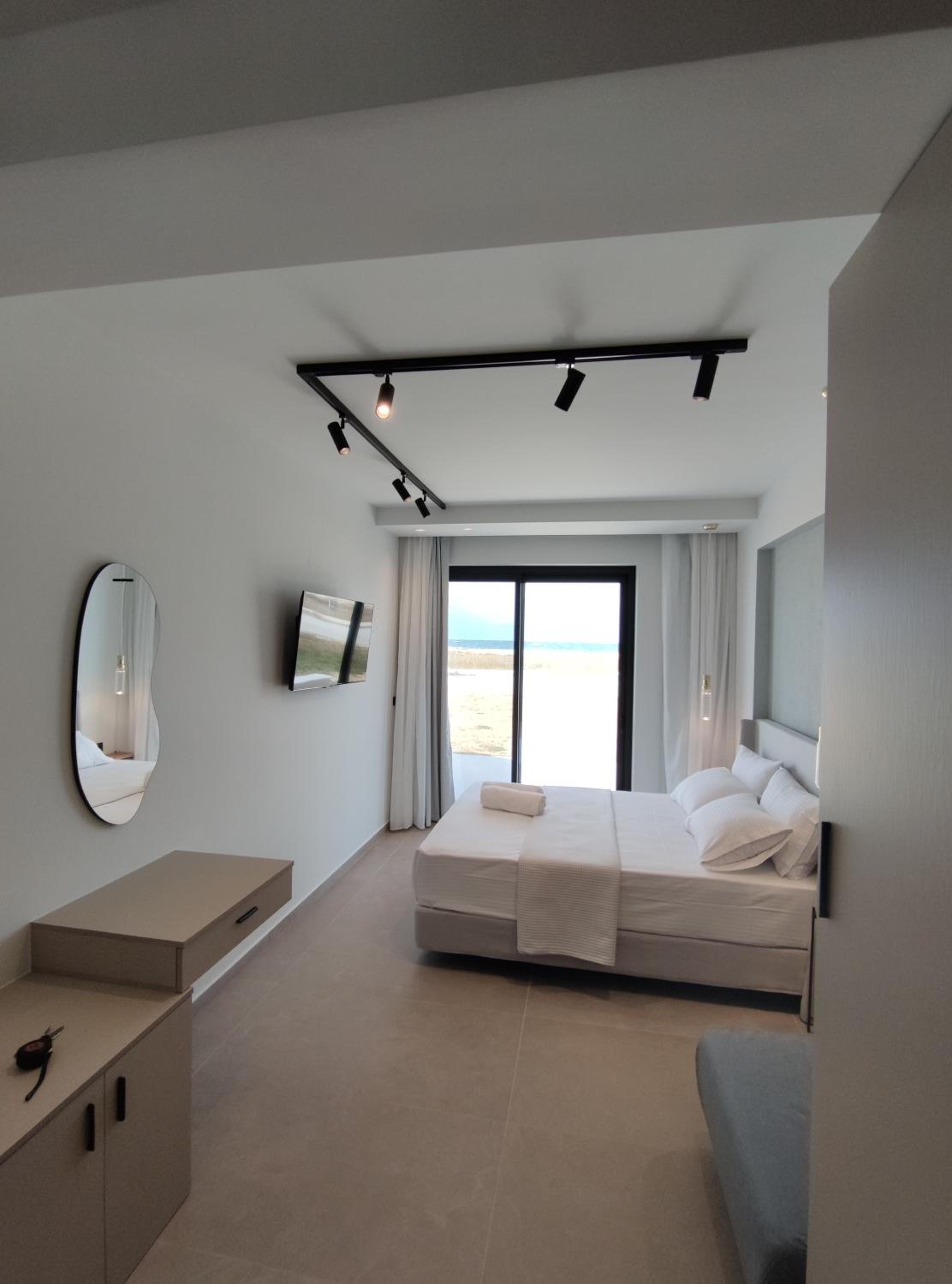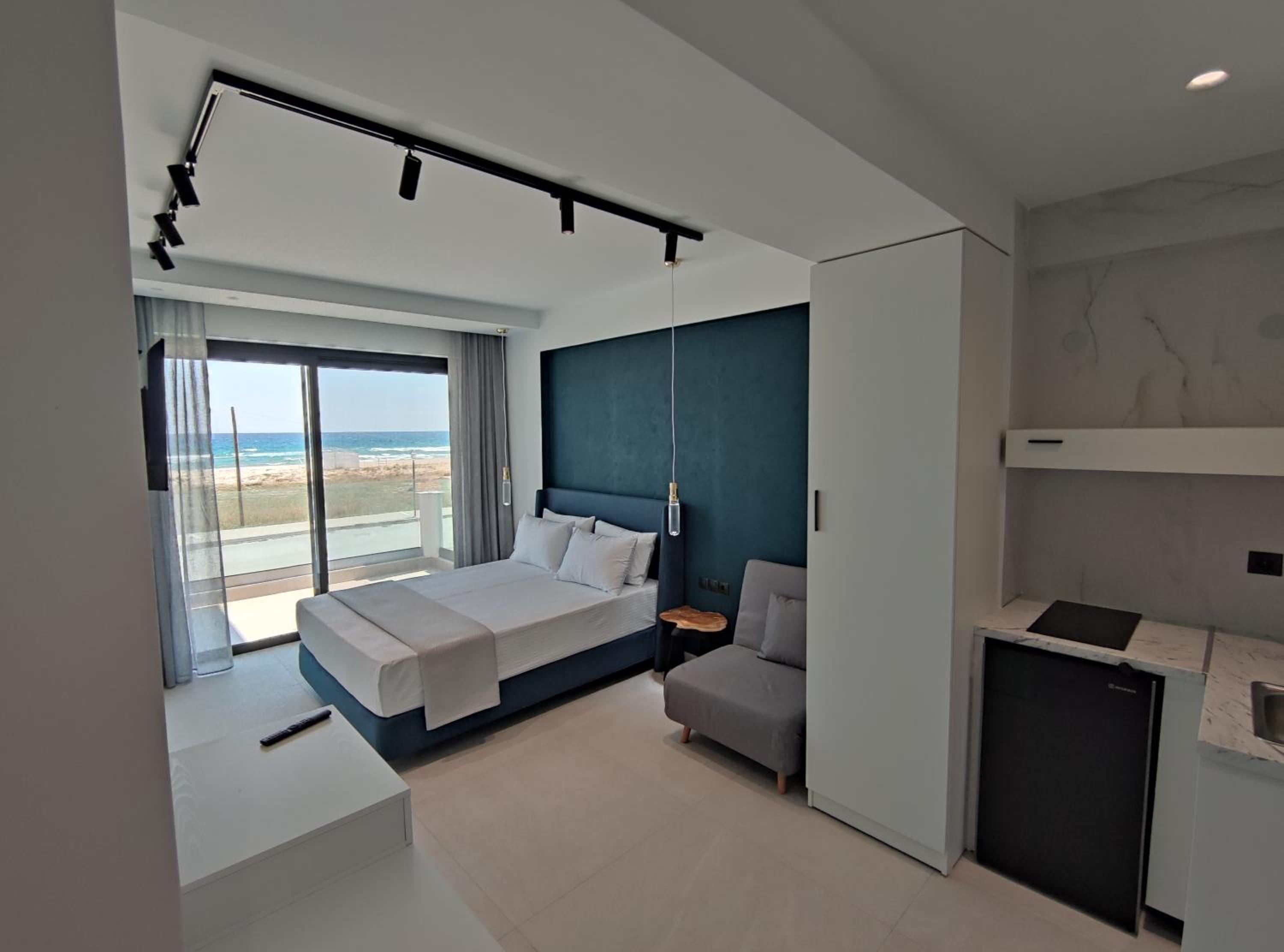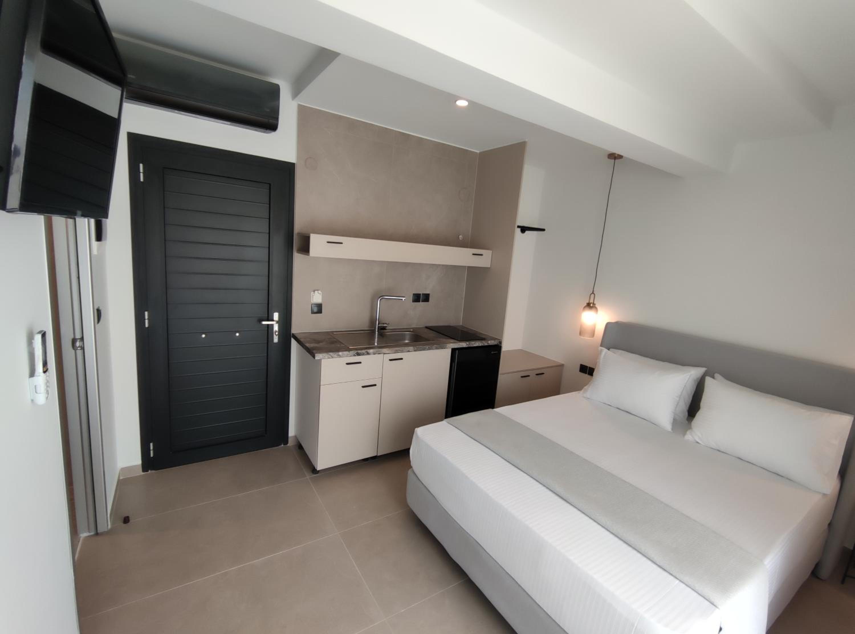 Family-Friendly Accommodation: With spacious family rooms and a welcoming terrace, Onar in Sarti caters to families looking for a relaxing getaway. The flat-screen TV, well-equipped kitchenette, and cozy bed linens ensure a comfortable stay for all.