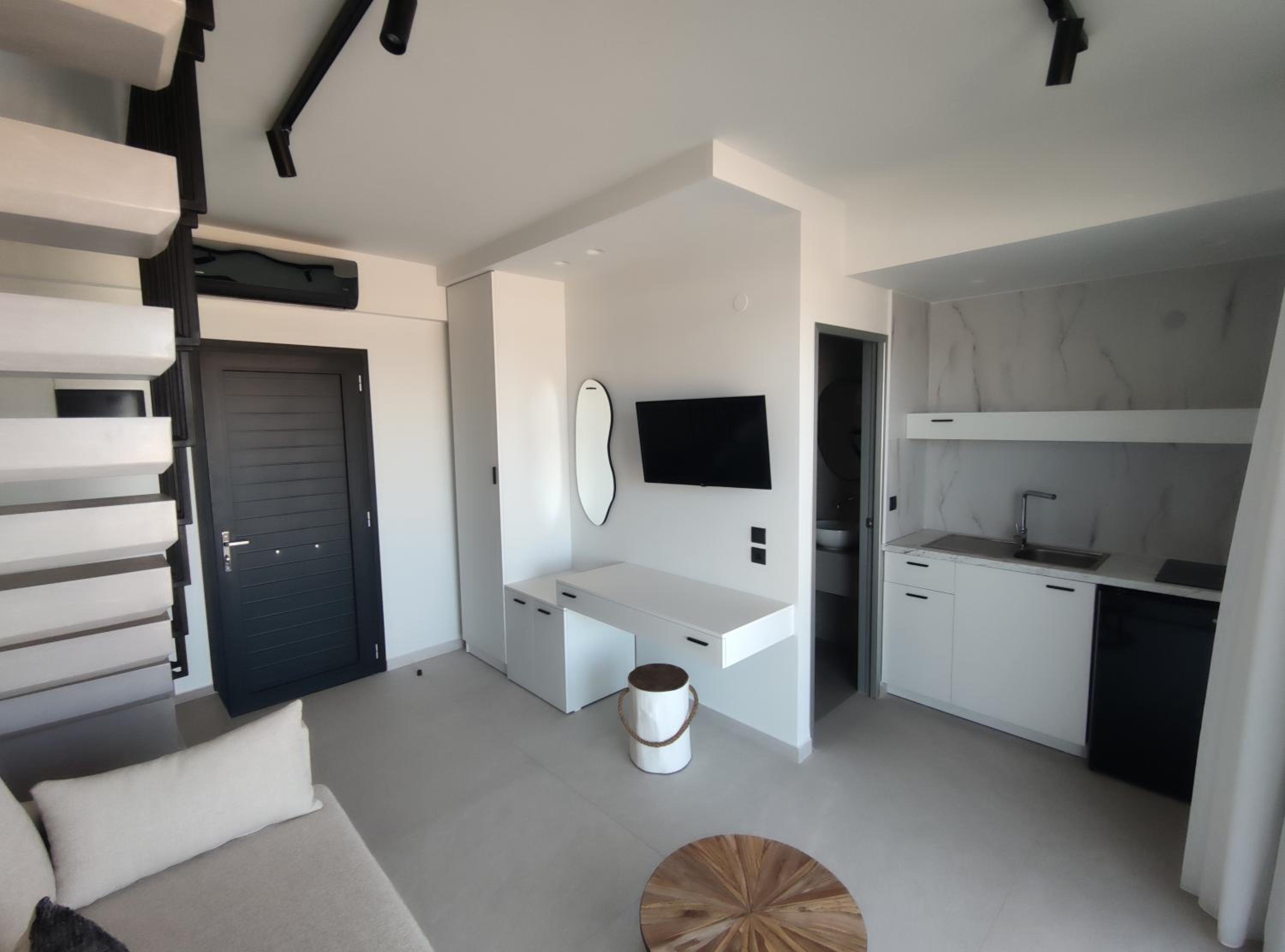 In ceea ce privește curățenia, nimic de reproșat. Camera a fost suficient de mare, baia cu cabină de duș, am avut chicinetă, dotată cu farfurii, tacâmuri, pahare, cești, aparat de cafea cu capsule. A fost excelent in prima zi când am ajuns și am găsit 2 sticle de apa rece in frigider. Am apreciat foarte mult amabilitatea lui Dimitris, disponibilitatea sa ne ajute cu orice am avut nevoie.