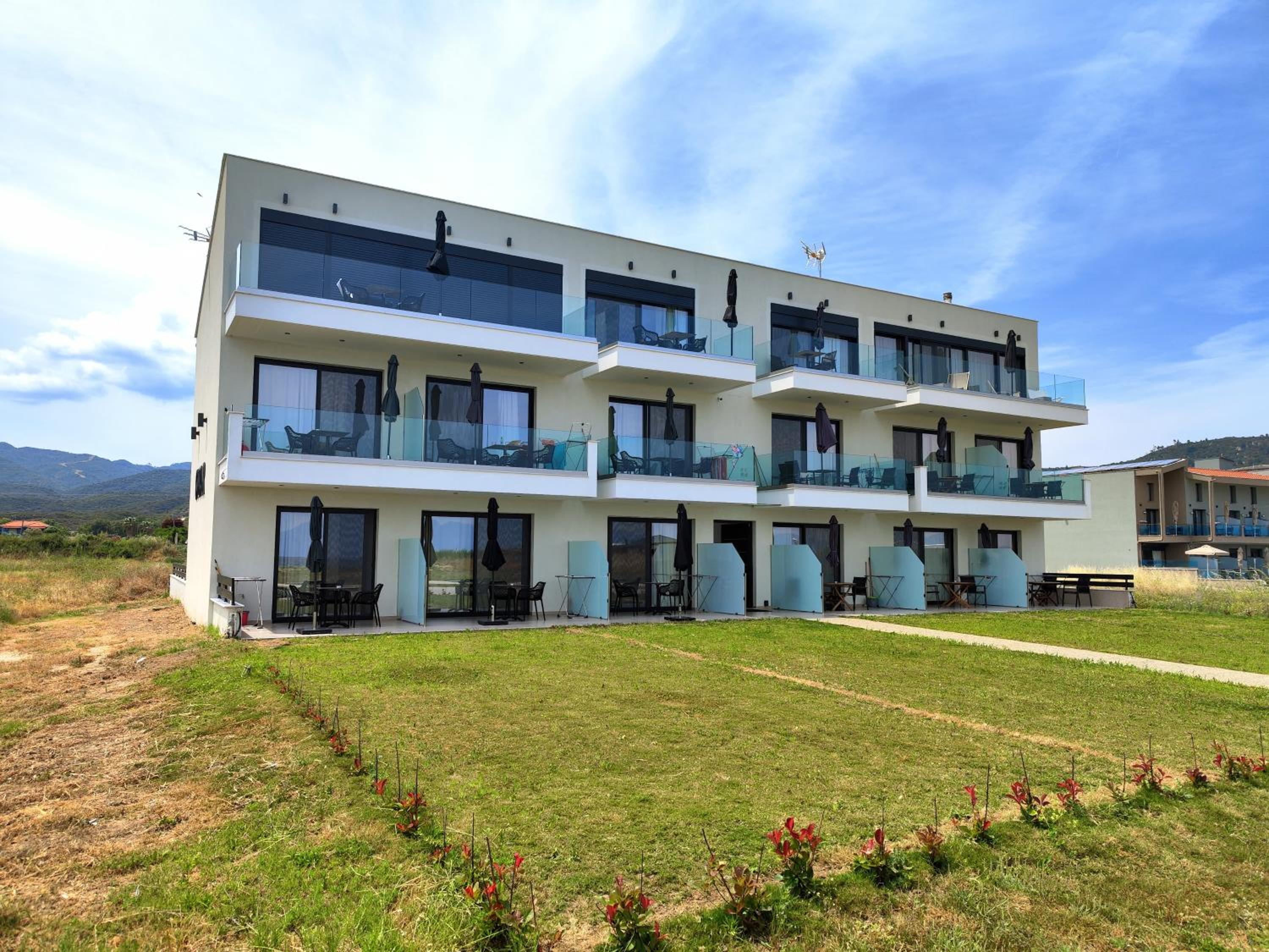 Sustainable Aparthotel: Onar in Sarti offers a unique blend of comfort and eco-friendliness, providing guests with a guilt-free stay. Enjoy the lush garden surroundings and breathtaking sea views while knowing you're supporting sustainable hospitality.
