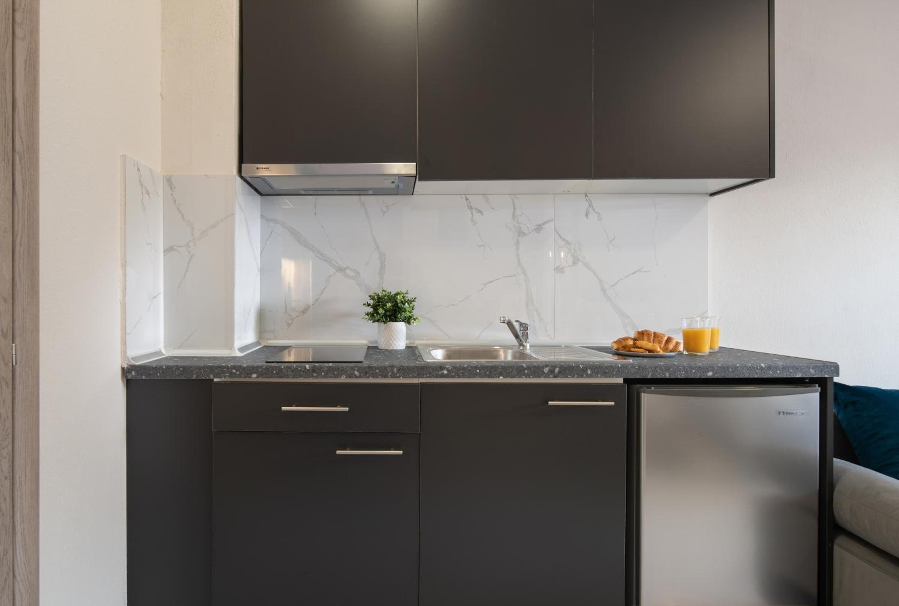 Camera arăta foarte bine. Mobilierul nou. Erau ustensilele și vesela necesara la kitchineta. Mic dejun divers.