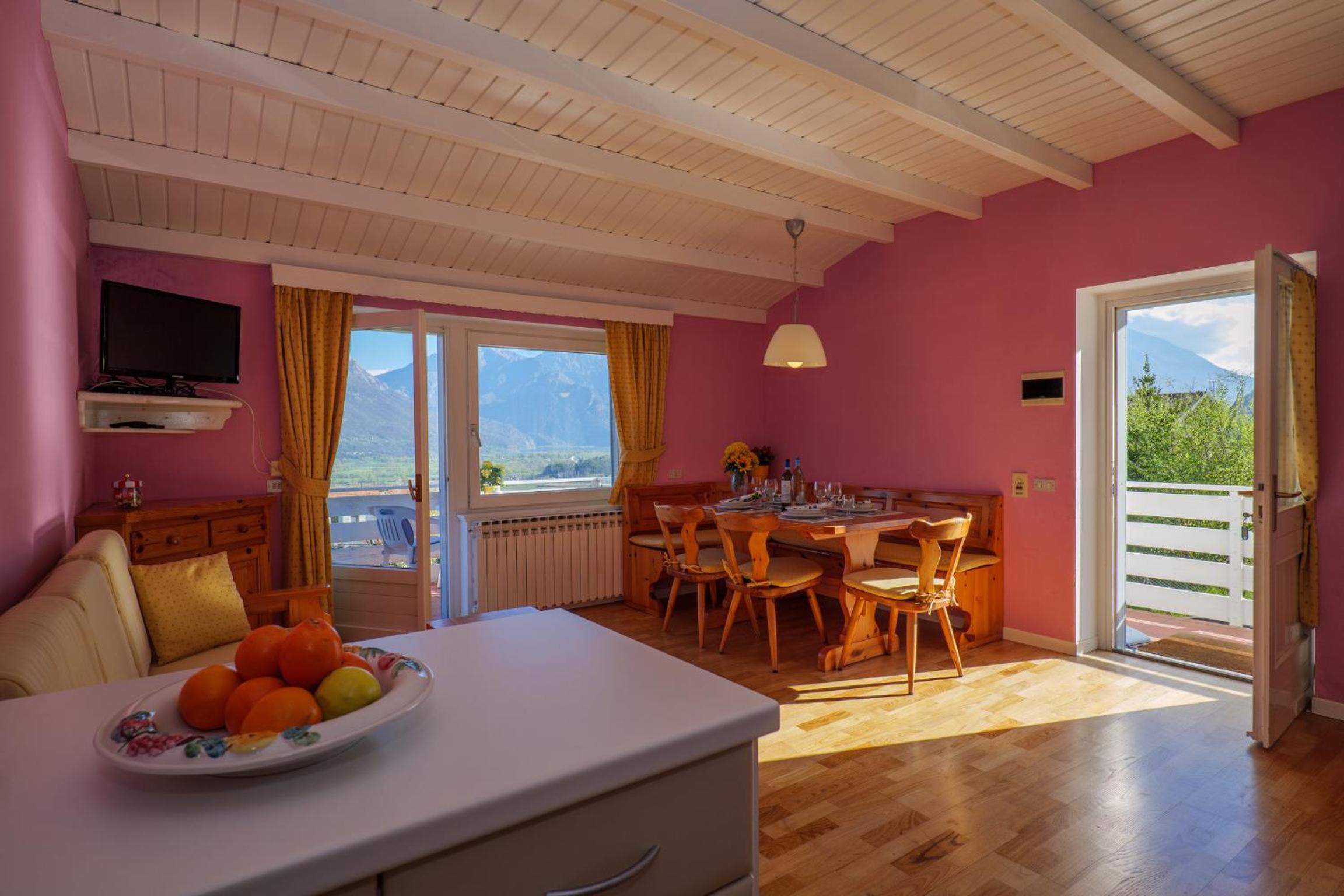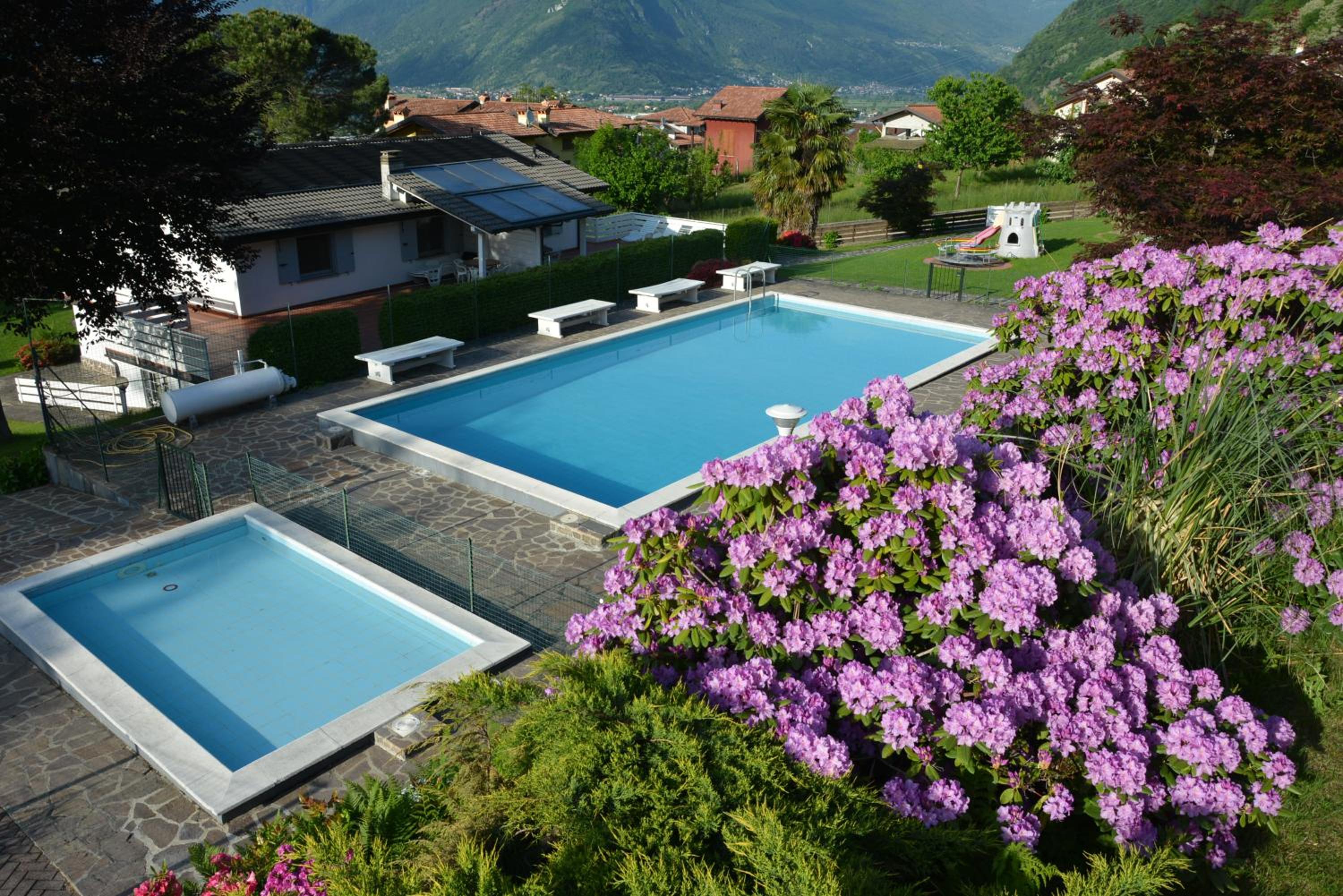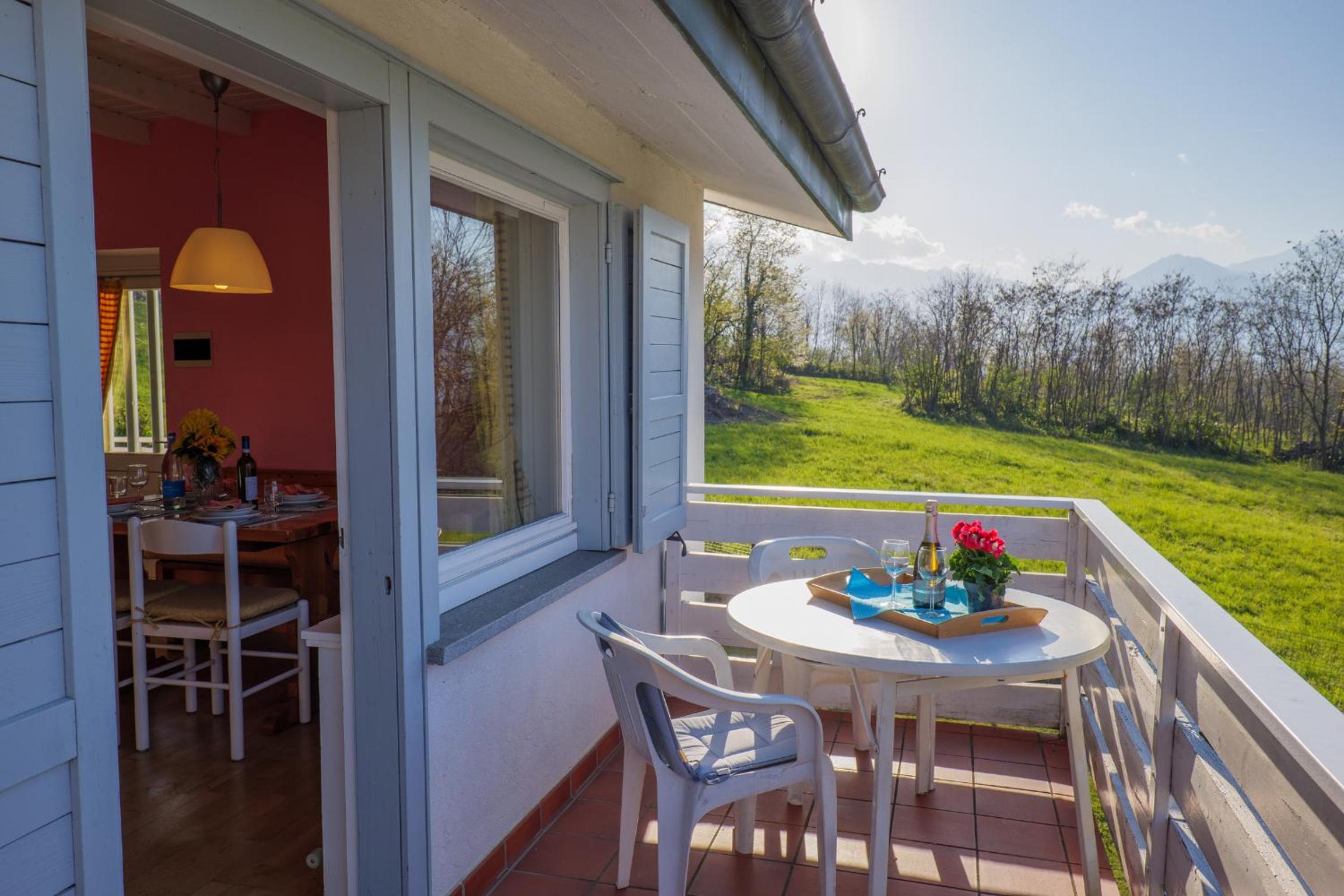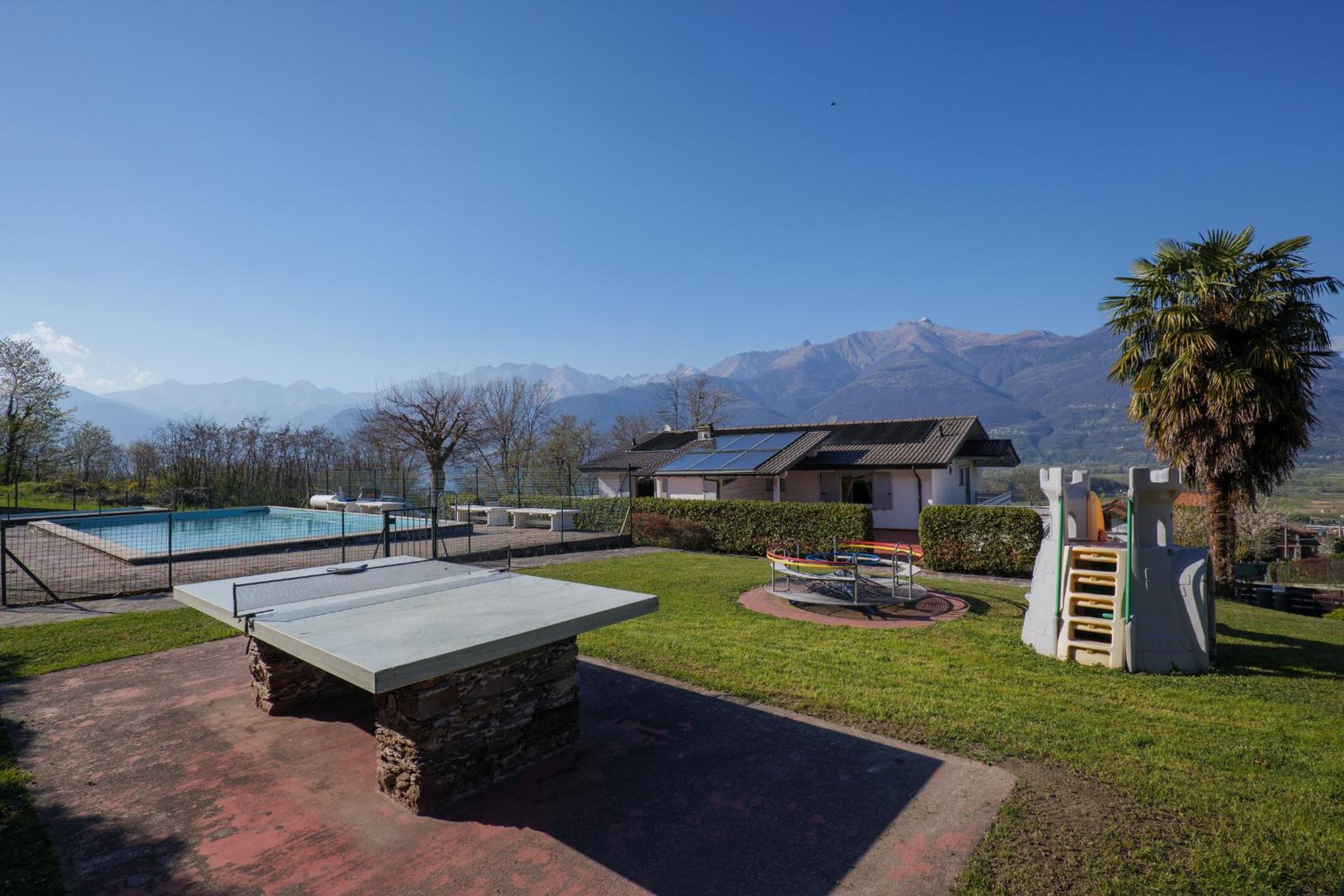 the apartment we hired Casa Del sole 2 was the best one. it has a large terrace which looks onto the pool and playground. it is also away from the parking area and looks out over fields so is the more private one. great for the small children. the pool is actually heated; solar heating on the roof so was very pleasant. there is also a wash room with drying racks and a washing machine. the playground equipment is all pretty good.