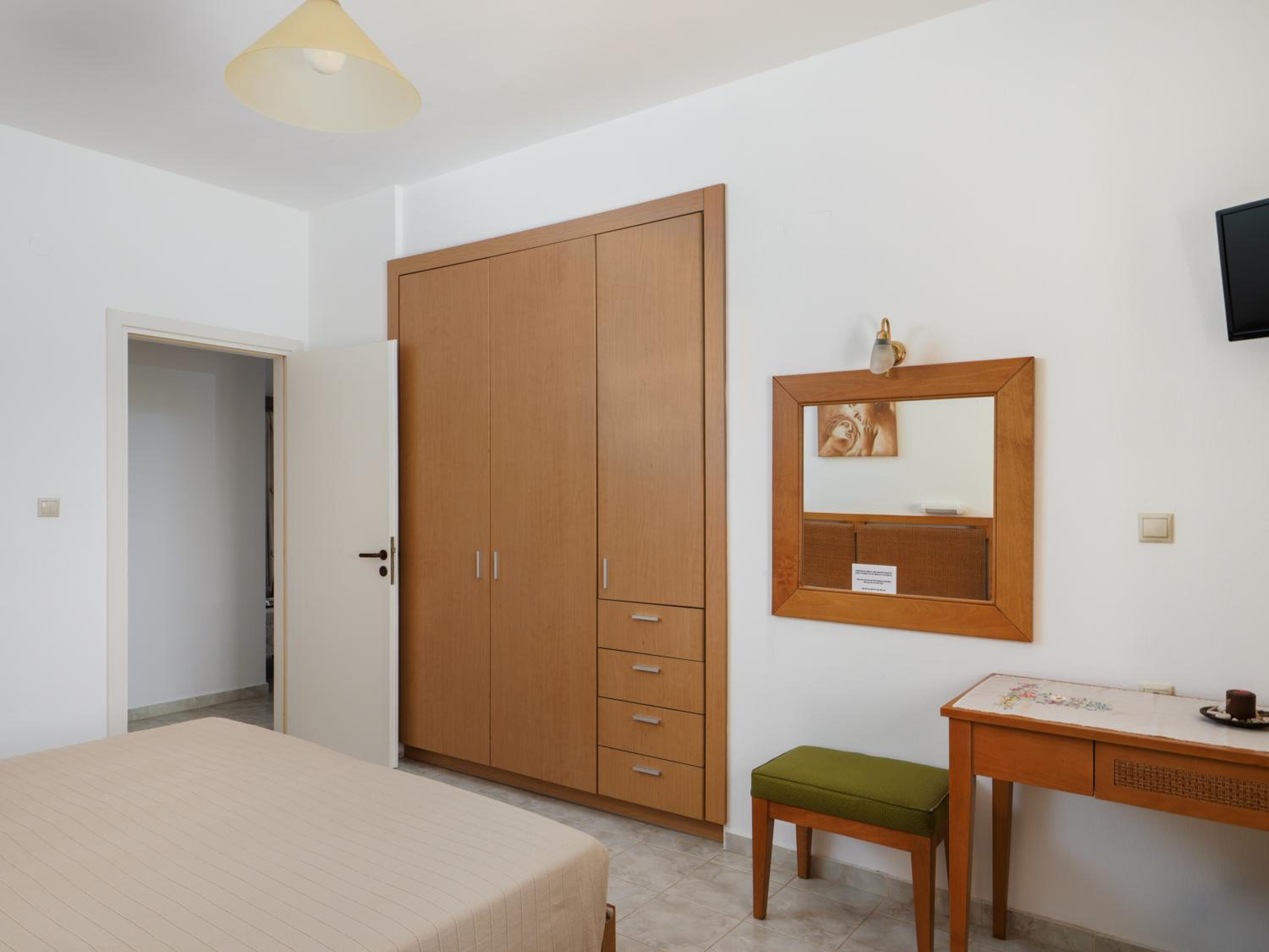 Appartement spacieux avec une vraie chambre séparée, parfait pour nous et notre fille de 15 ans. L’accueil de Fotis et de sa famille a été d’une grande gentillesse. Bien que nous connaissions déjà la Crète, elle nous a même conseillé quelques plages plus confidentielles. La piscine est petite mais très agréable, avec très peu de monde. La plage est accessible en 15 minutes à pied, même si la chaleur peut rendre le trajet un peu long. Le mobilier est un peu ancien, mais cela reste tout à fait dans l’ambiance du lieu. Nous reviendrons avec plaisir. Merci à Fotis et sa famille !