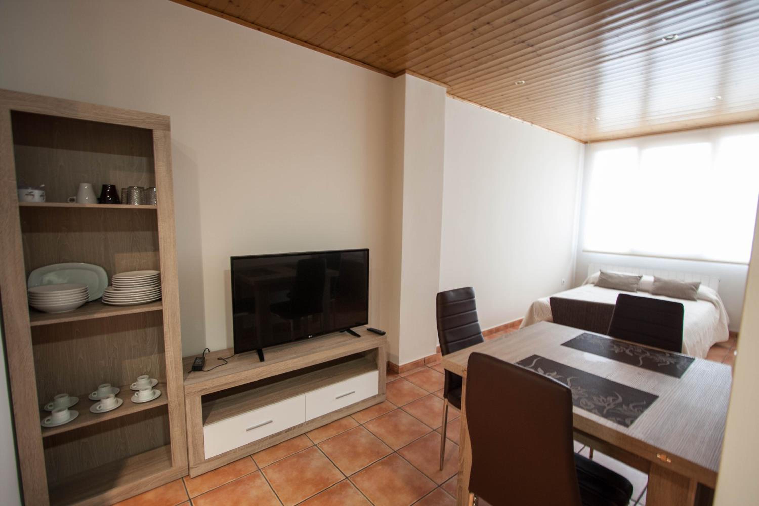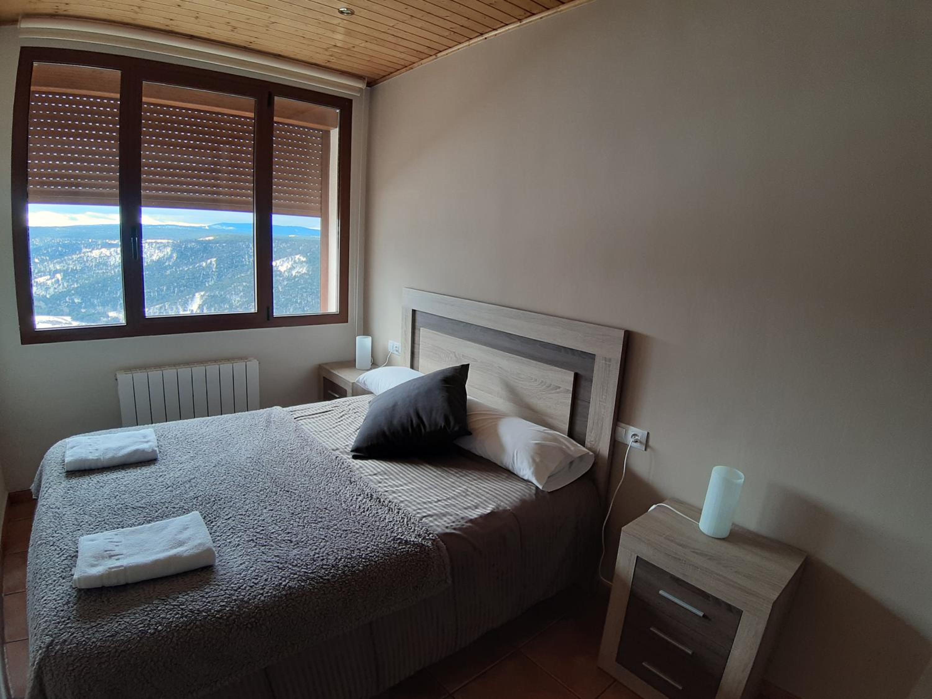 Apartamento cómodo, bien ubicado con unas vistas espectaculares. El trato del personal muy bueno. El pueblecito encantador. Habitaciones espaciosas y camas cómodas. La ducha funcionaba muy bien. Todo muy limpio. Segundo piso con ascensor. Puedes hacer desayunos y cenas en el hostal que también regentan los propietarios del apartamento y que está justo al lado.