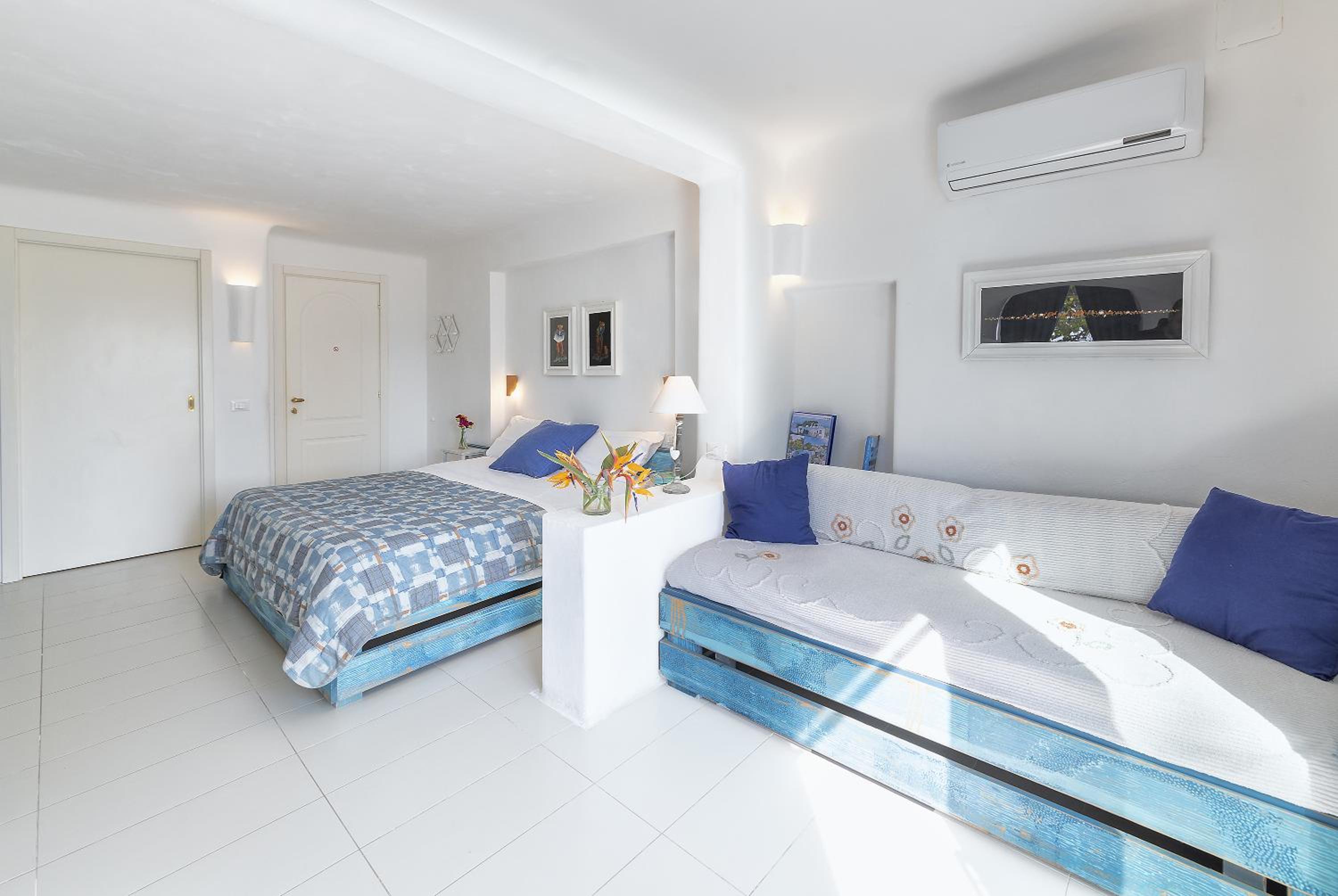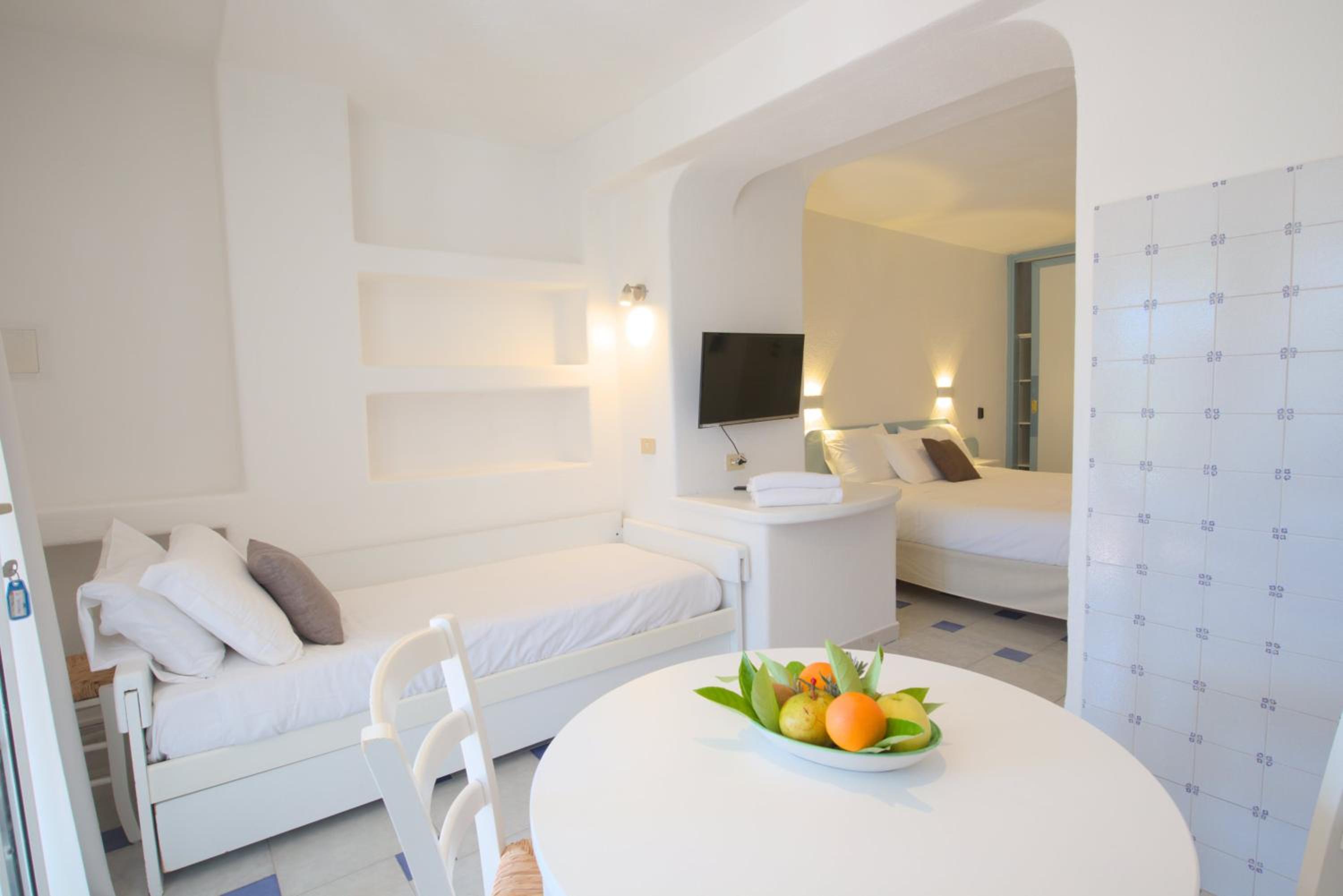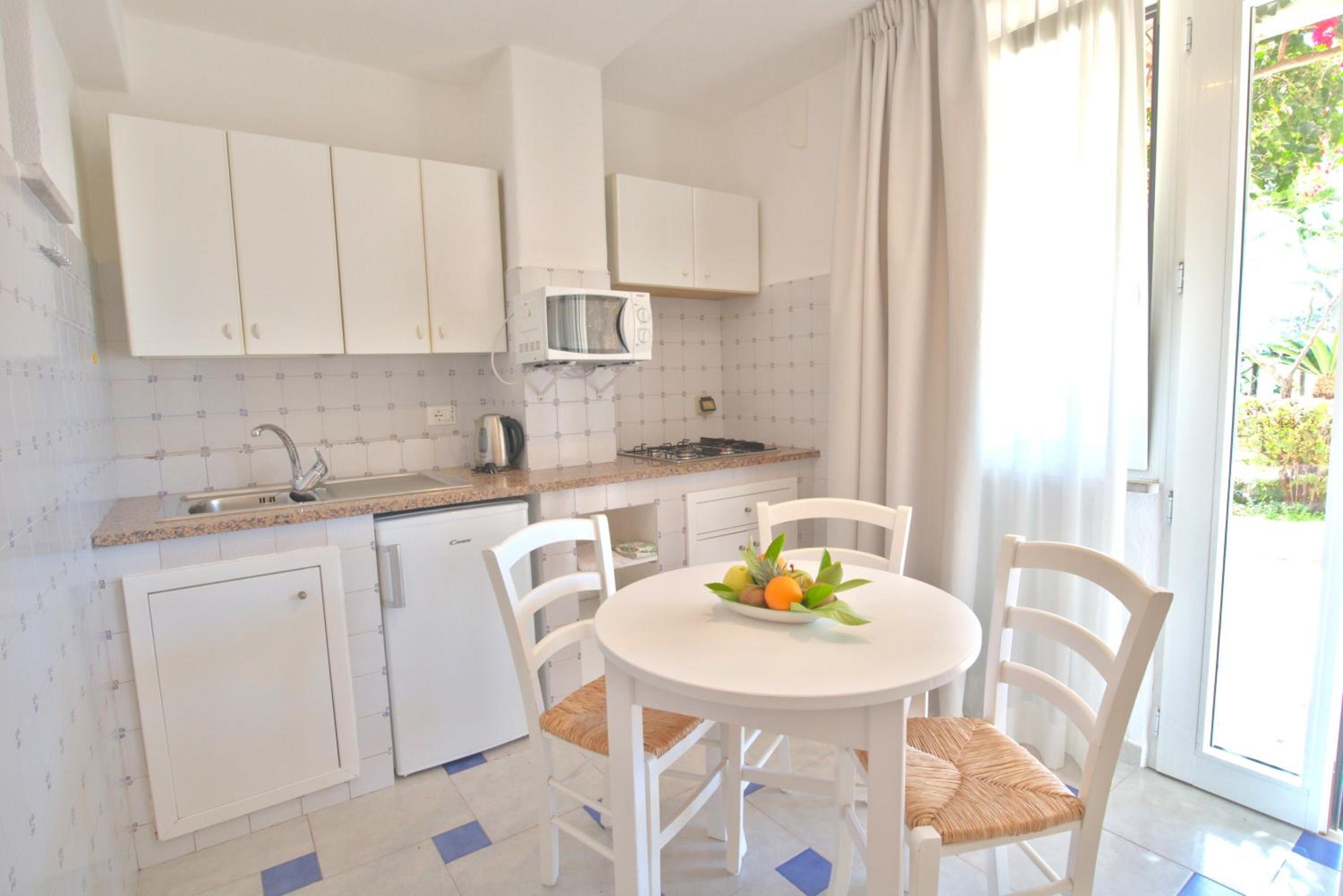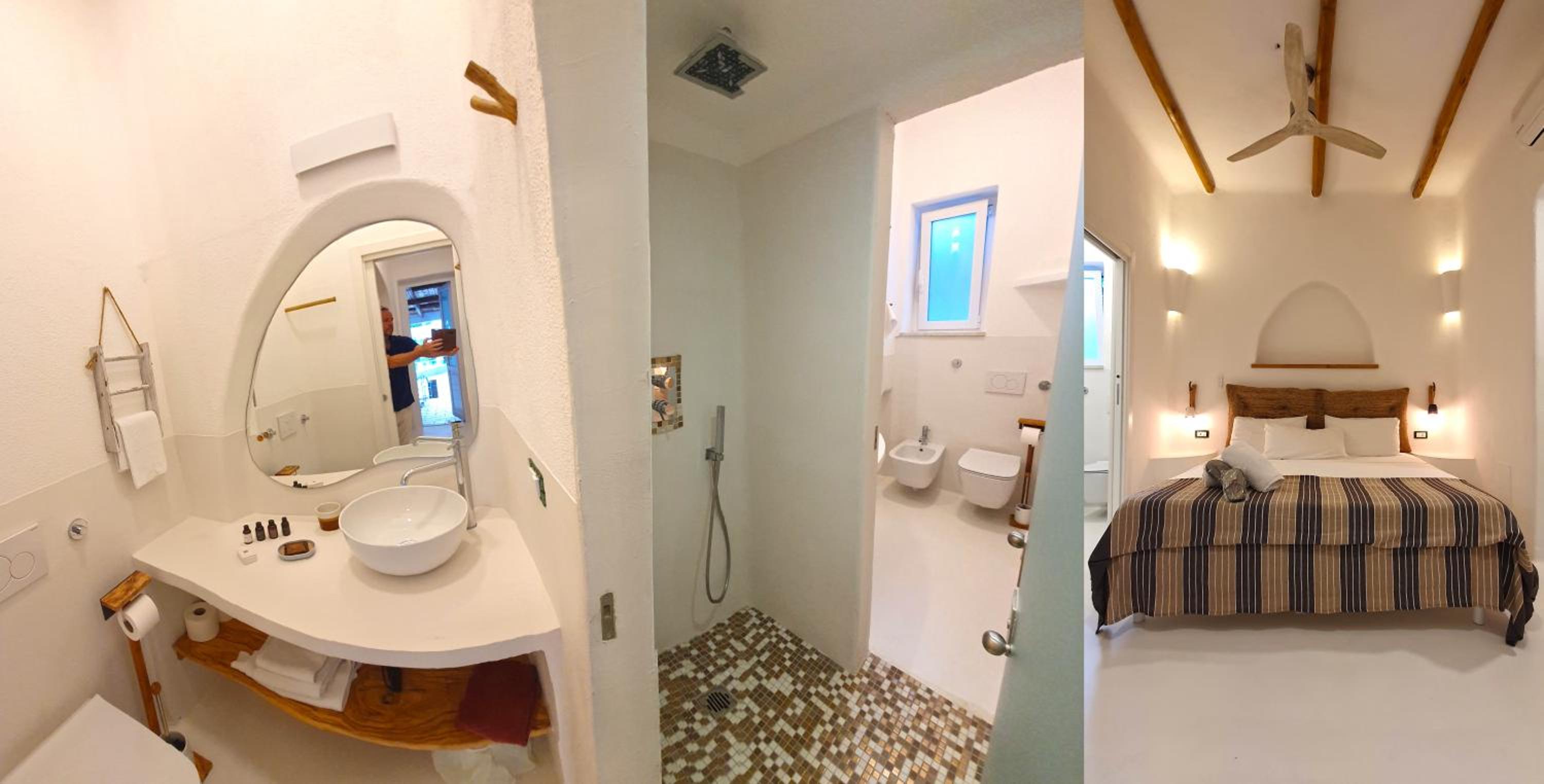 Durante il nostro soggiorno di 2 notti non sono mai state fatte le pulizie nel nostro alloggio, né rifatti i letti o cambiati gli asciugamani. C'era un bollitore con alcune bustine di the e caffè solubile, ma mancavano tazze e cucchiaini. Le porte della doccia non chiudevano completamente il vano e quindi il pavimento del bagno si riempiva d'acqua. Non sono stati forniti né ciabattine per la camera né teli per la piscina; la fornitura di prodotti per il bagno era veramente minima. Quando si accendeva la luce nel bagno cieco, entrava in funzione un aspiratore piuttosto rumoroso, che però non si disattivava spegnendo la luce e questo ha causato un notevole disagio la prima notte. La struttura si trova in alto rispetto al mare e per raggiungere la spiaggia di Citara e le terme abbiamo dovuto camminare per circa 20 minuti, percorrendo una strada trafficata e con marciapiedi a tratti inesistenti; al ritorno, dato che la strada era in salita, abbiamo dovuto aspettare un autobus, piuttosto affollato; invece abbiamo visto che altri alberghi venivano a prendere i loro clienti con una navetta.