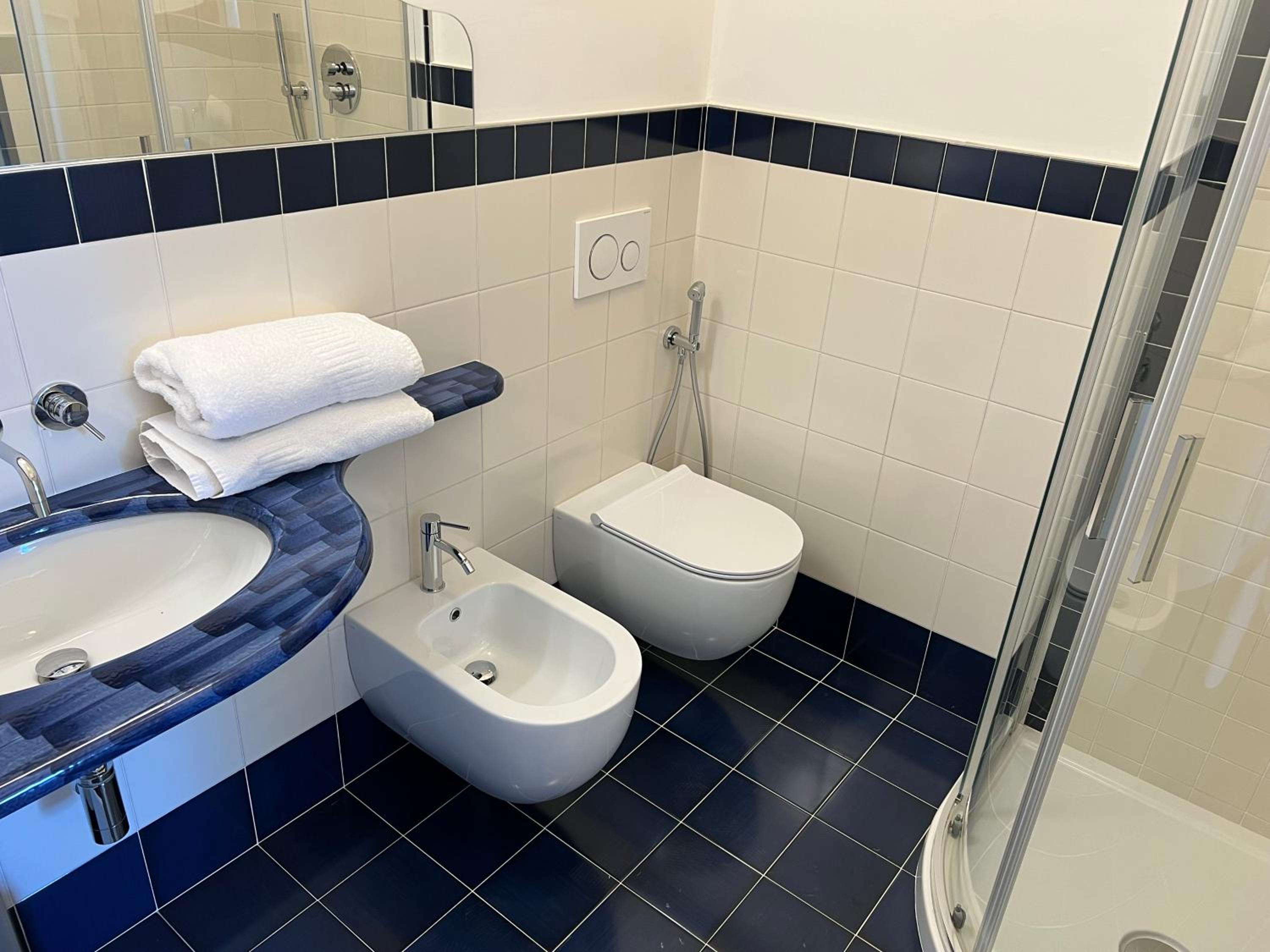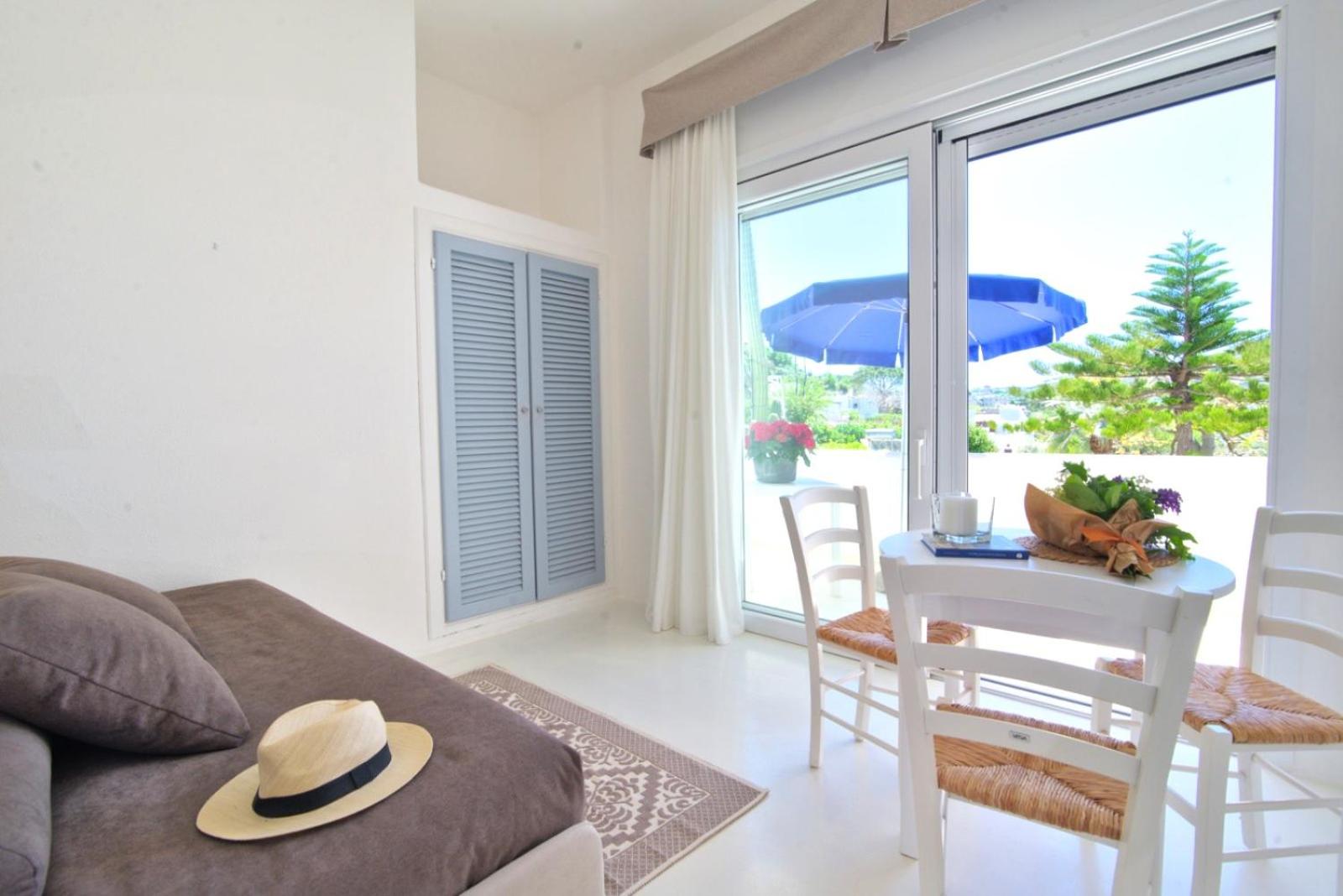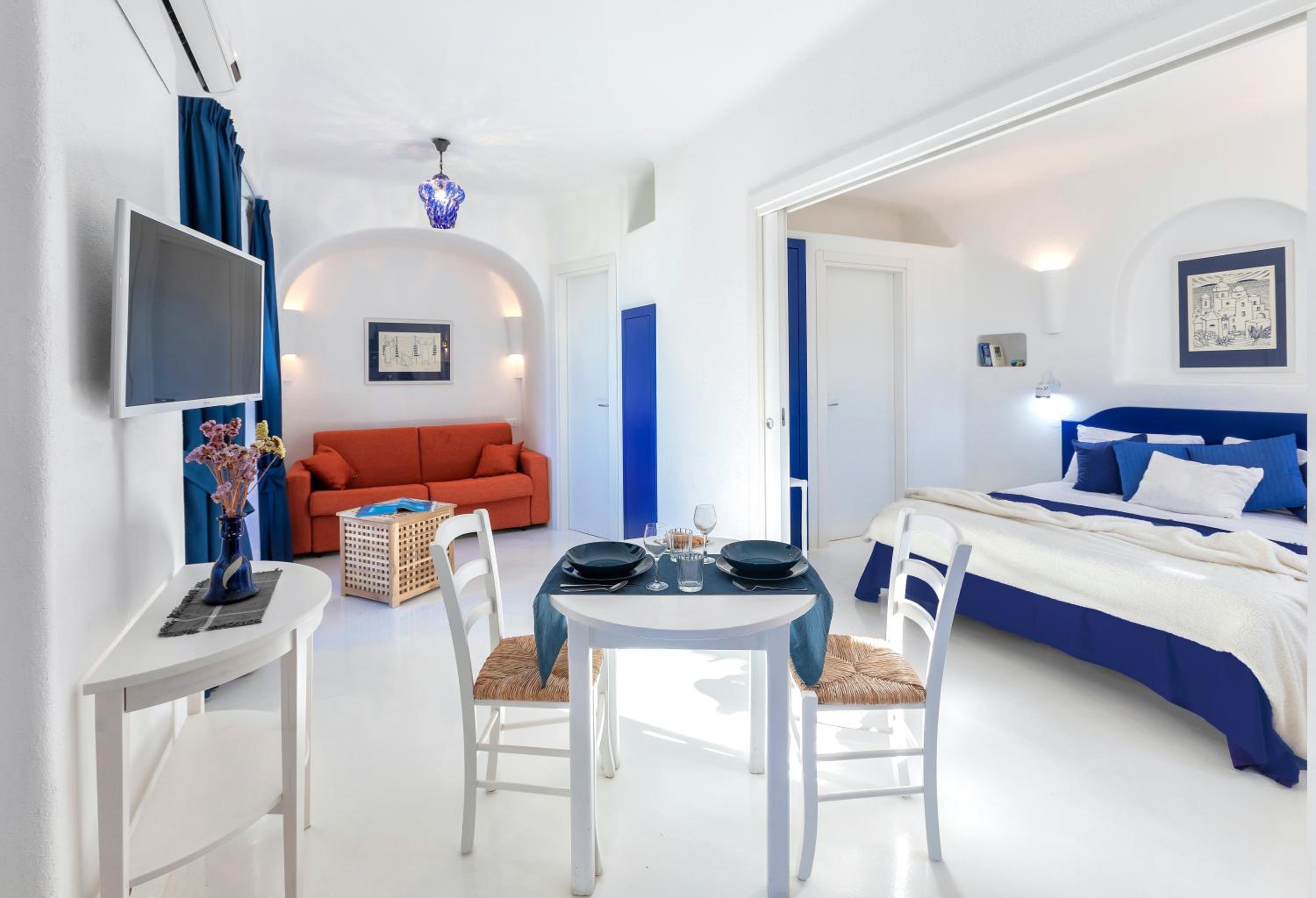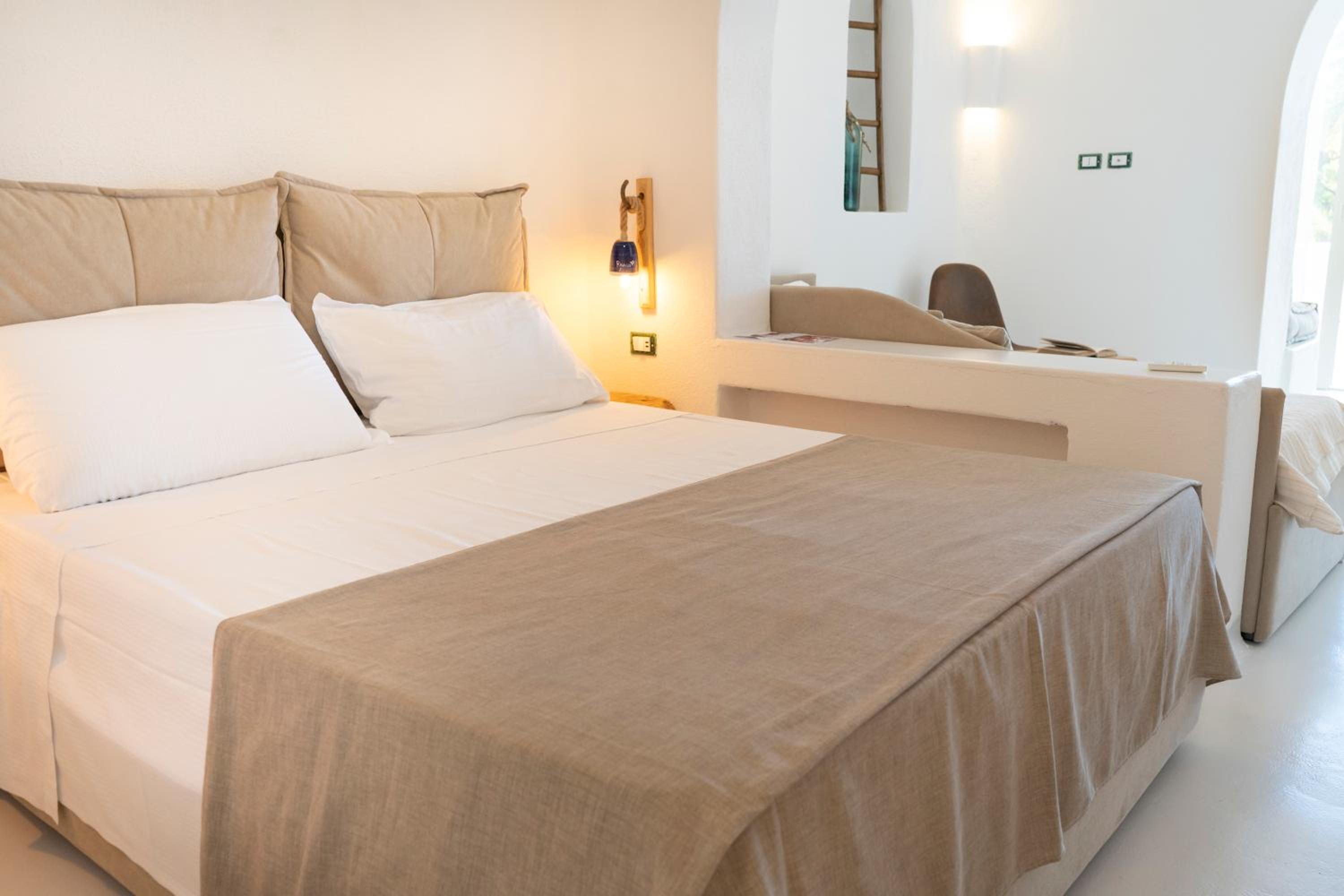Durante il nostro soggiorno di 2 notti non sono mai state fatte le pulizie nel nostro alloggio, né rifatti i letti o cambiati gli asciugamani. C'era un bollitore con alcune bustine di the e caffè solubile, ma mancavano tazze e cucchiaini. Le porte della doccia non chiudevano completamente il vano e quindi il pavimento del bagno si riempiva d'acqua. Non sono stati forniti né ciabattine per la camera né teli per la piscina; la fornitura di prodotti per il bagno era veramente minima. Quando si accendeva la luce nel bagno cieco, entrava in funzione un aspiratore piuttosto rumoroso, che però non si disattivava spegnendo la luce e questo ha causato un notevole disagio la prima notte. La struttura si trova in alto rispetto al mare e per raggiungere la spiaggia di Citara e le terme abbiamo dovuto camminare per circa 20 minuti, percorrendo una strada trafficata e con marciapiedi a tratti inesistenti; al ritorno, dato che la strada era in salita, abbiamo dovuto aspettare un autobus, piuttosto affollato; invece abbiamo visto che altri alberghi venivano a prendere i loro clienti con una navetta.