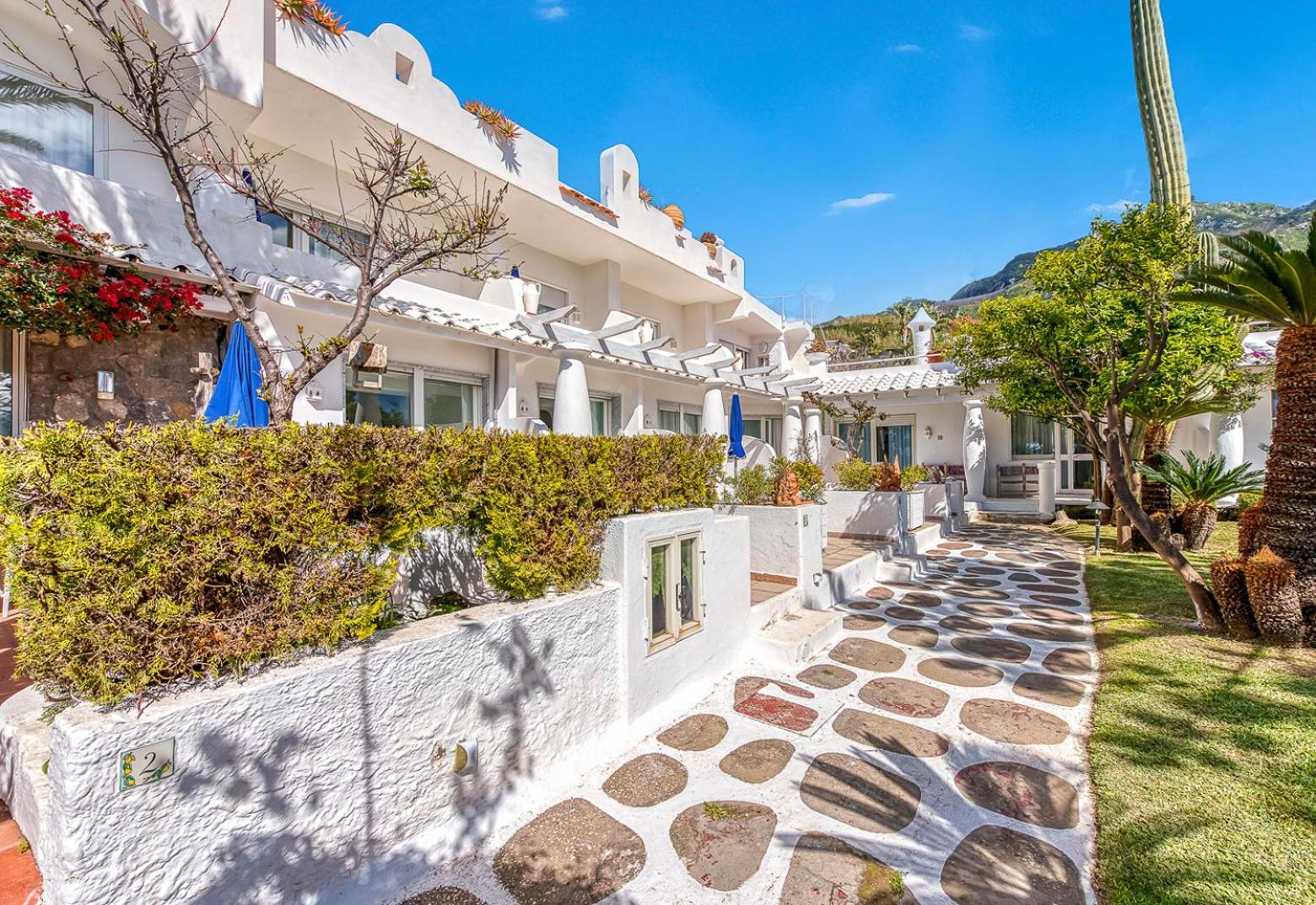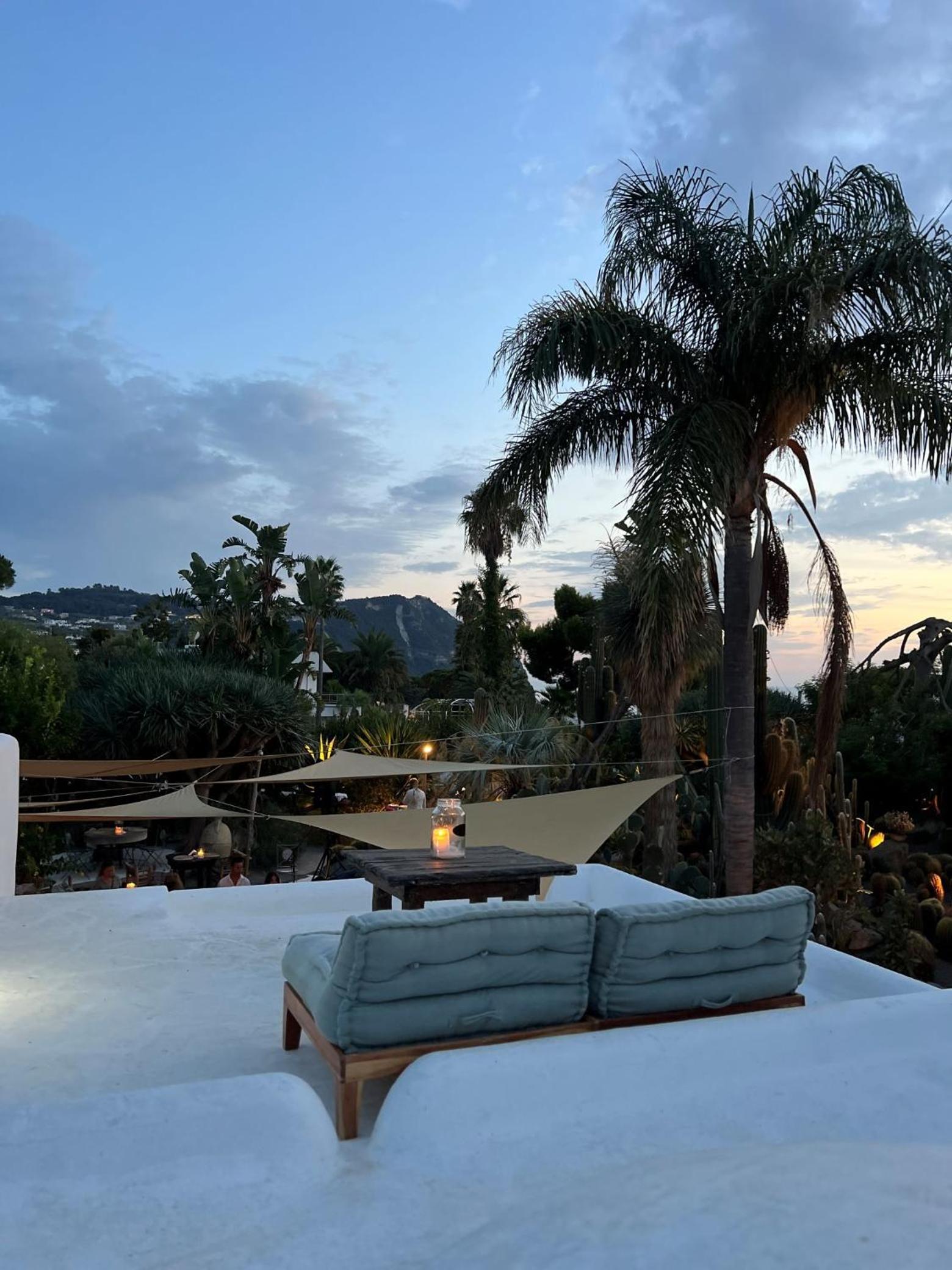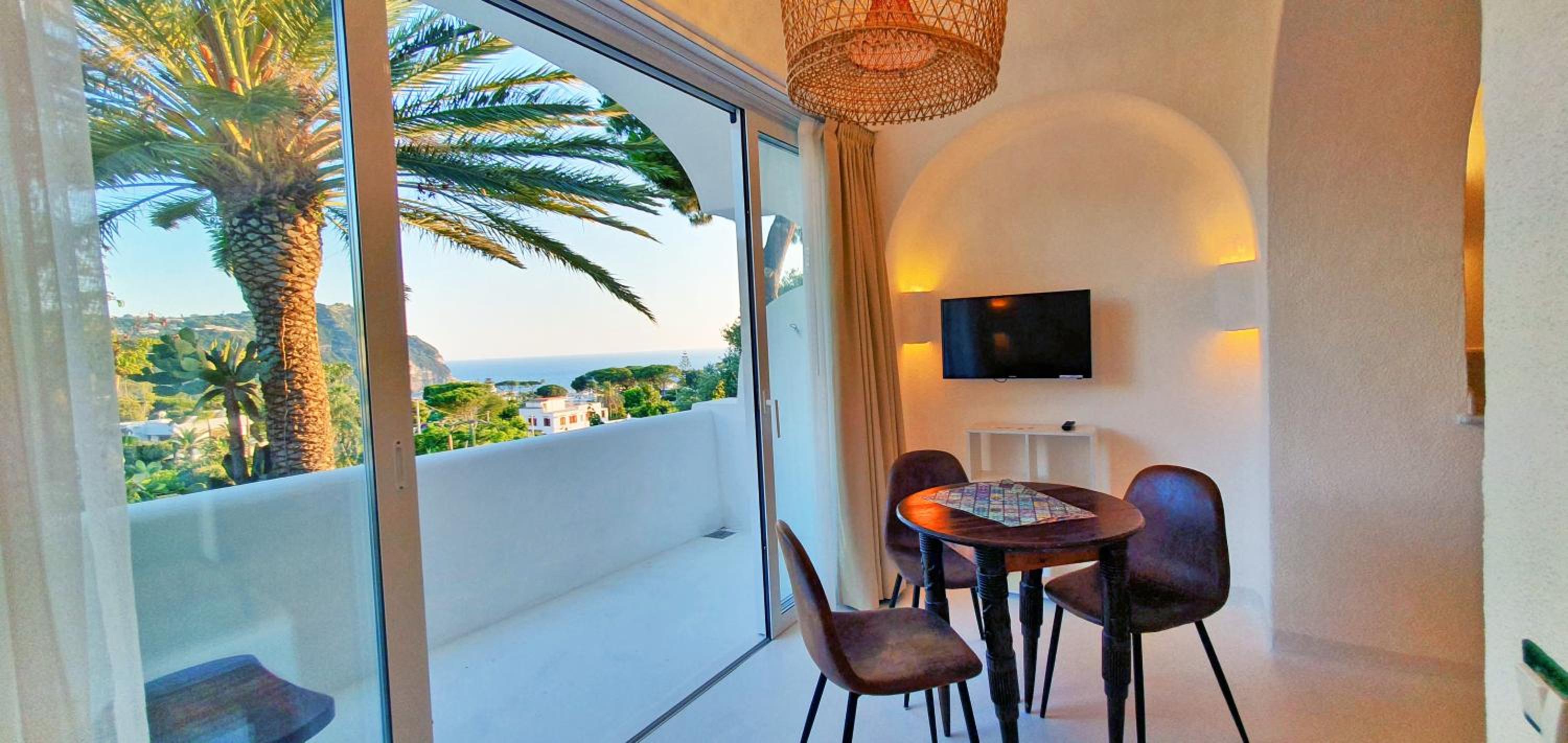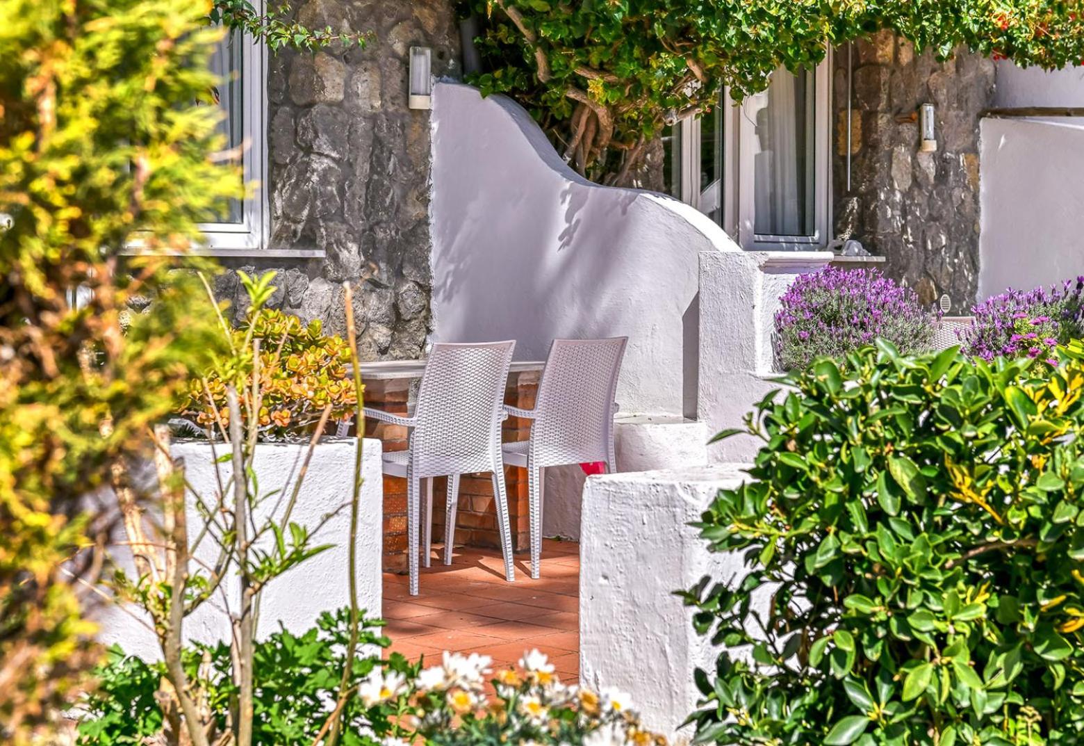 Il giardino è splendido, la vista dal balcone molto bella, l'alloggio era molto ampio, la colazione abbondante e varia. Una sera abbiamo cenato nel ristorante dell'albergo, gustando un ottimo coniglio all'ischitana ed ascoltando musica dal vivo.