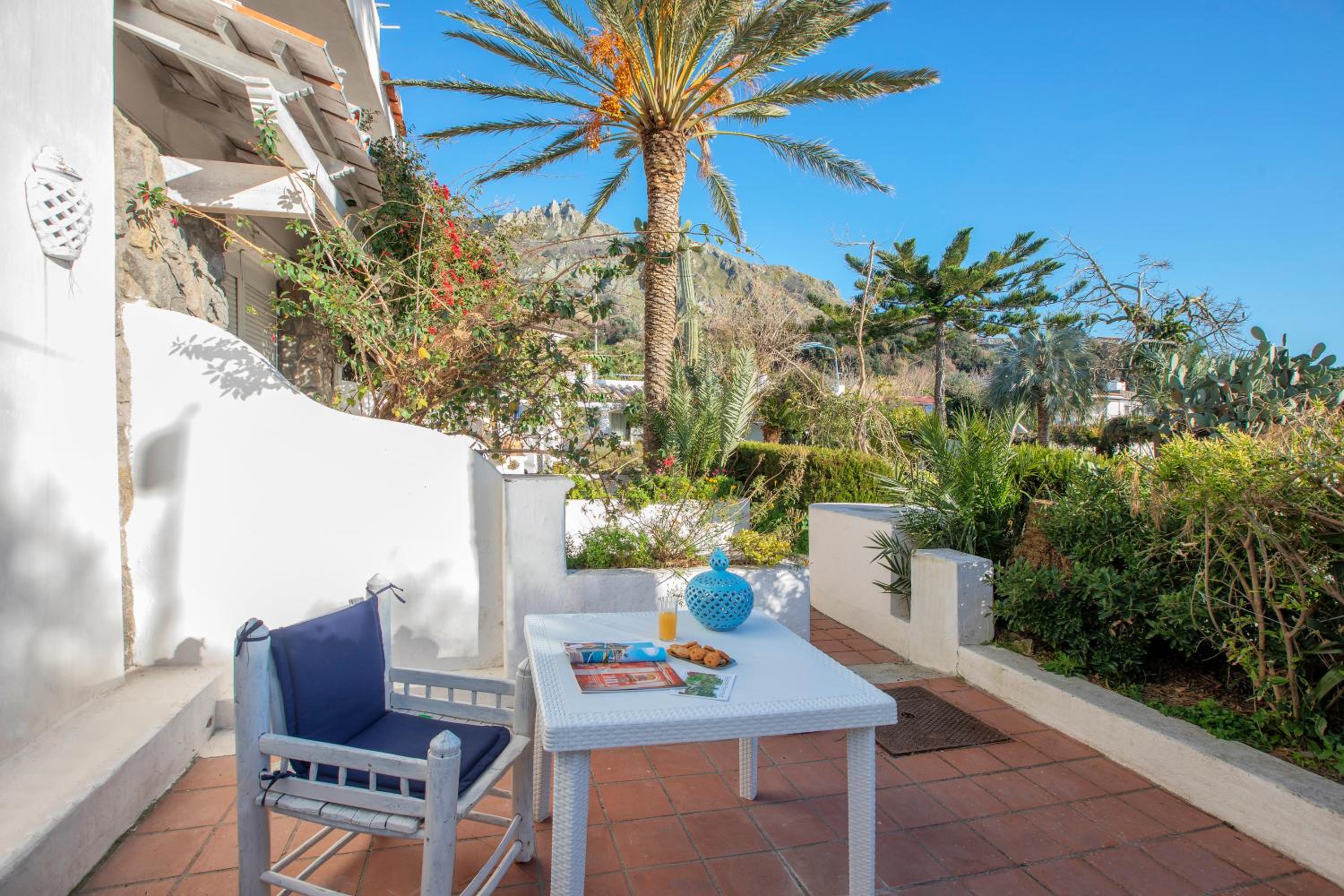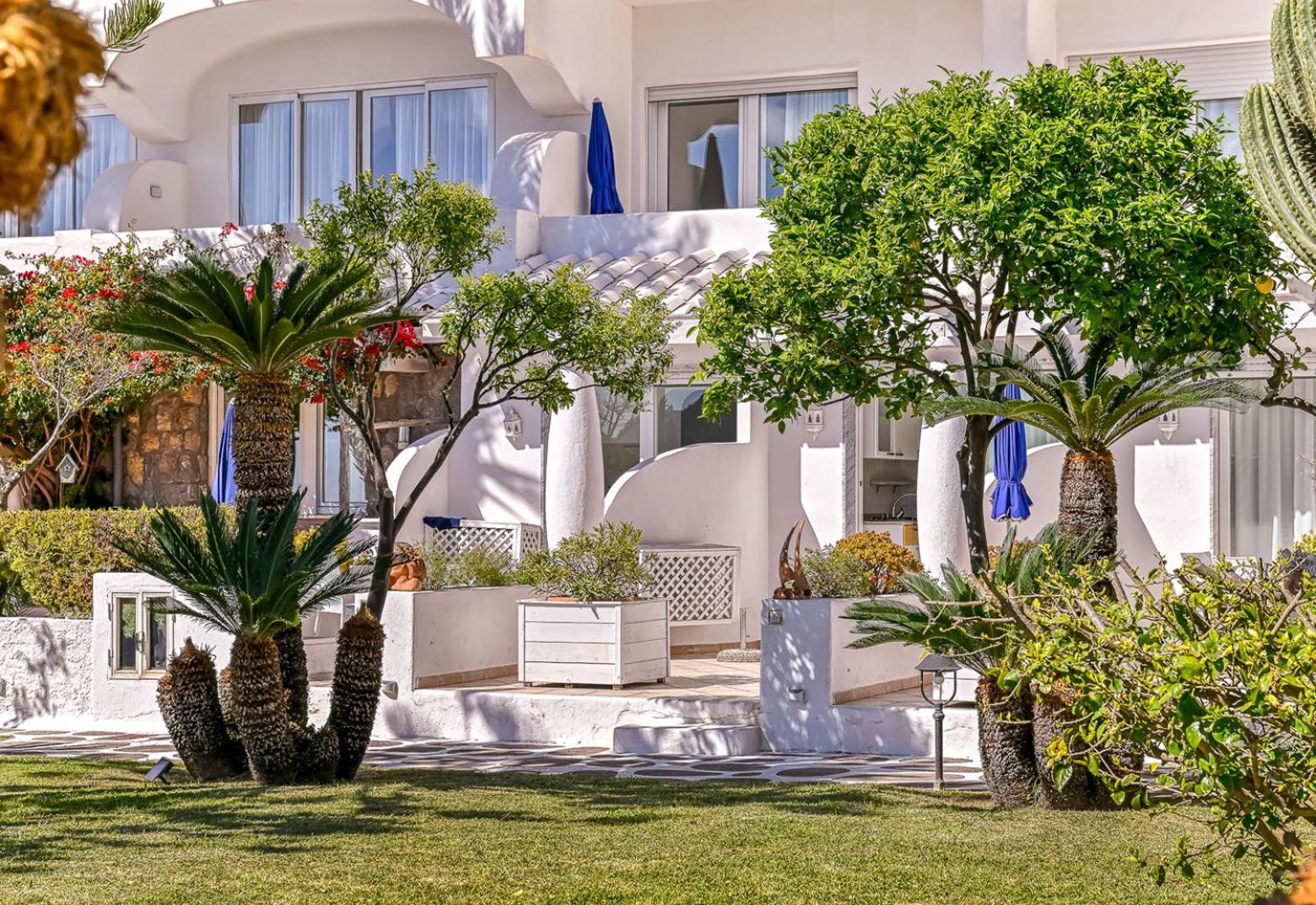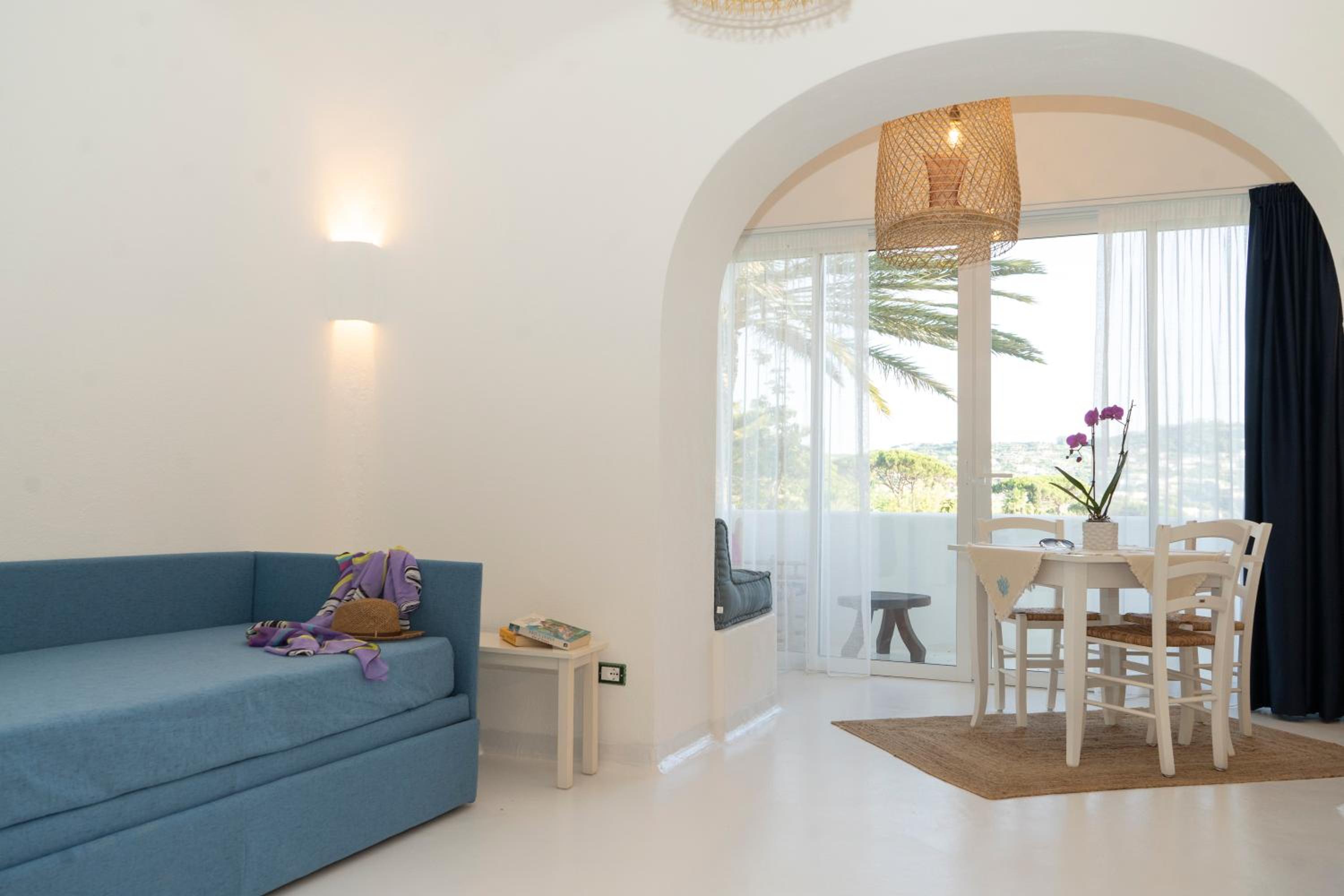 Il giardino è splendido, la vista dal balcone molto bella, l'alloggio era molto ampio, la colazione abbondante e varia. Una sera abbiamo cenato nel ristorante dell'albergo, gustando un ottimo coniglio all'ischitana ed ascoltando musica dal vivo.