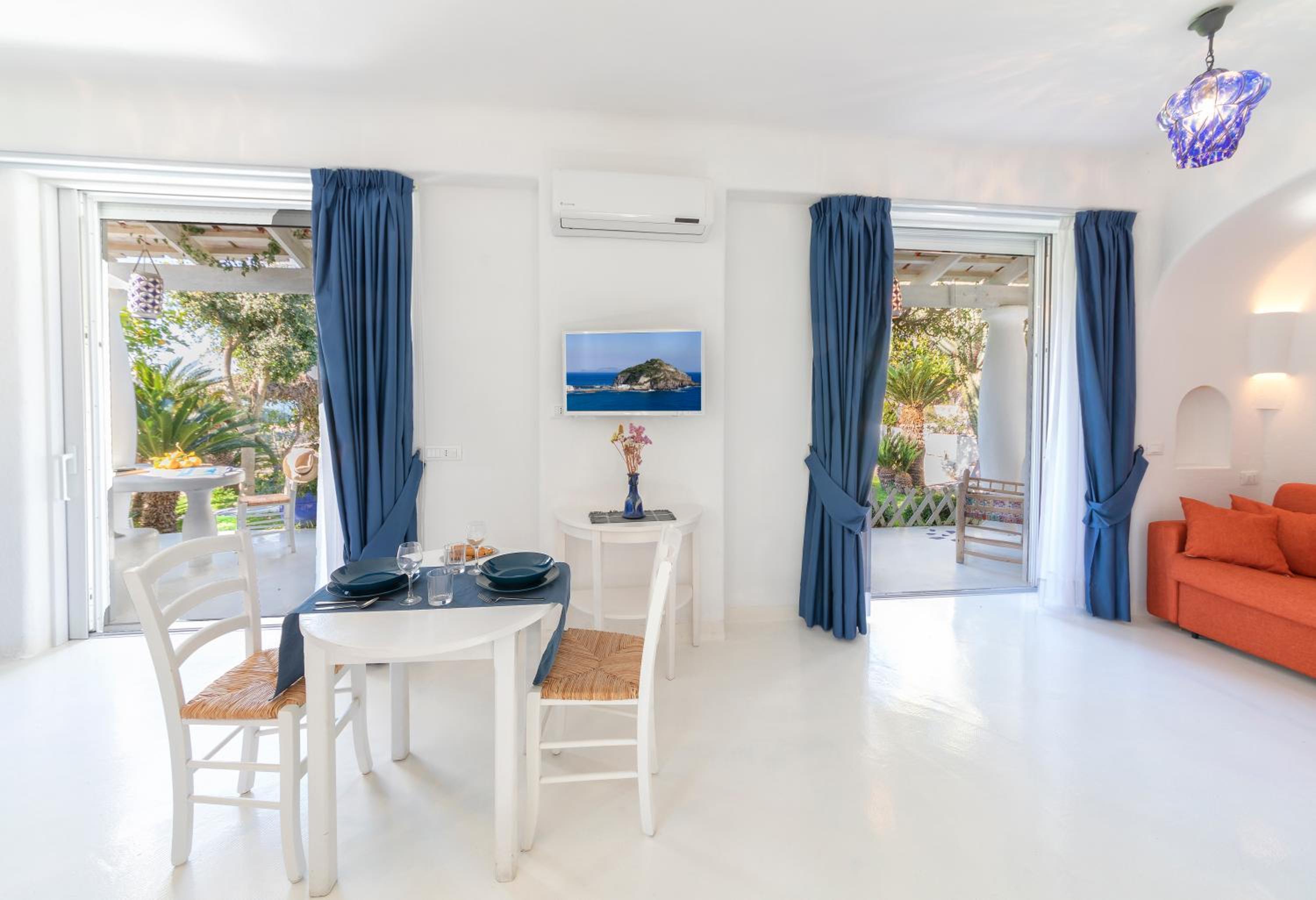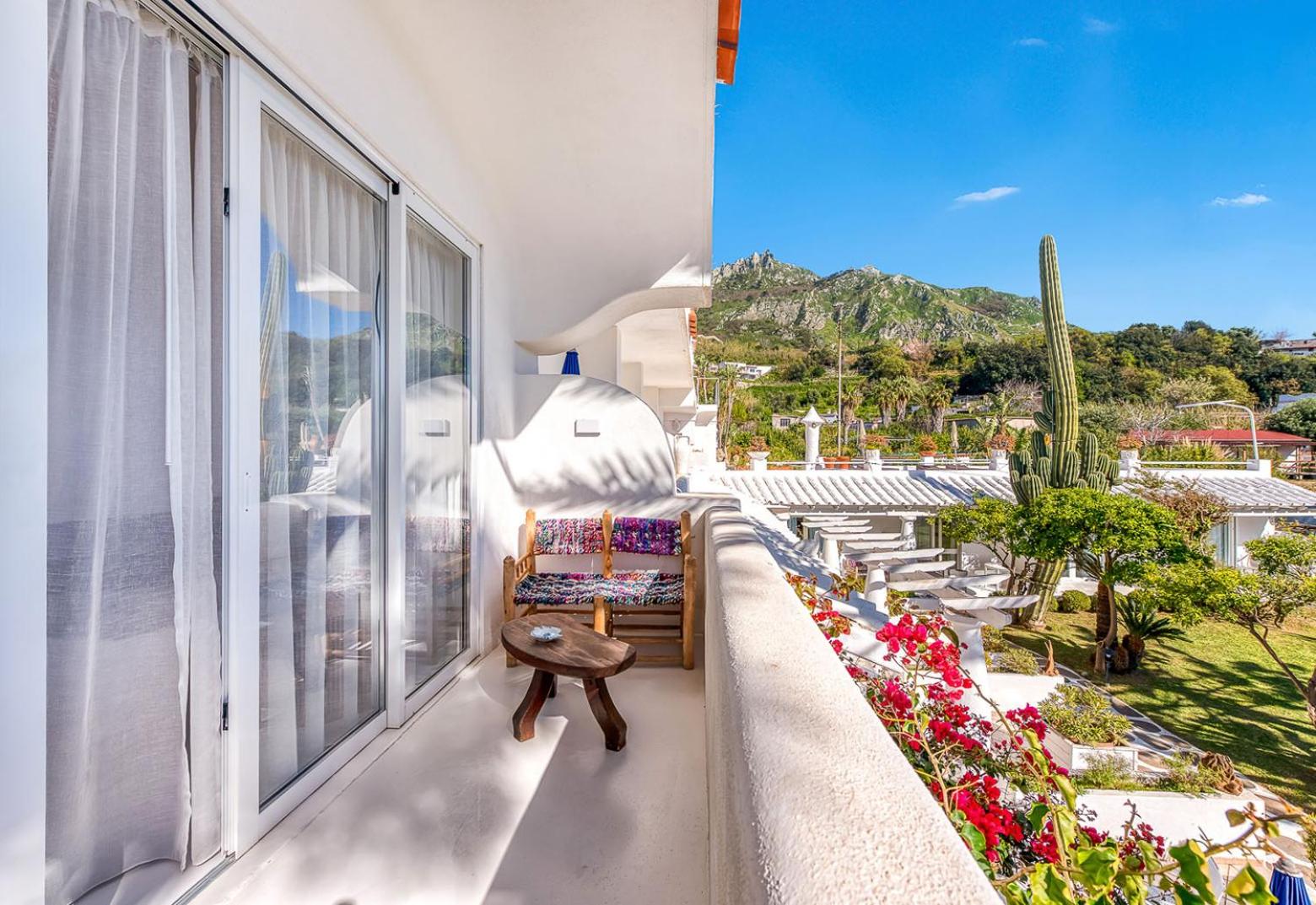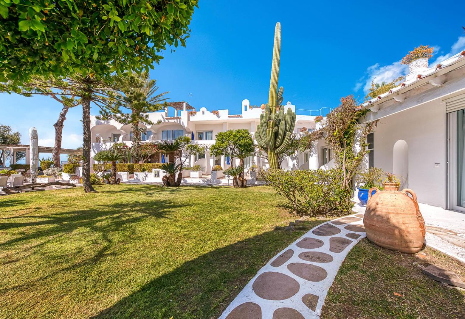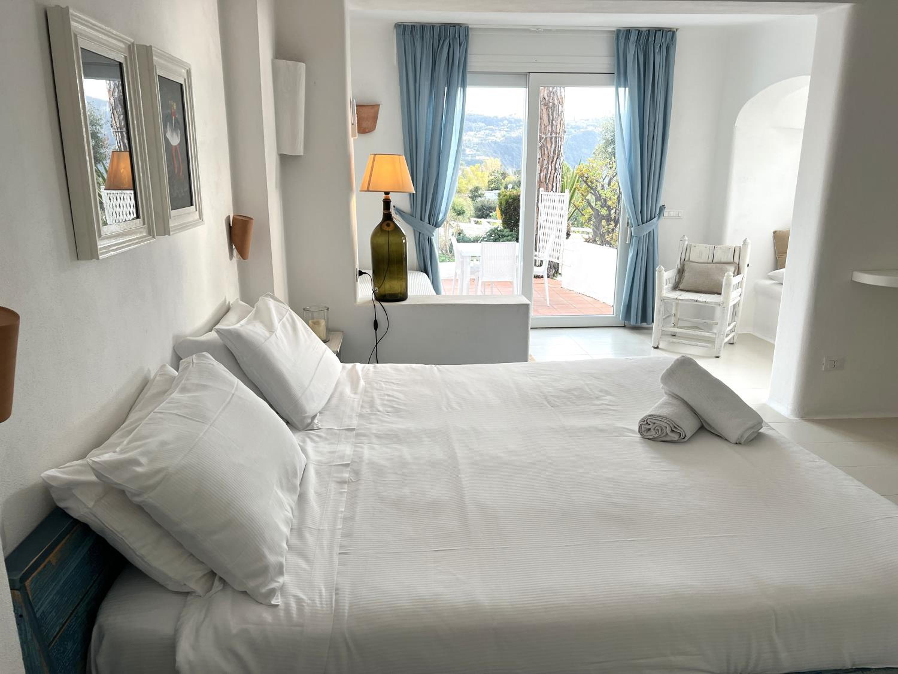 Il giardino è splendido, la vista dal balcone molto bella, l'alloggio era molto ampio, la colazione abbondante e varia. Una sera abbiamo cenato nel ristorante dell'albergo, gustando un ottimo coniglio all'ischitana ed ascoltando musica dal vivo.