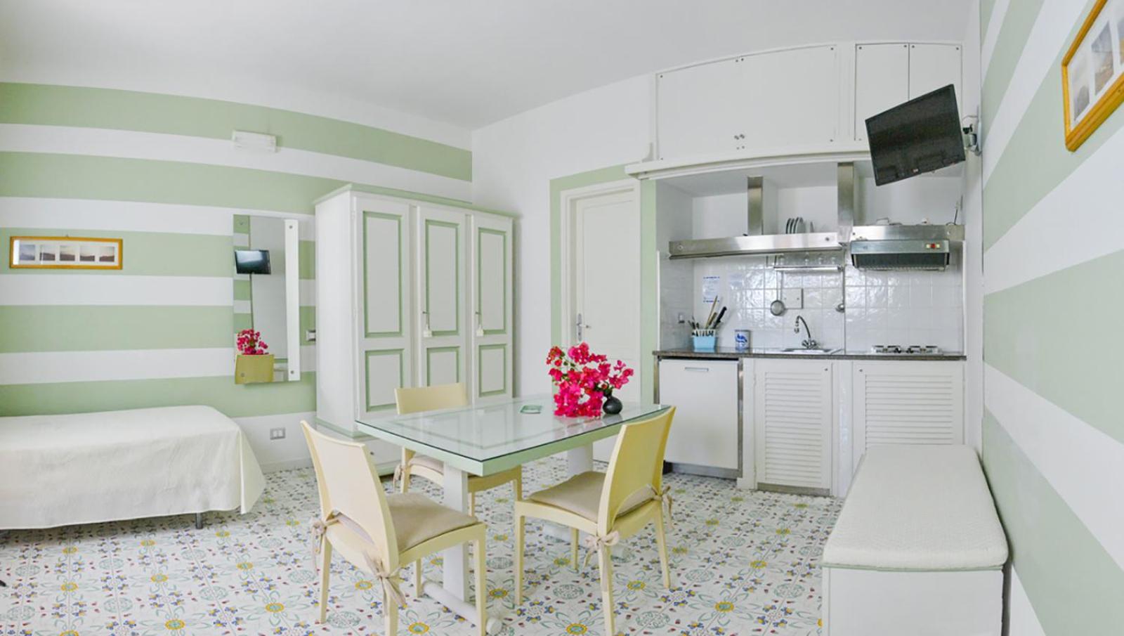 The Hotel Residence Mendolita offers beautifully decorated apartments, each with its own small garden, providing a serene oasis for up to 6 guests.