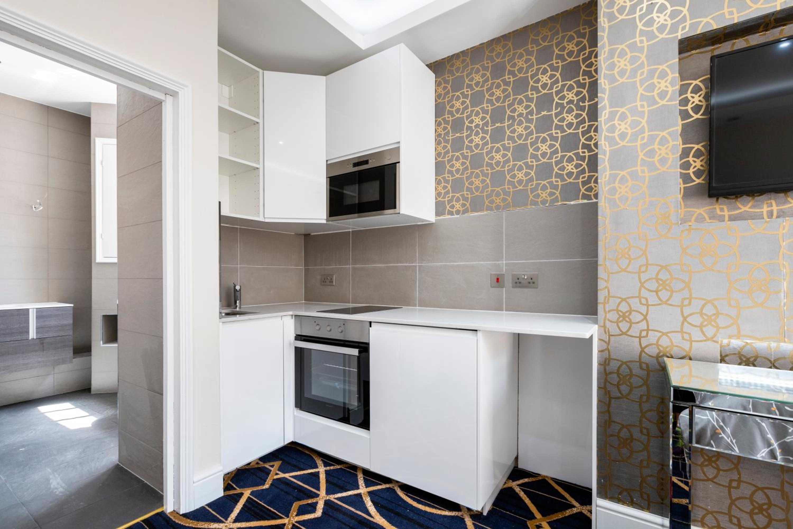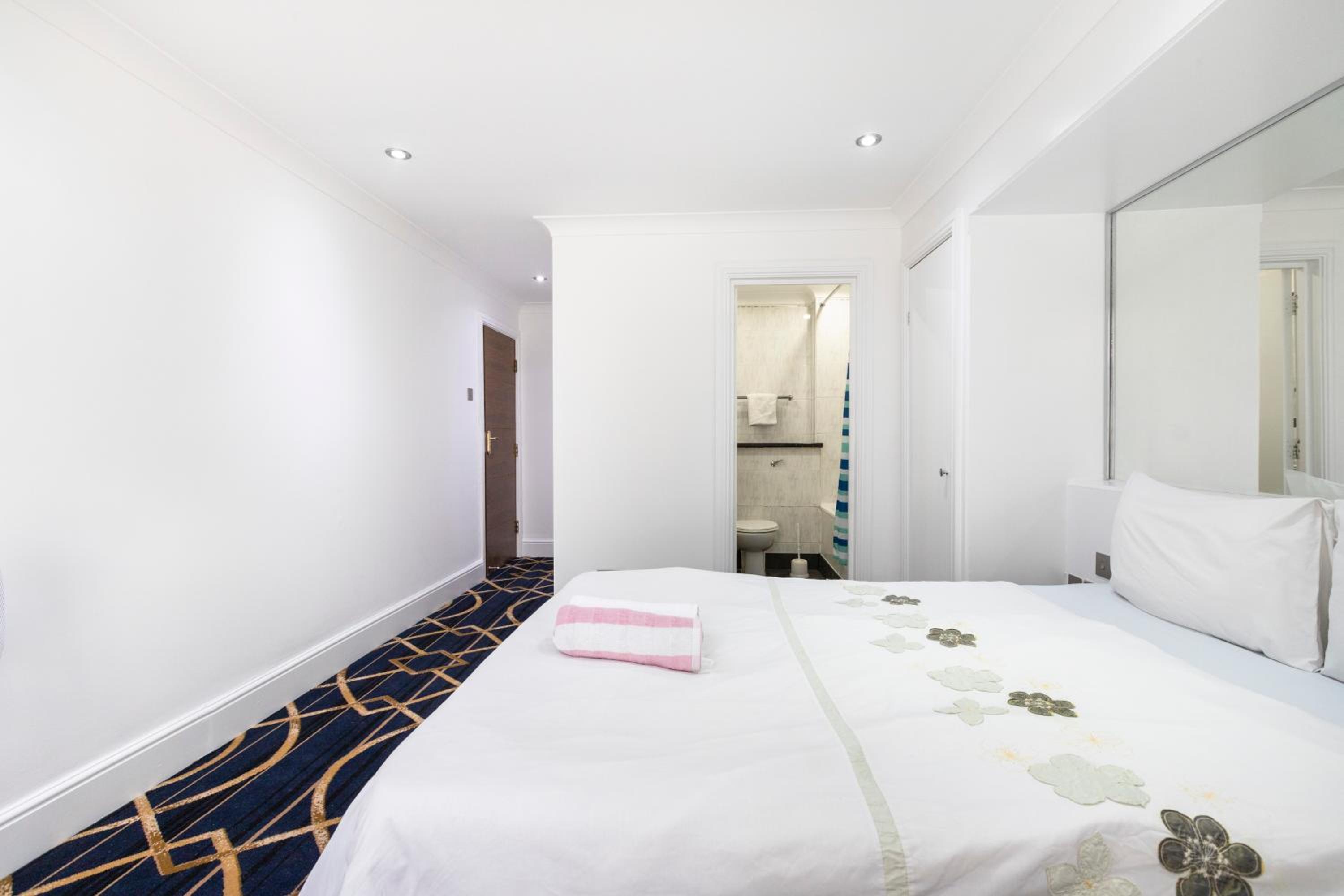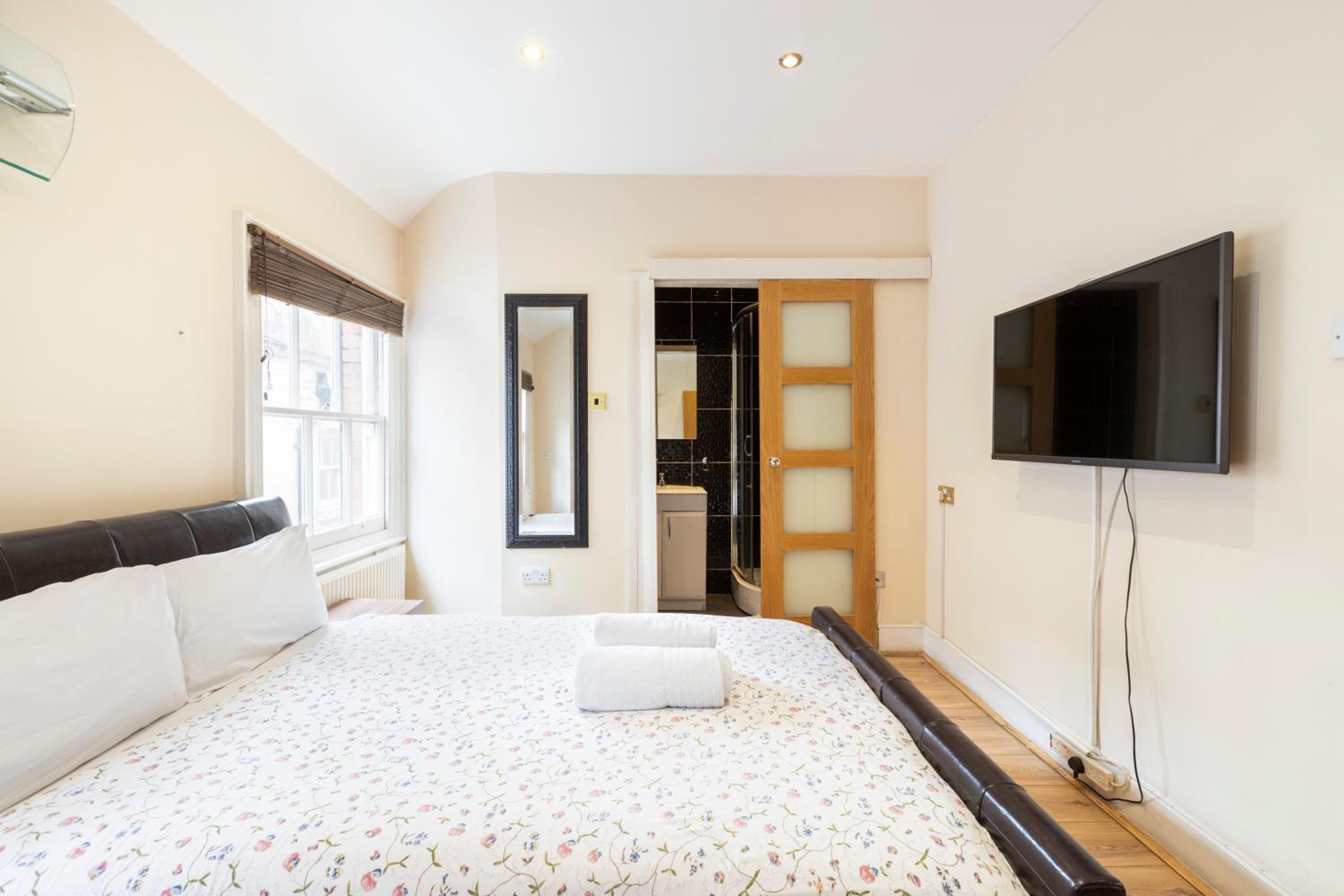 Round the corner from Park Lane, this was a great find in an otherwise expensive area of London. Bedroom area was spacious with a small kitchen section for self catering. Bathroom was also spacious with a good shower.