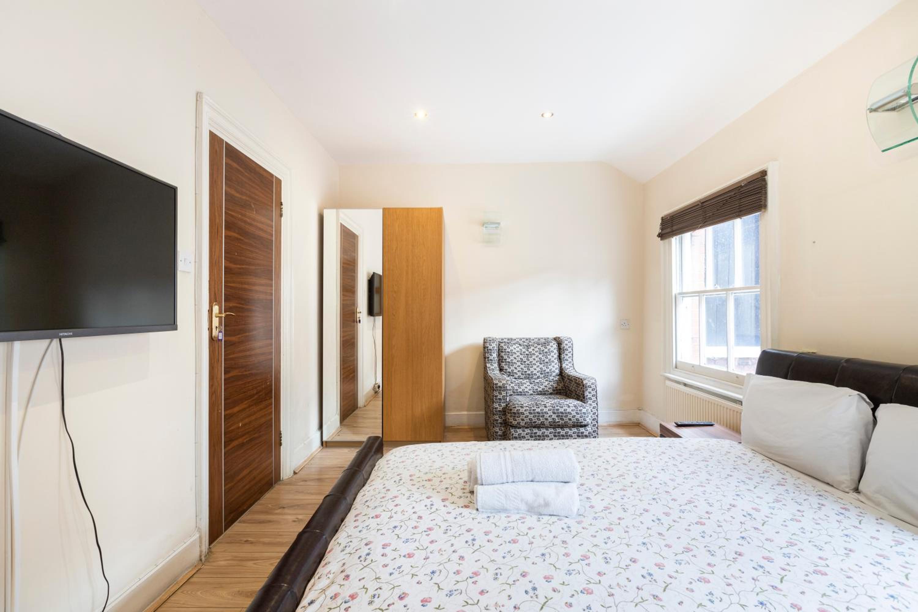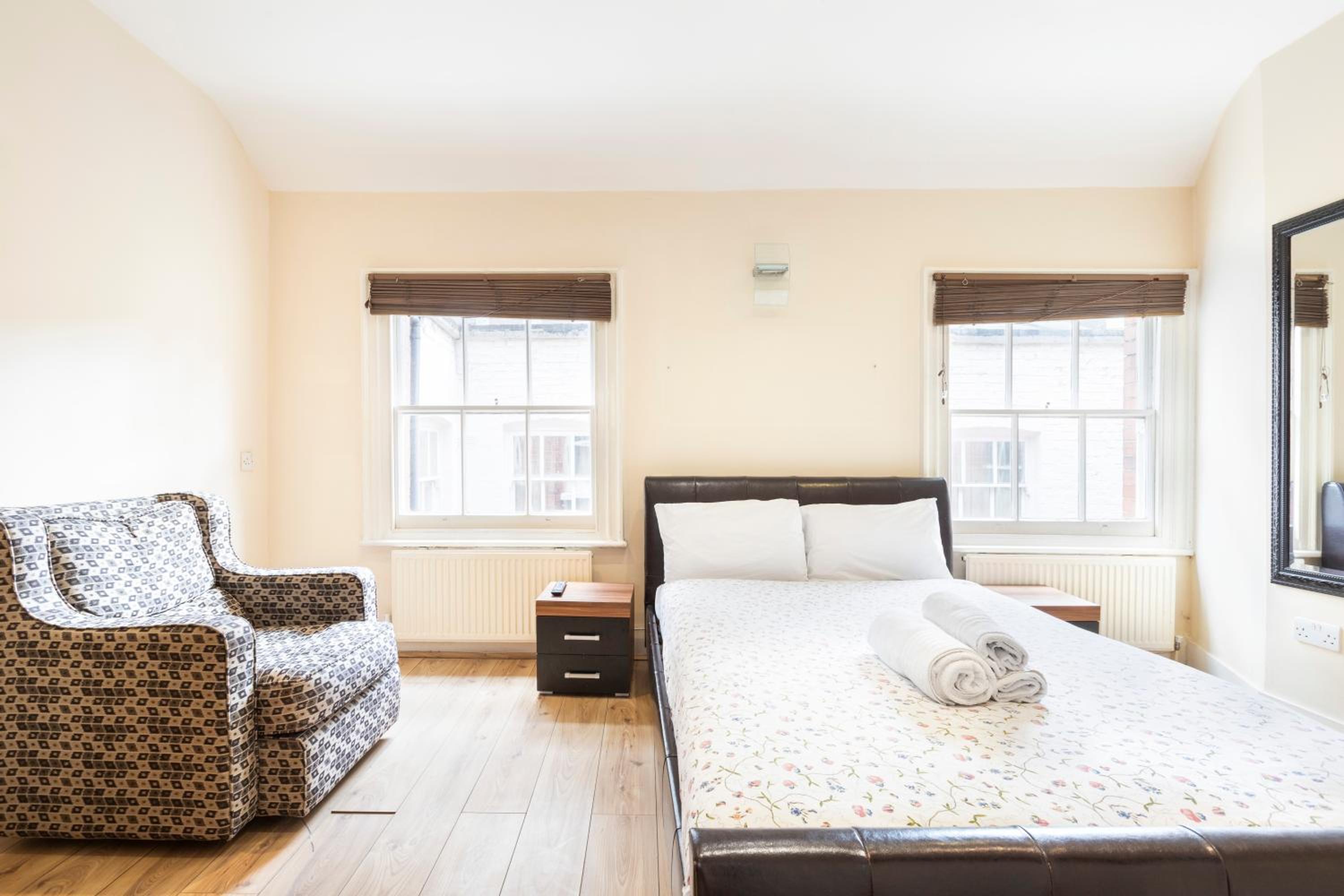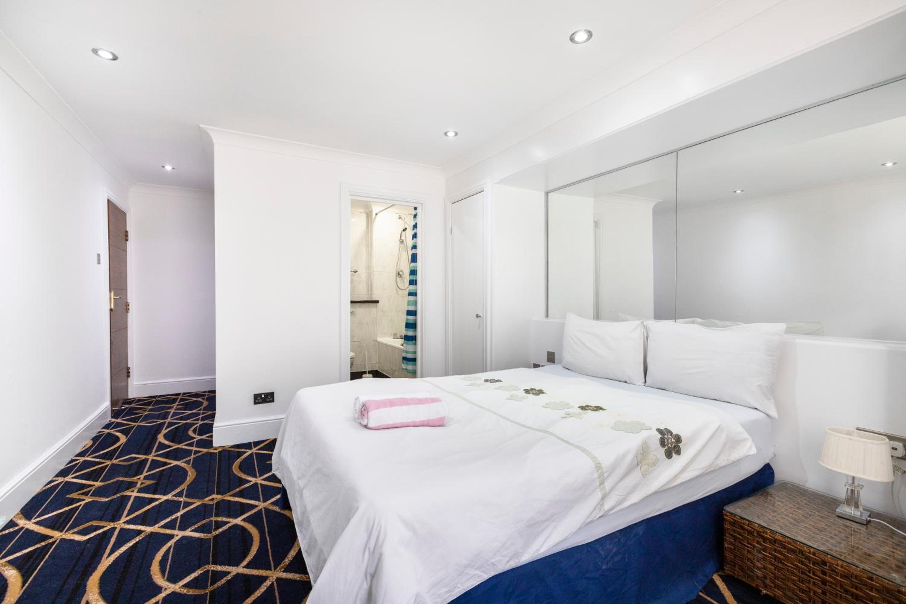 Round the corner from Park Lane, this was a great find in an otherwise expensive area of London. Bedroom area was spacious with a small kitchen section for self catering. Bathroom was also spacious with a good shower.