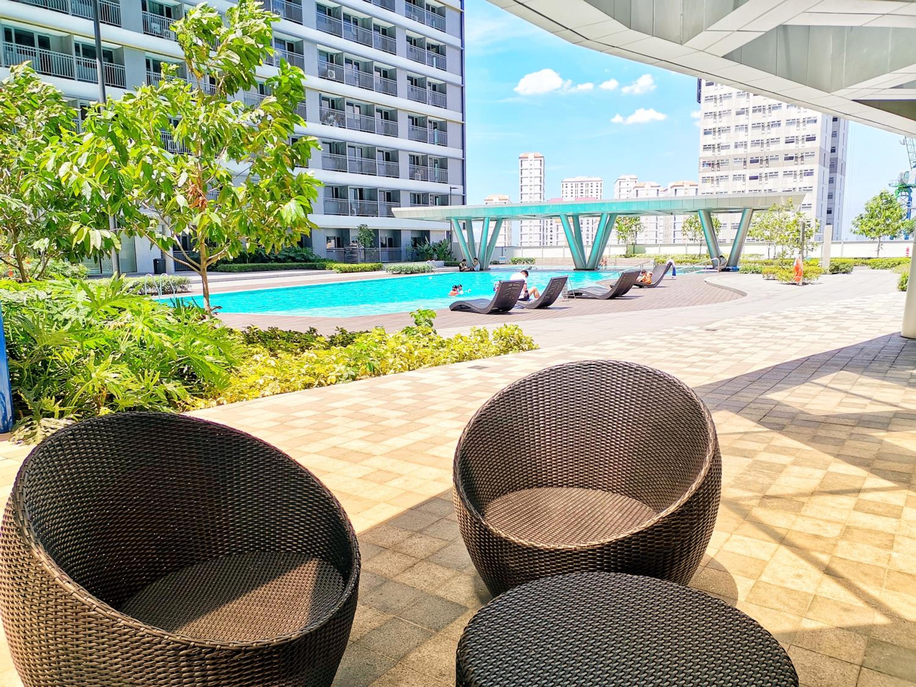 Book now for a memorable stay at Stylish 1 Bedroom Condo Unit with Perfect Pool View Balcony at Fame Residences.