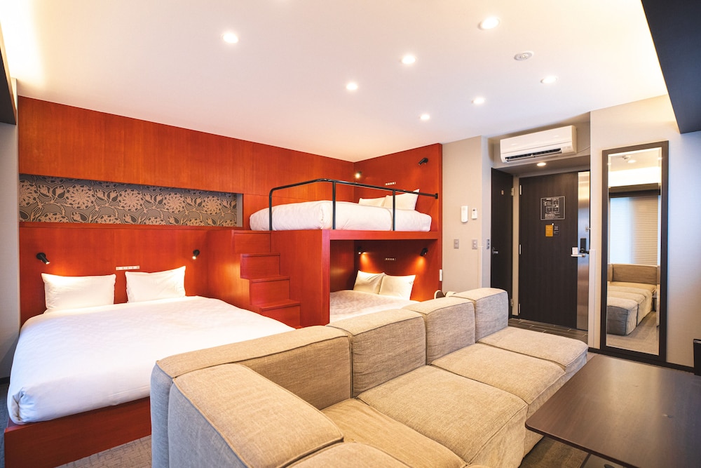 very fun property to stay at! we were in the pink room with the sea animals. quite hard to get to as a traveller (the only taxi we ever booked in japan) but the amenities were fantastic, and the place was modern. exactly what we needed