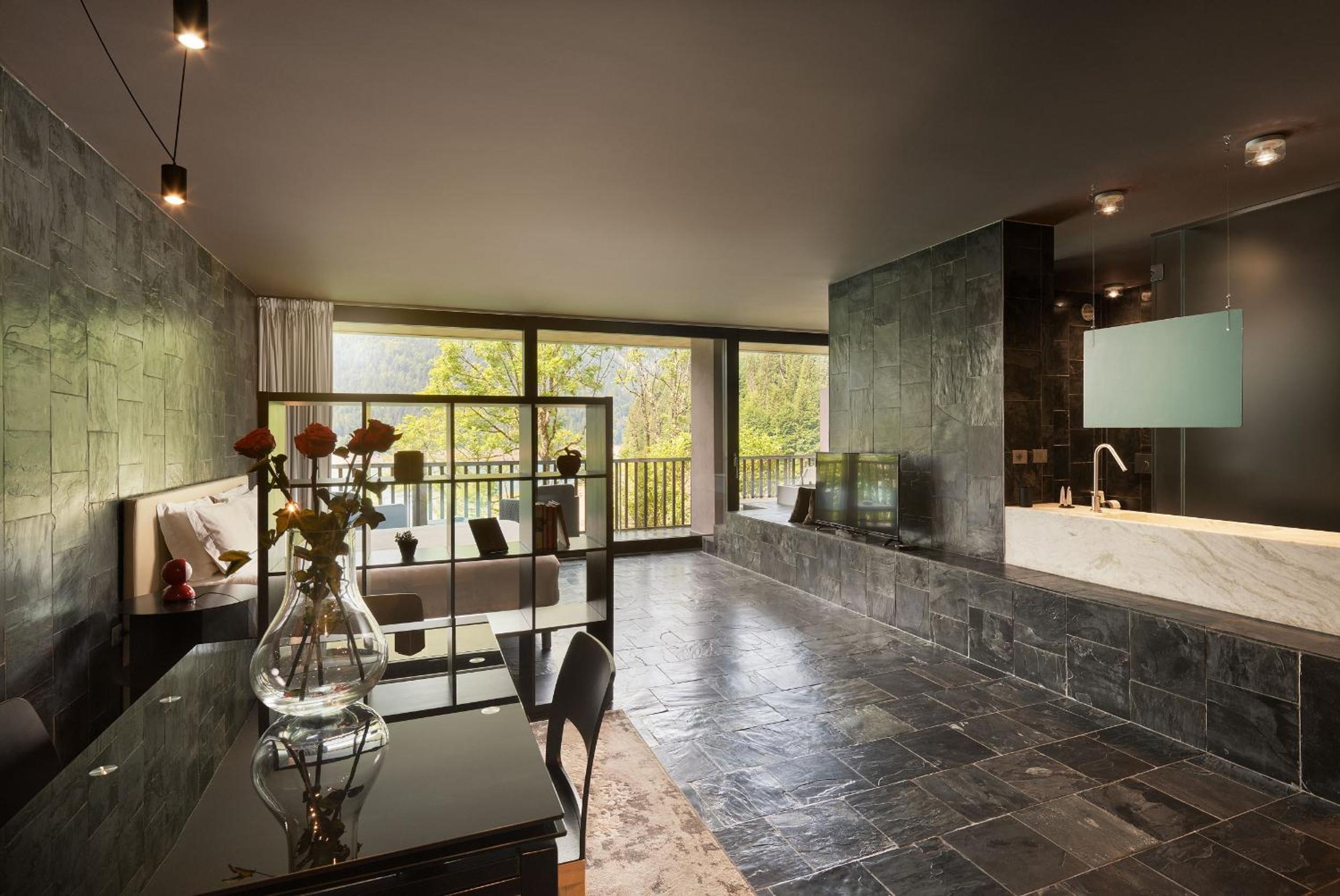 Indulge in rooms with terraces offering mountain views, free WiFi, flat-screen TVs with streaming services, and private bathrooms with premium amenities like bathrobes and walk-in showers. Some rooms even include fully equipped kitchenettes for added convenience.