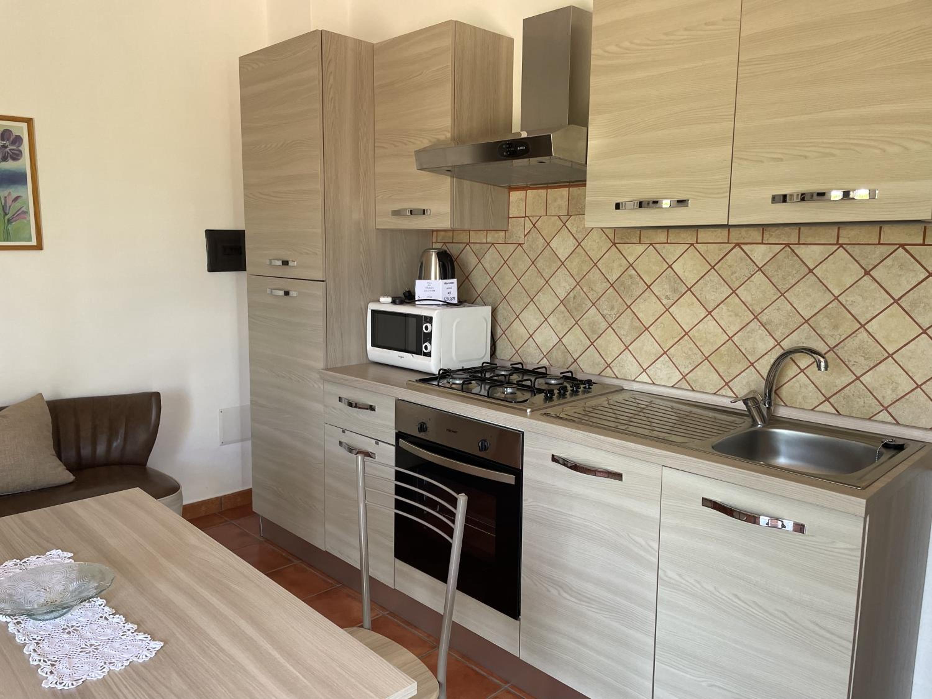 The villa is located in a very quiet and beautiful area, close to Alghero and some nice beaches. Our apartment was fully equipped with everything we needed and very comfortable. The garden and yard area is huge and sitting outside is very nice, if it's not too hot. A very convenient parking place in the shadow is located in the yard. The breakfast was fine, taking into account that we were the only guests for most of our time there. It was served on the yard among palm trees. Salvatore and his sister Rosa are very polite and helpful, although they don't speak English so much.