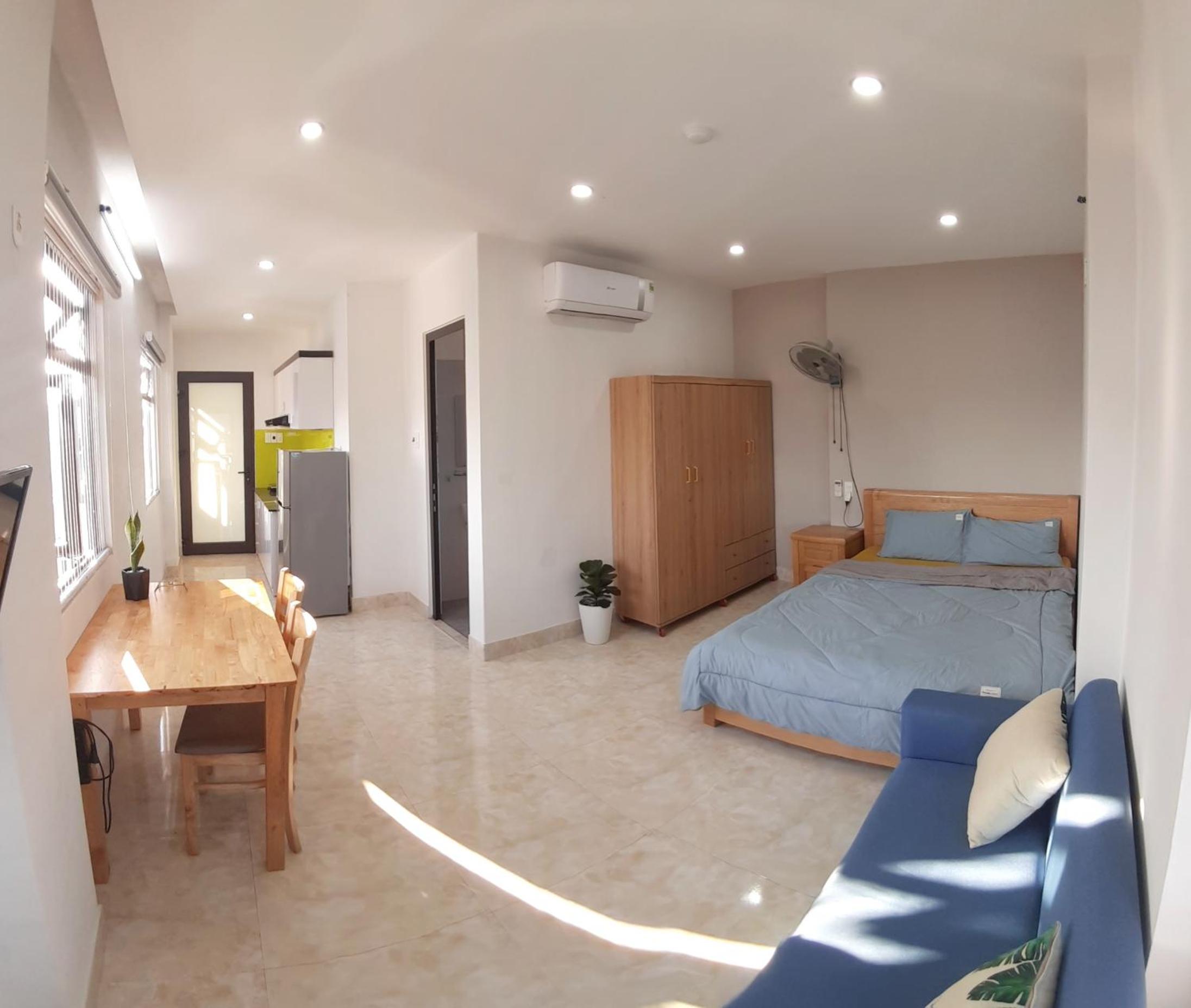 Close to many restaurants and a brisk 5 minute walk to Thanh Khe beach. Kitchen table was good for work. Undercover motorbike parking downstairs. Plenty of hot water.
