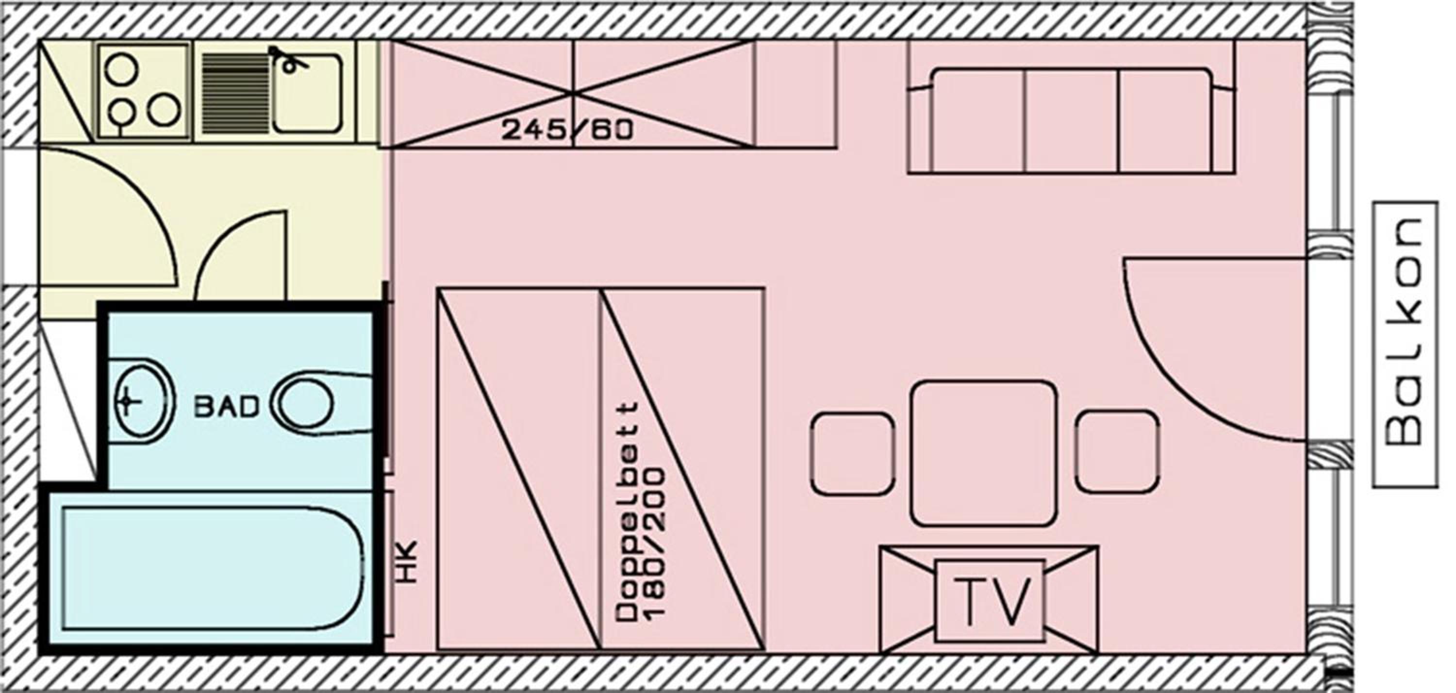 Das man nicht richtig Fenster oder Balkontür aufmachen konnte, weil die Nachbarn immer Gras geraucht haben, aber dafür können ja die Besitzer oder Hotel Team nichts.
