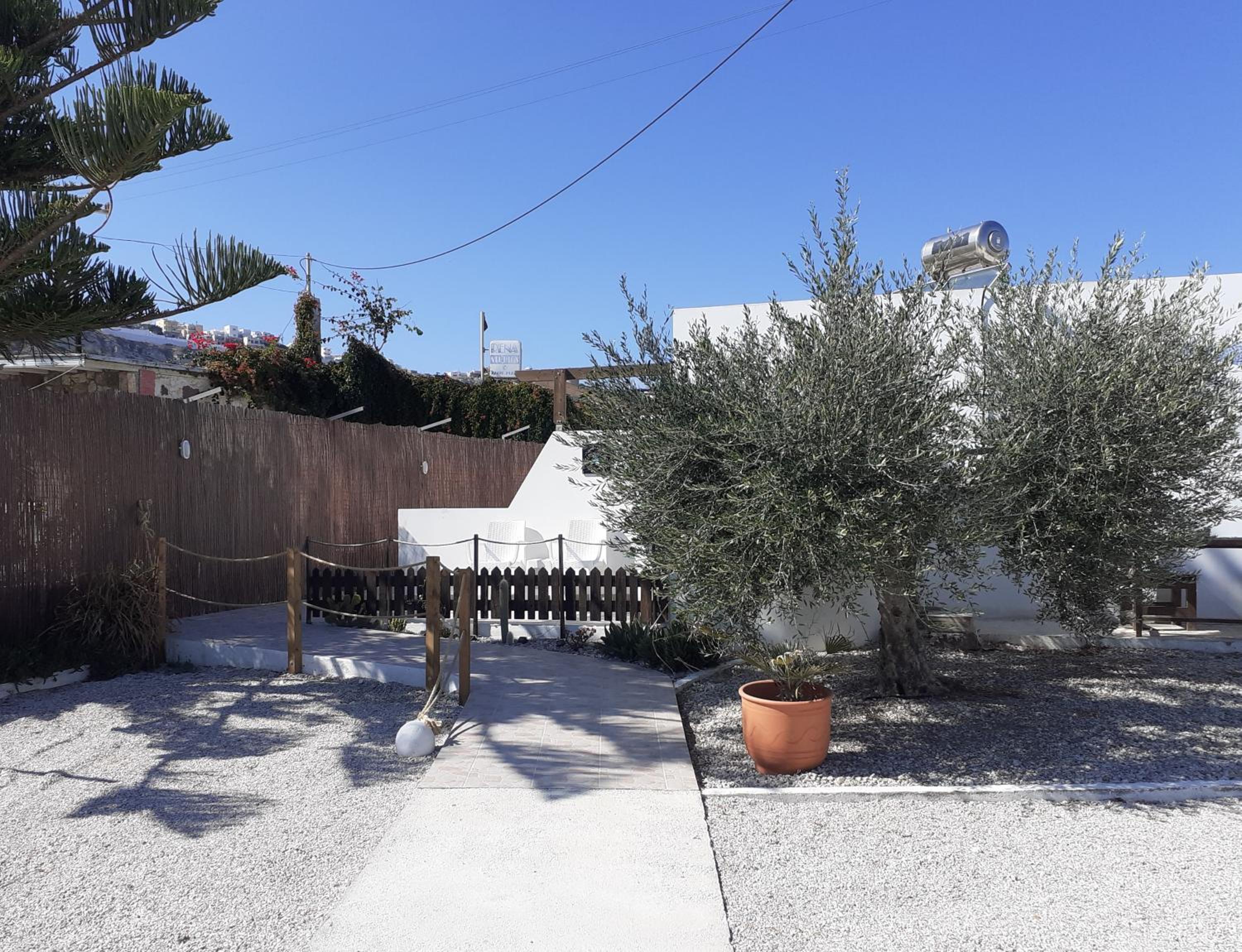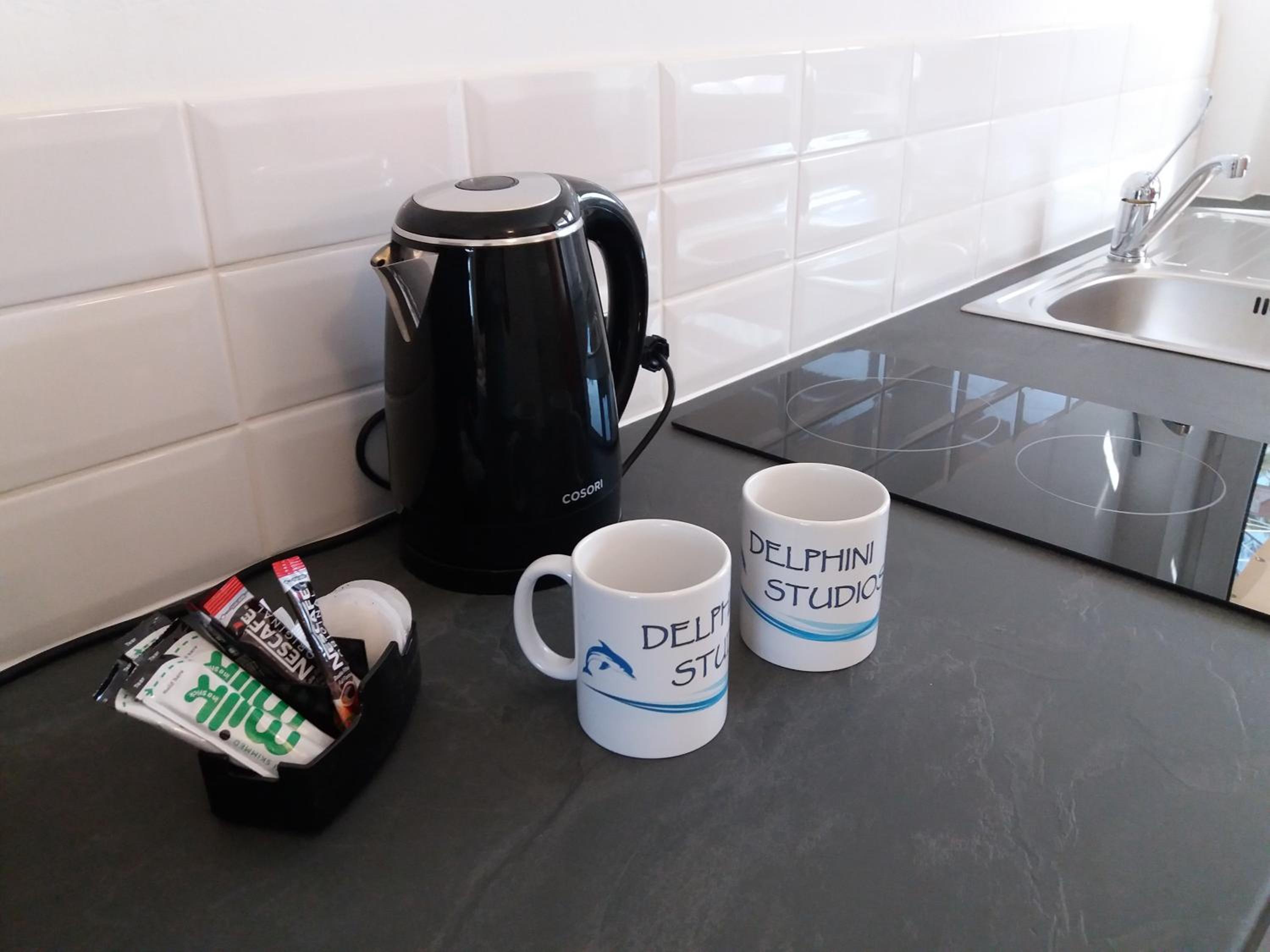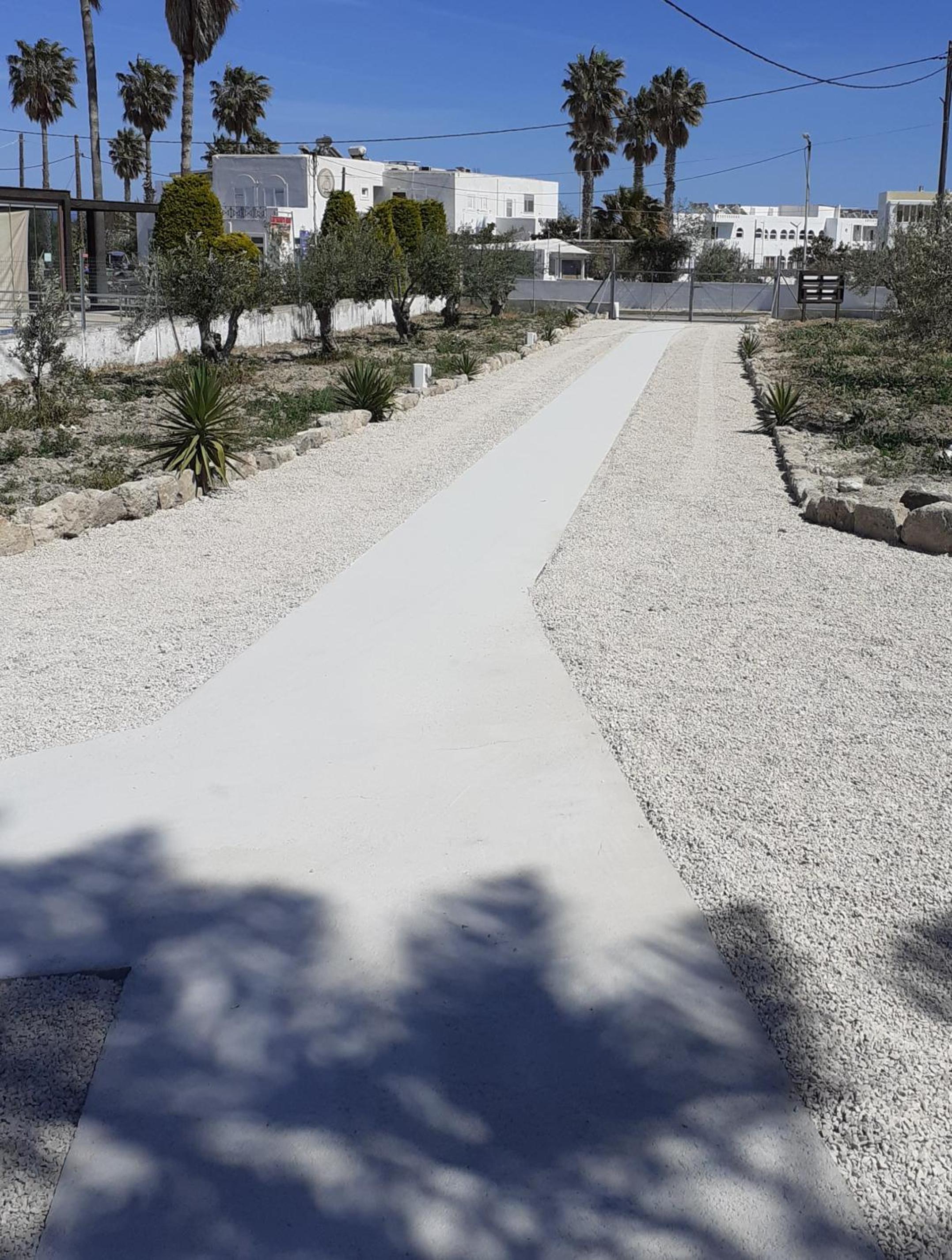 The studios are large, well designed and beautifully finished. The accessible shower room is superb with a powerful shower and plenty of hot water. There is good, free wifi, a free safe and a good sized fridge which was well stocked when we arrived. There is a large patio area at the front of each studio with good quality sun loungers and a small table and chairs. Unfortunately there is no view from the patios (apart from the boundary fence) but that is not uncommon for ground floor accommodation. Cat and Andy are great hosts, friendly and extremely helpful. They provided transfers to and from the airport for a very reasonable price, which was very helpful and convenient. The ladies who tidied and cleaned the rooms (Sammy and Jean) were always friendly and helpful and kept the studio immaculate. The beach is around 250 yards away and there are half a dozen or more tavernas within that distance, plus a small supermarket right next door to the studios.