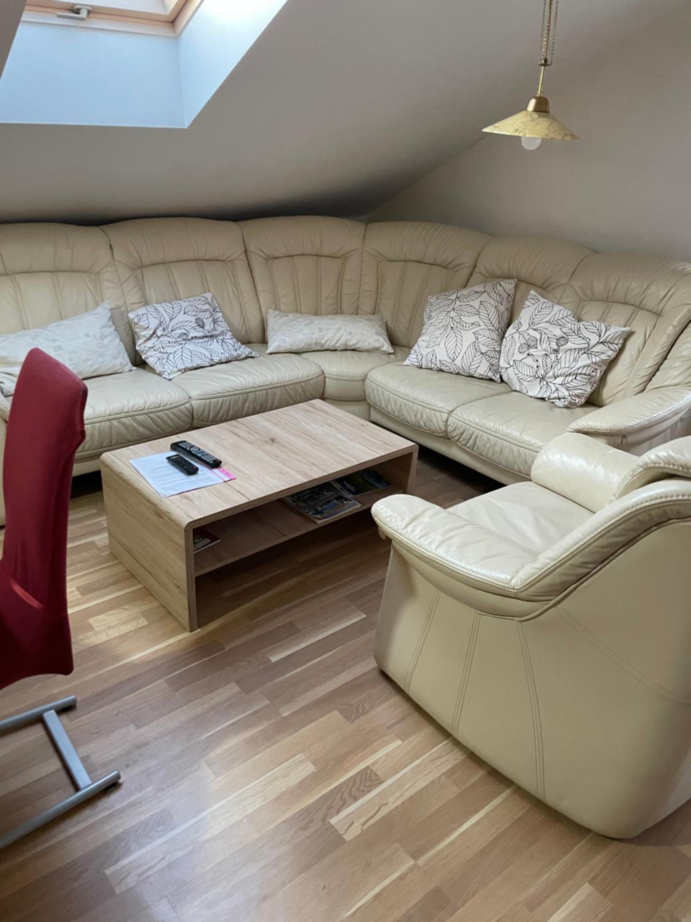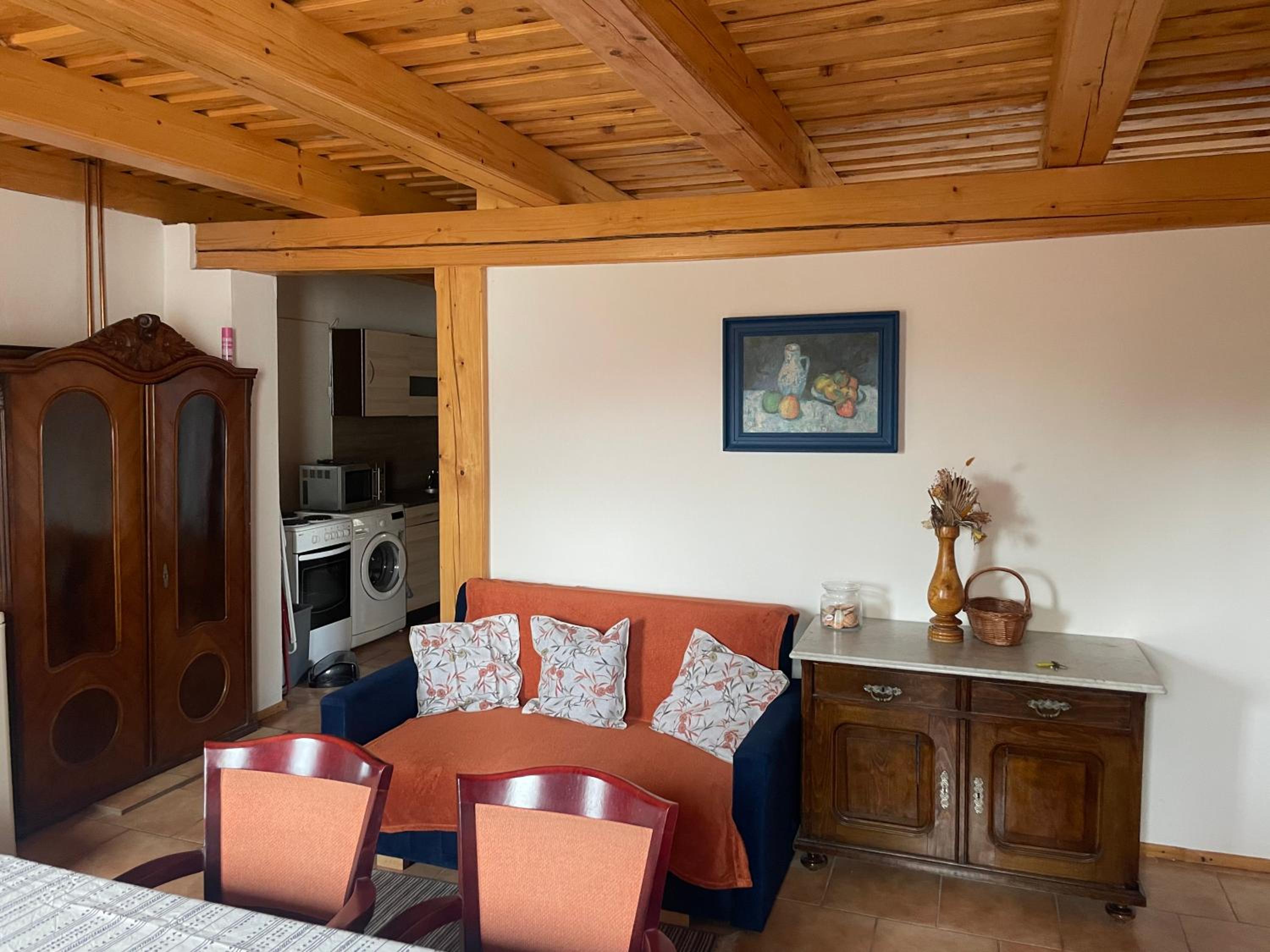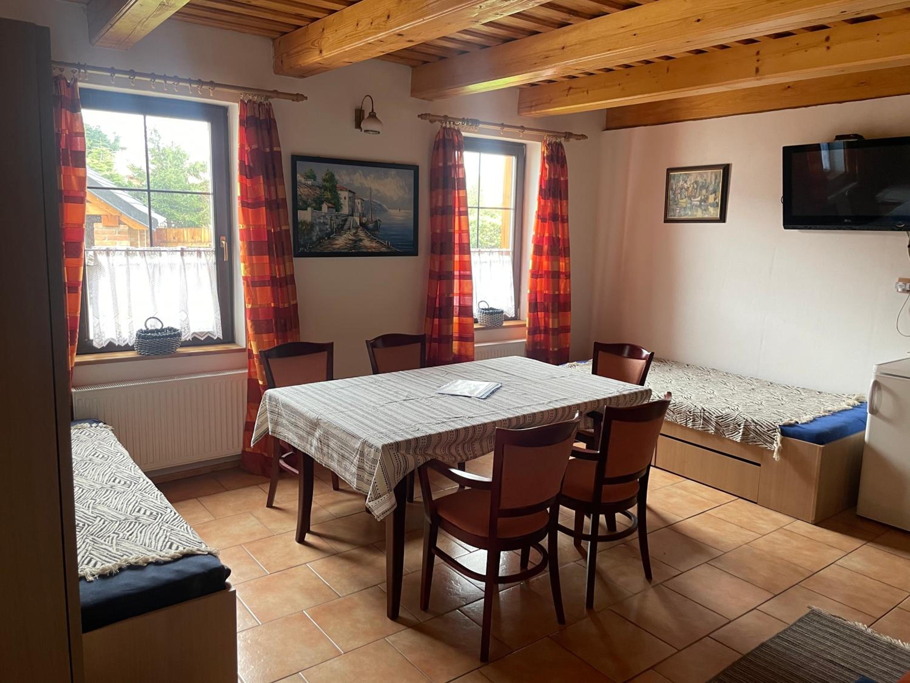 Ubytování v pohodě. 2x menší ložnice, které jsou na spaní zcela dostačující. Větší obyvák s jídelním stolem+2x postel. Kuchyňka malá , ale stačila. Koupelna starší, ale funkční. Heslo na wifi nám bylo sděleno při předání klíčů. posezení před apartmánem, a další posezení - velká krásná pergola , kde je možné uschovat a nabít elektrokola (při větším počtu elektrokol doporučuji vzít prodlužku). V kuchyňce se zapíná osvětlení mávnutím, zjistili jsme po dvou dnech :). Majitelka i maminka velmi příjemné. Děkujeme.