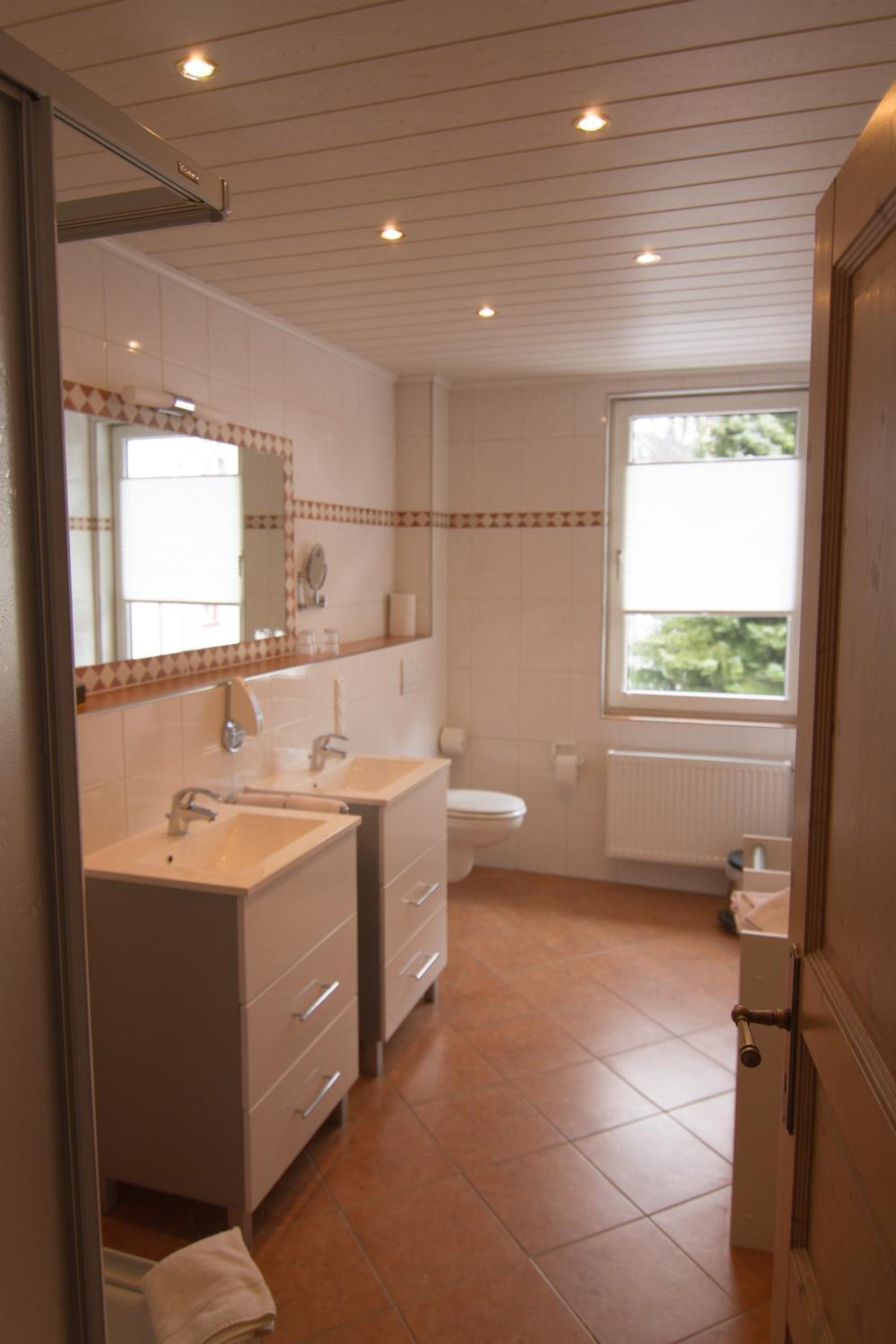 Im Bad kein Föhn und nur 1 Haken und keine Halterung für Toilettenpapier.