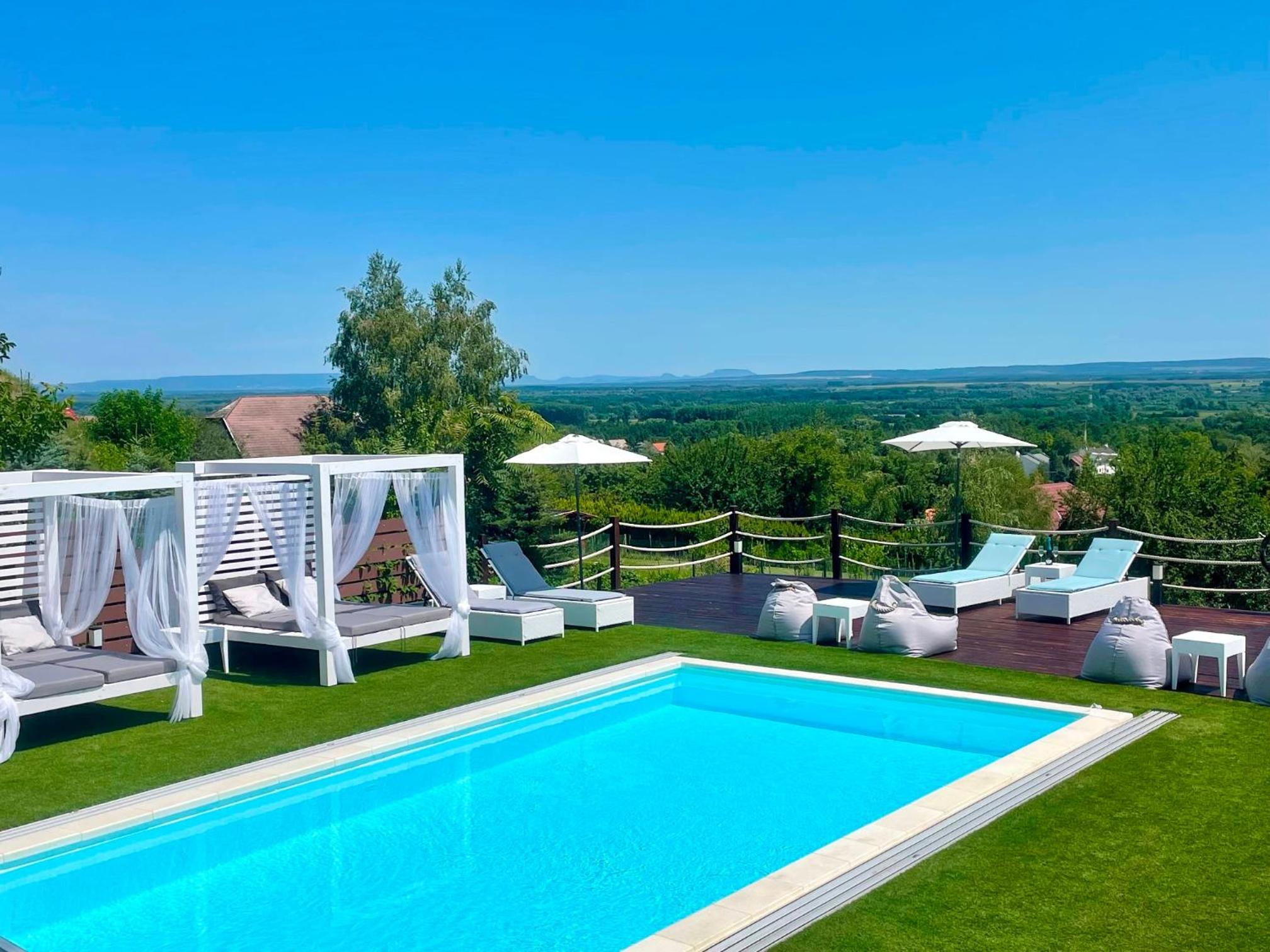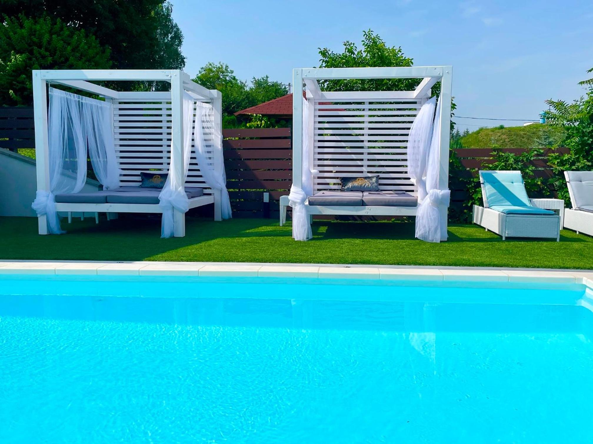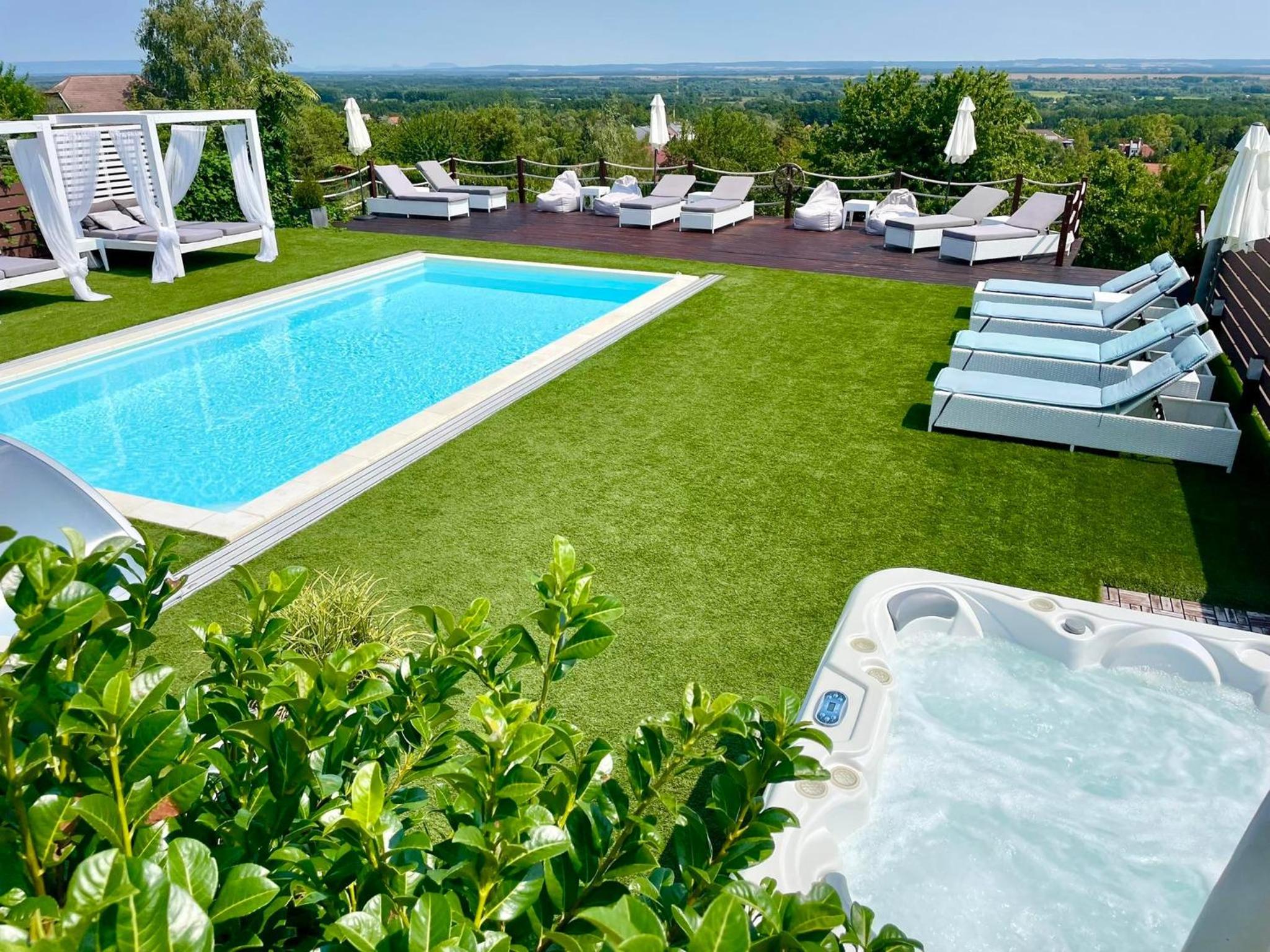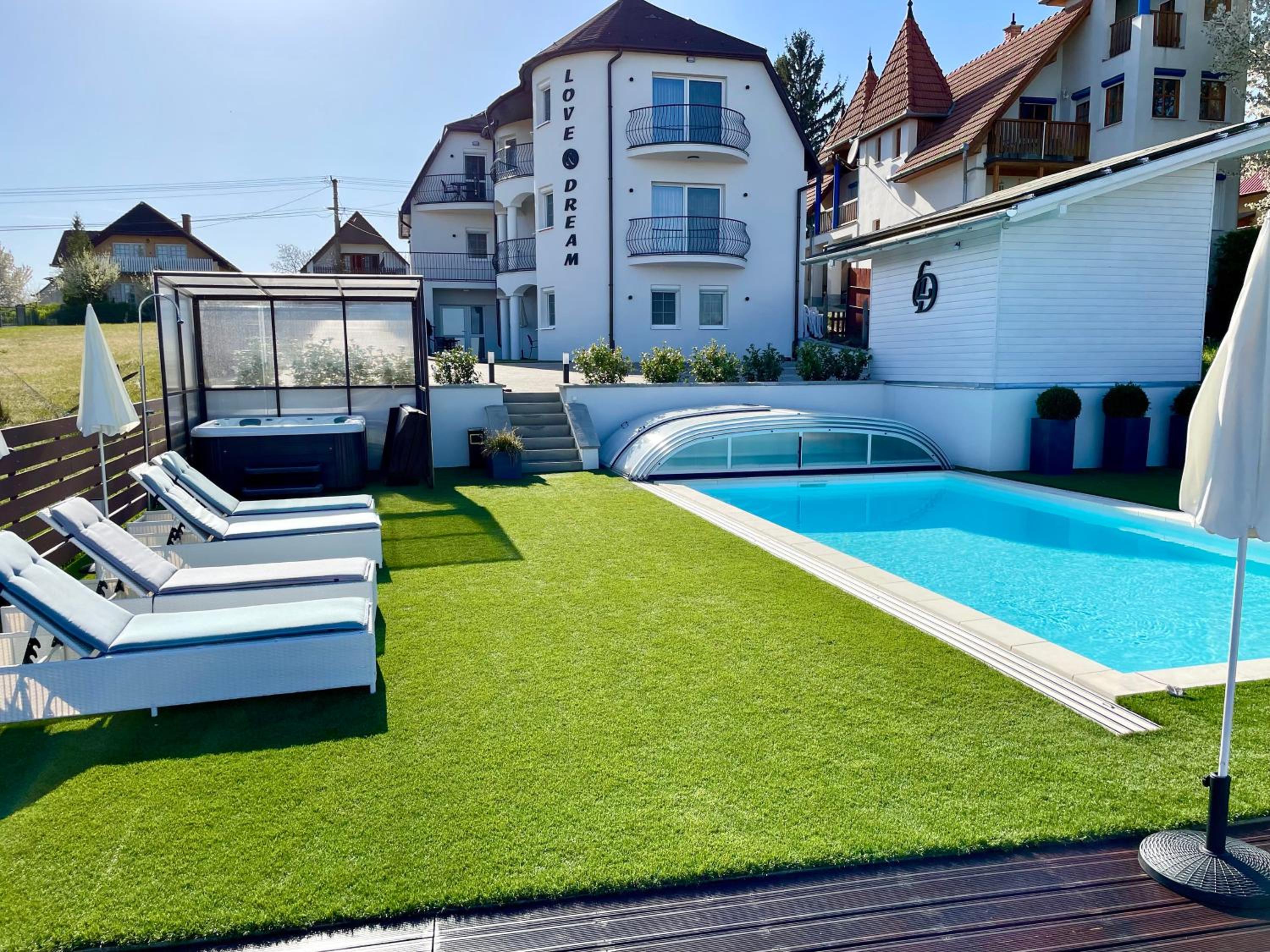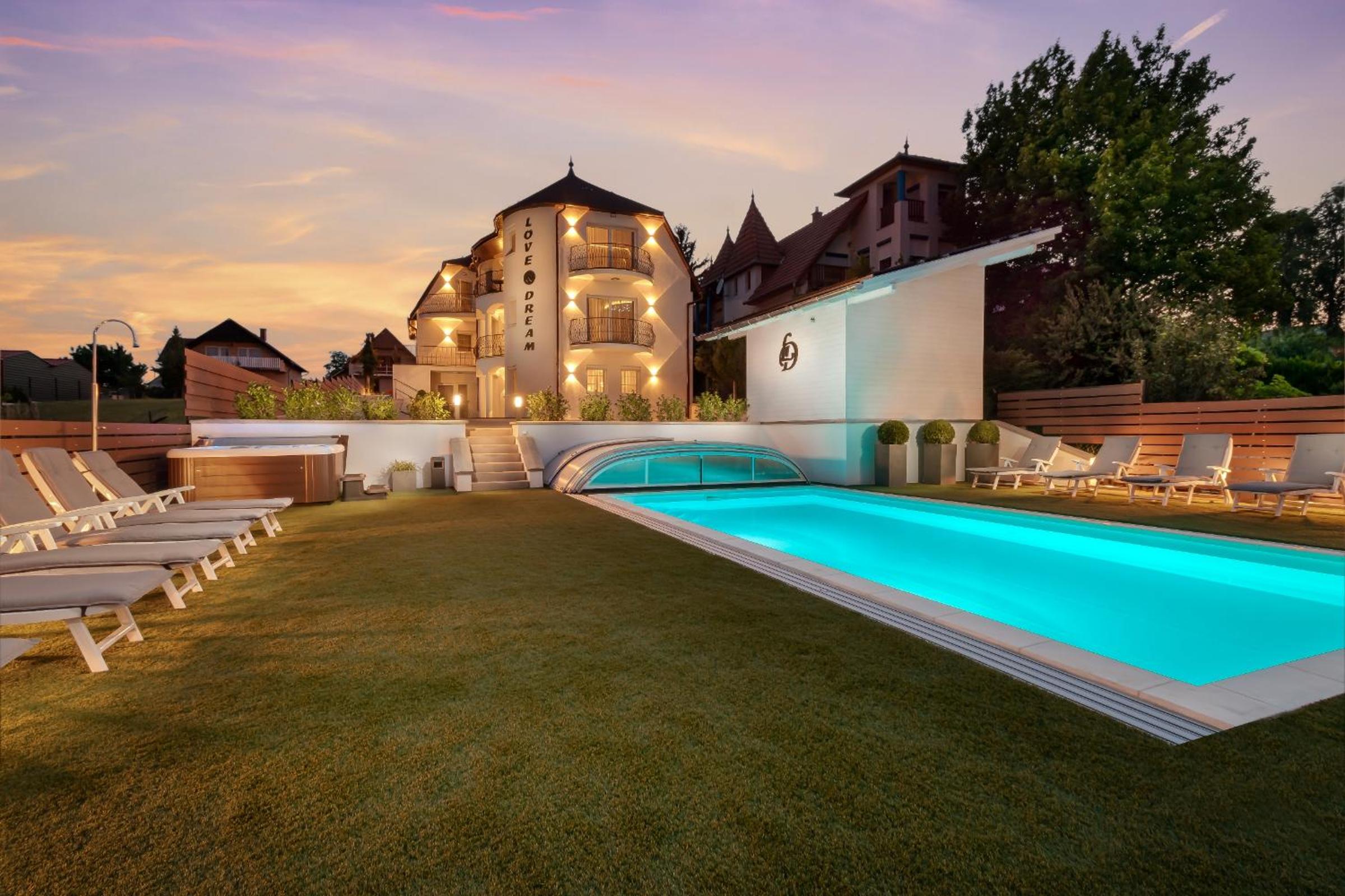 Love and Dream Élményvilla offers a luxurious stay with a sauna, hot tub, and spa facilities. Enjoy pool and garden views, just 1.6 km from Zalakaros Lookout Tower. The rooms feature air conditioning, fully equipped kitchens, flat-screen TVs, and private bathrooms with hot tubs.