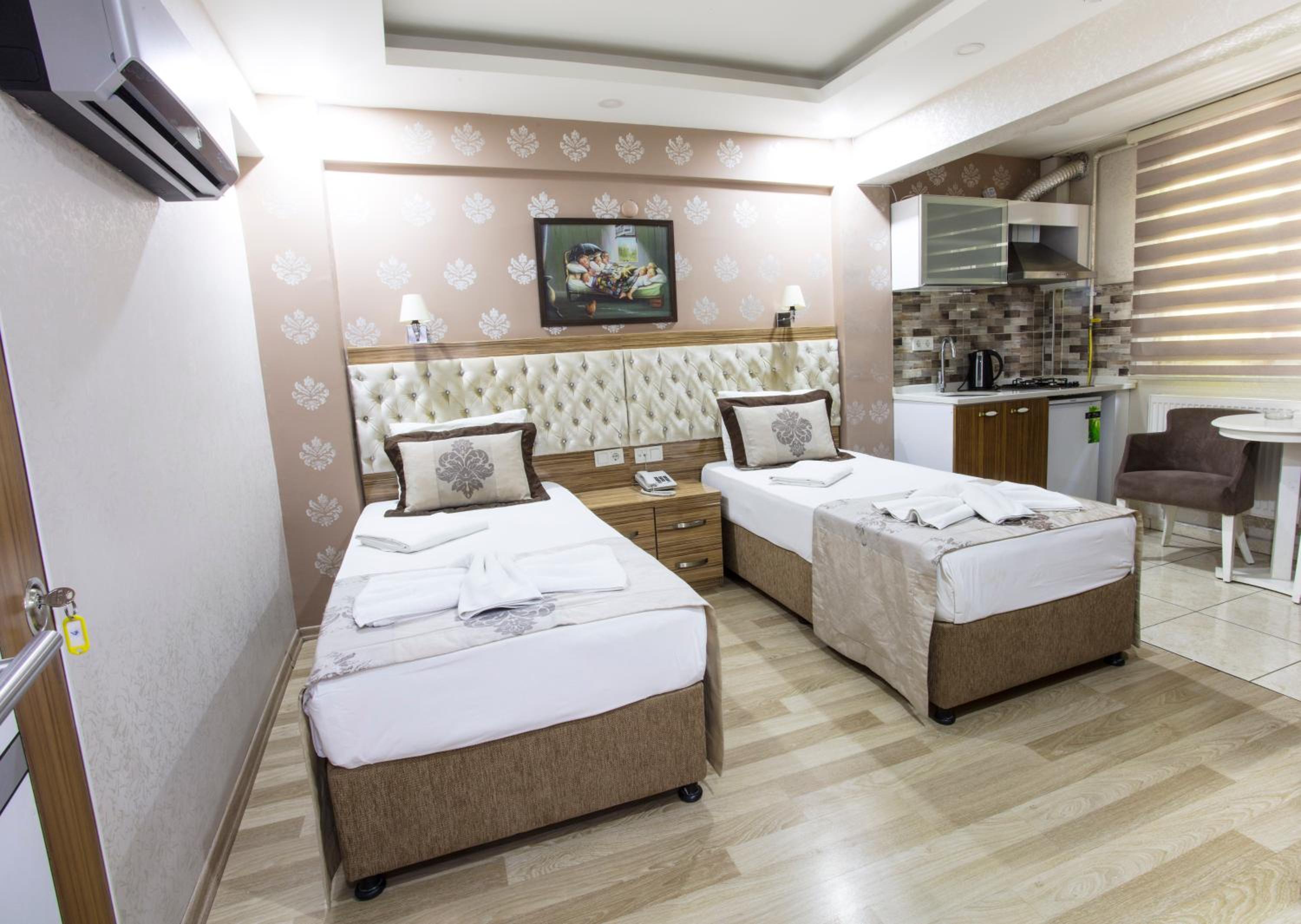 Grand Bagoz Otel offers a prime location near major landmarks in Istanbul, providing a comfortable stay with a seating area, fully equipped kitchen, and free WiFi. The 24-hour front desk, airport transfers, and full-day security ensure a hassle-free experience.