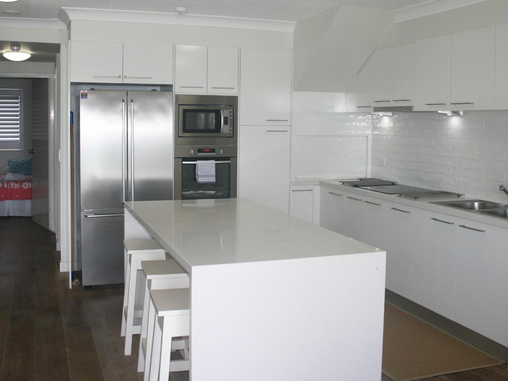 Main bedroom 1 large double bed ( actually 2 single beds pushed together, 2nd bedroom 1 double bed( no 2 single beds), 3rd bedroom 2 single beds(correct). The unit was most definitely not Deluxe, original kitchen ( new upper cupboards with glass doors), very dated cupboards that were painted, very old, and worn bench tops. Original bathrooms, filthy tiles in both showers( probably best to bring shower shoes), can't lock ensuite bathroom door. The glass screen was coming away from bath, i immediately went and told manager, i took photos and was told that it must have happened after unit was checked, thats exactly why i check everything and take photos. Tiles were missing with weird replacements. It was an original unit that needed some love, which is fine if you didn't book a "deluxe" unit, the 2 single bedrooms were extremely hot. It definitely wasn't worth climbing the 3 sets of stairs every single time you went out ( NO LIFTS).There are so many modern units around the same area, it's not really worth having the beachfront position. Nothing is close by( shops, restaurant, etc) you have to drive everywhere you go. When I voiced my concerns regarding the state of unit, I was told the kitchen cupboards were brand ne. Clearly, it's an extremely old and dated unit. There were six beds in this unit but only 4 dining chairs. This was our 3rd time we stayed in these apartments, 2009, 2014, and 2025 , the outside has remained updated and extremely well looked after, but not some units. The price I paid did not match the product.