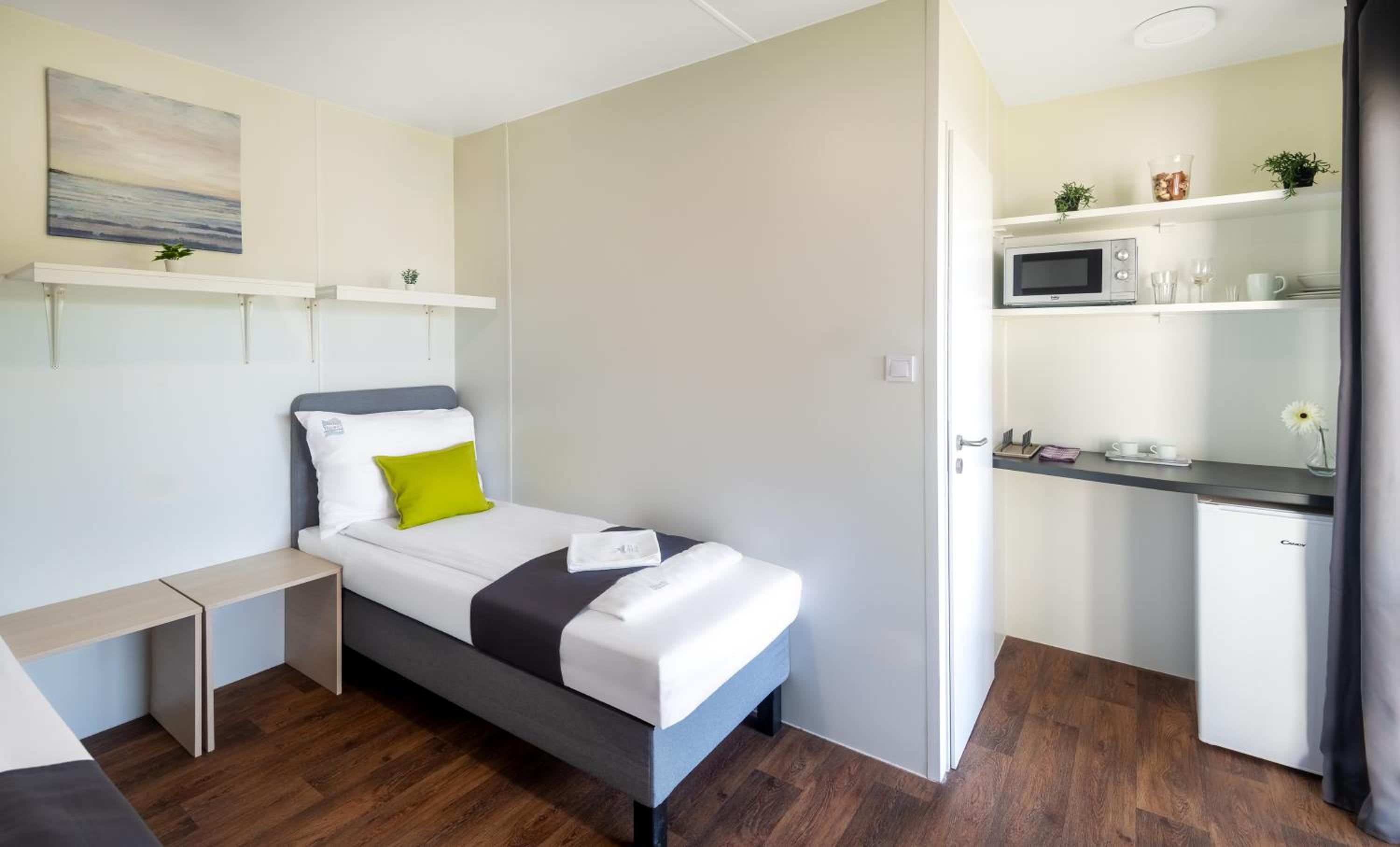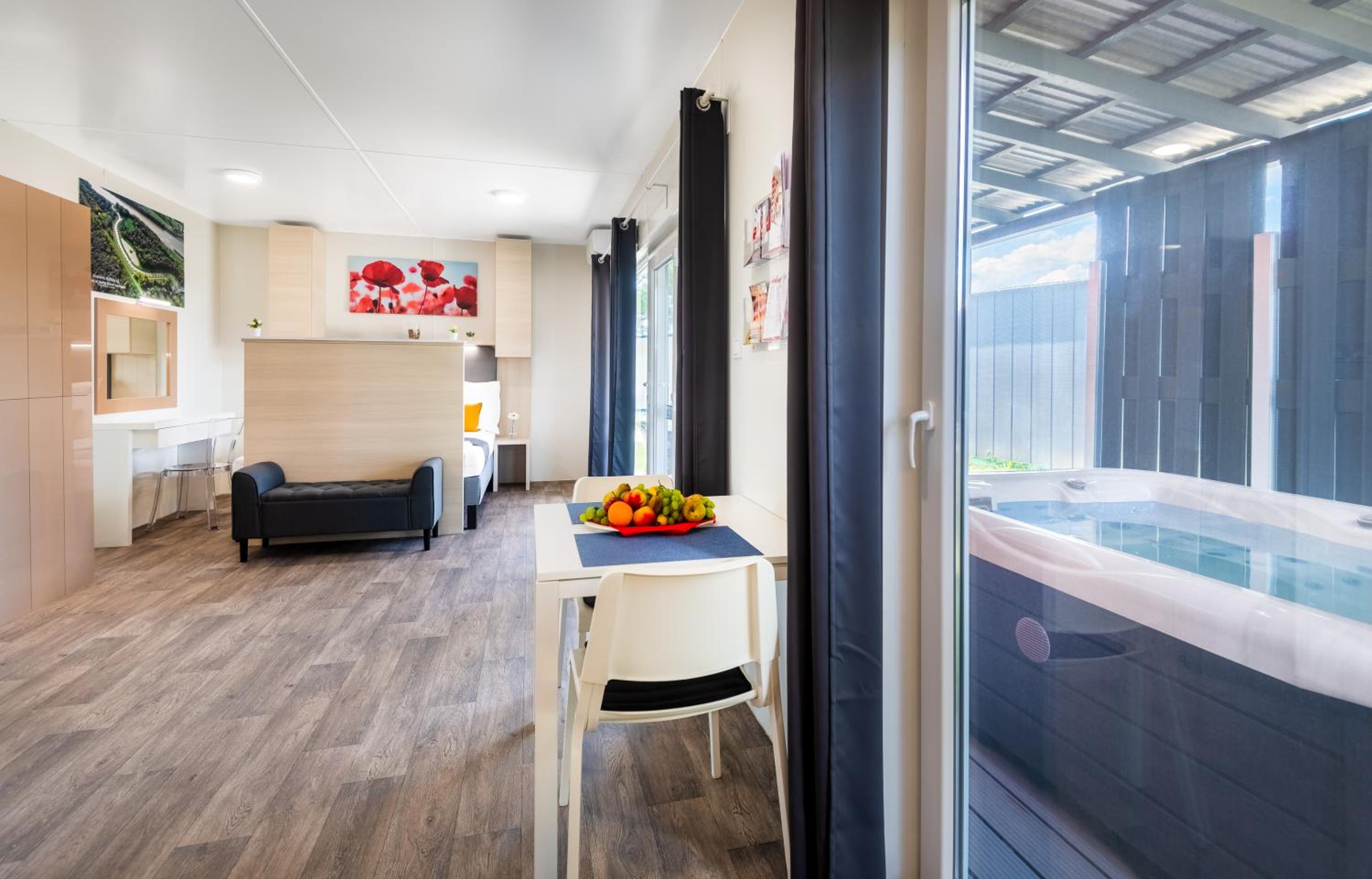 Amit csak a valóságban tapasztal meg az ember, hogy nagyon szűkösek a helyiségek, elég sok mindenen látszik, hogy használat közben már leamortizálódott (vízköves mosdószegély, zsírfolt a padlón, hiányzó szekrényajtó a fürdőben). Nekem az sem jött át a foglaláskor, hogy gyakorlatilag egy konténer kempingbe érkezünk. Zsúfolt, és nem túl igényes. A takarítás sem volt tökéletes, az egyik apartmanunkban pl. bent felejtették az előző vendég szemetét. A medence jóval kisebb, mint amilyennek a fotókon tűnik. És furcsa az is, hogy a szállóvendégeknek is fizetni kell a Tisza-tavi strand használatáért. (ez nem jött át a szállásról írt tájékoztató alapján) A szauna csak délután 4 óra után volt használható, akkor is volt, hogy csak később fűtötték fel, pedig kifejezetten rossz, hideg időnk volt. Ráadásul számomra meglepően magas volt a "foglalási" költség is, amit a szállás a bookingos foglalási díjakon felül felszámított.