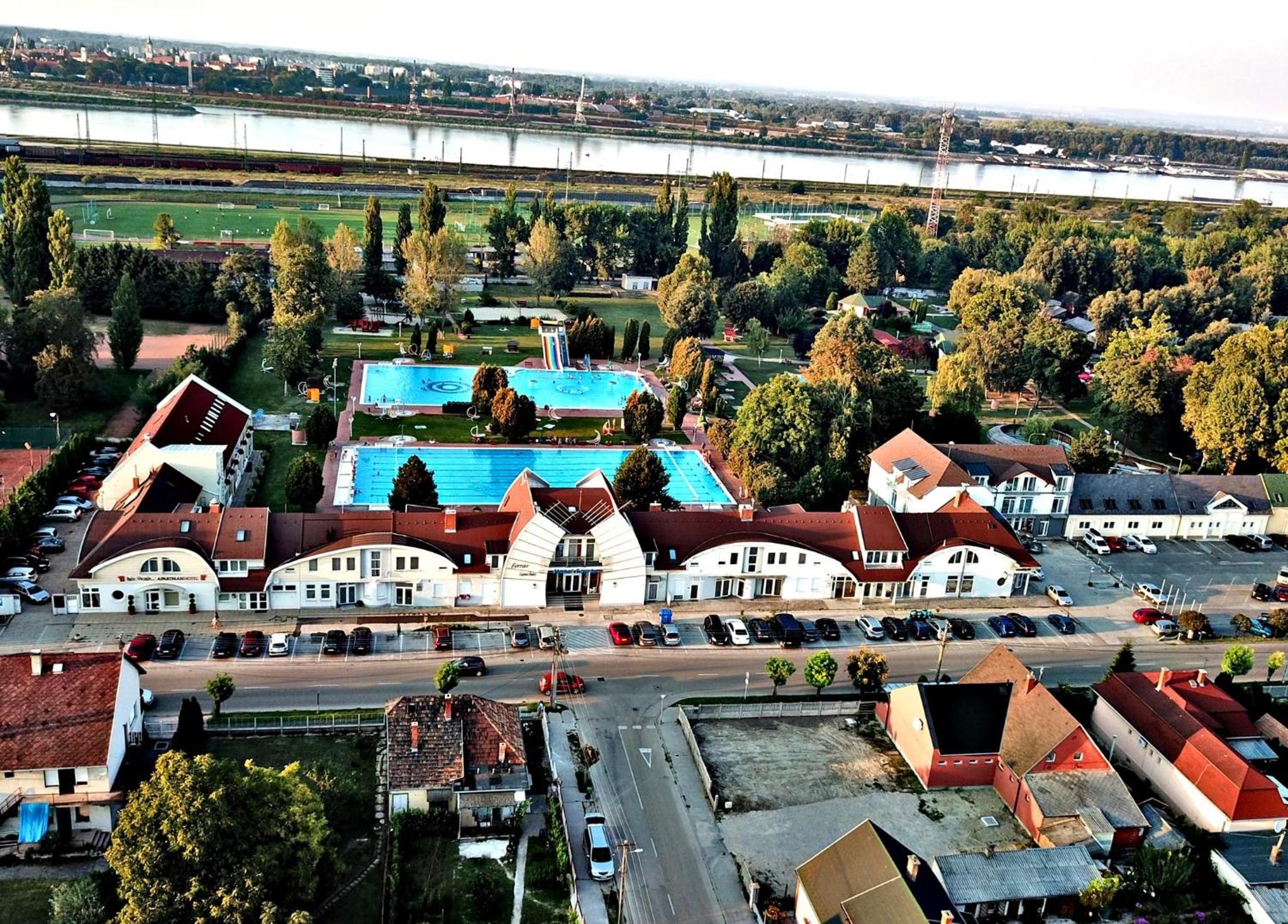 At the Hét Vezér Apartmanhotel in Komárom, immerse yourself in luxury with your own entrance to the thermal spa. Enjoy the convenience of air-conditioned apartments, free internet, and complimentary parking.