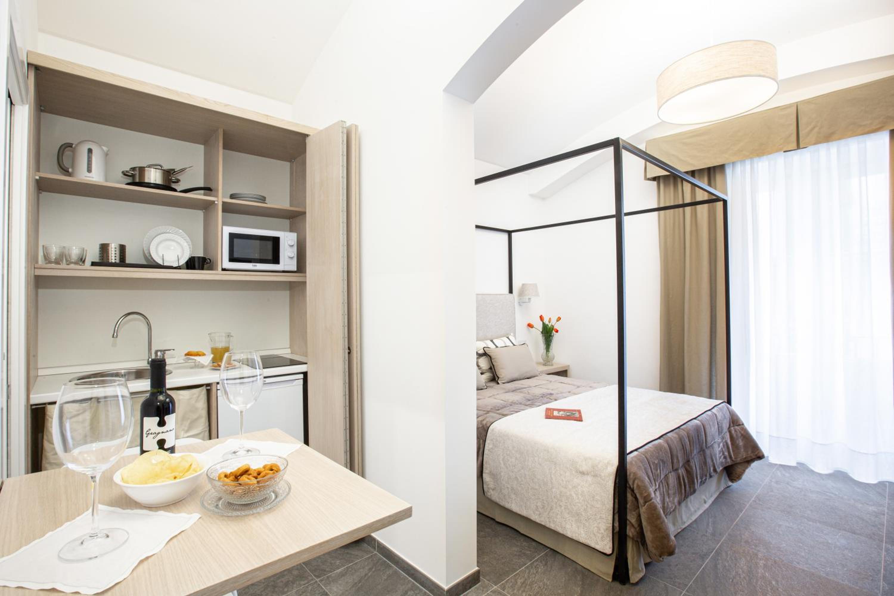 The apartment was well appointed with a clean, modern bathroom and kitchenette. The ‘little extras’ were generous and the bed was very comfortable. Centrally located it was convenient with a gorgeous restaurant just meters away from your front door.