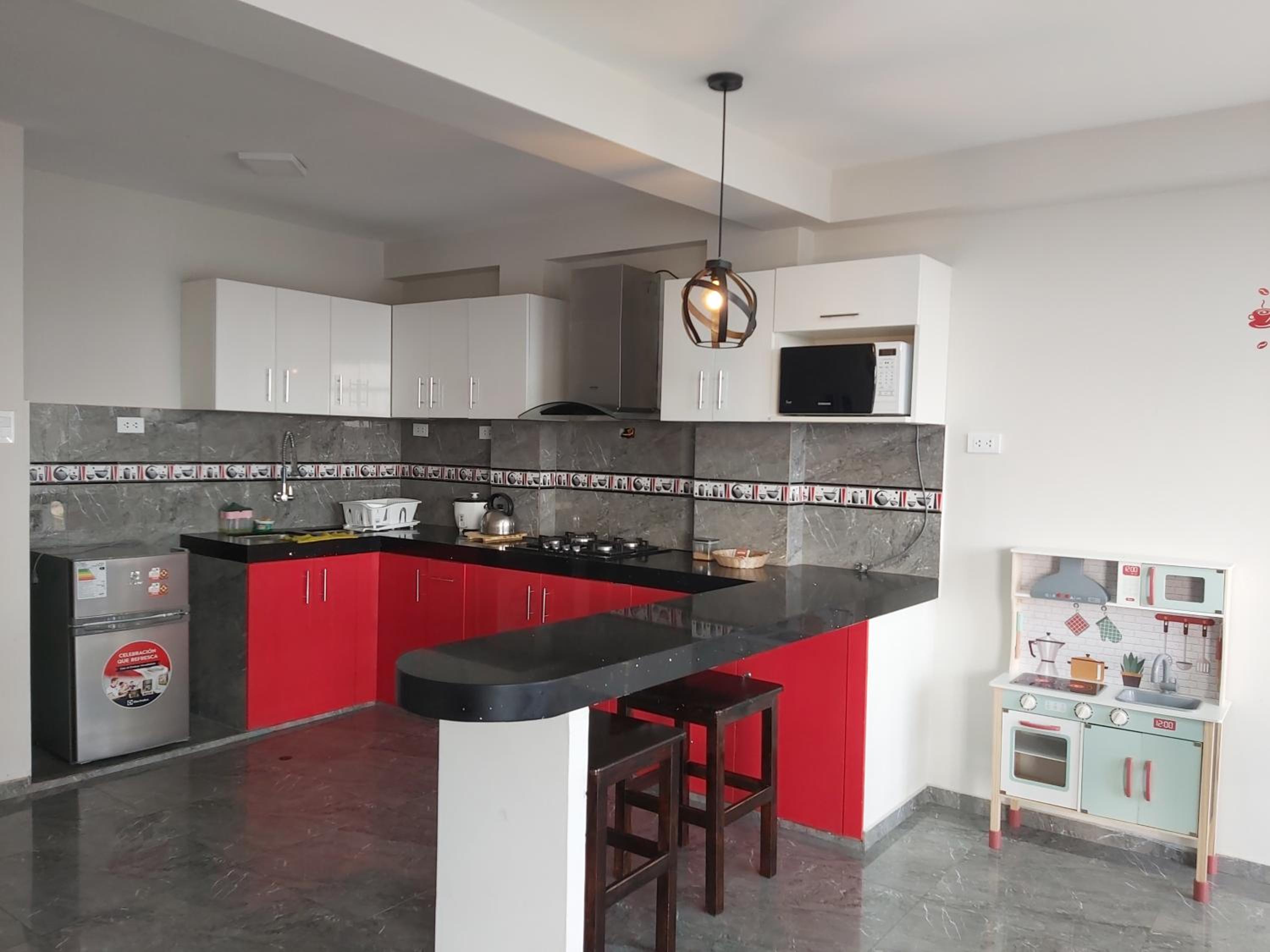 En si todo me gustó. Solo le pondría más utensilios de cocina y un horno. También TV en las habitaciones.