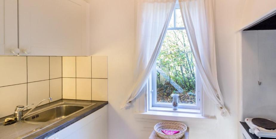 Peruskuntoinen pikkuhuoneisto vanhassa puutalossa. Ahdas keittonurkkaus jossa yksi pistorasia mistä pystyi käyttämään joko mikroa, keittolevyä tai kahvinkeitintä.