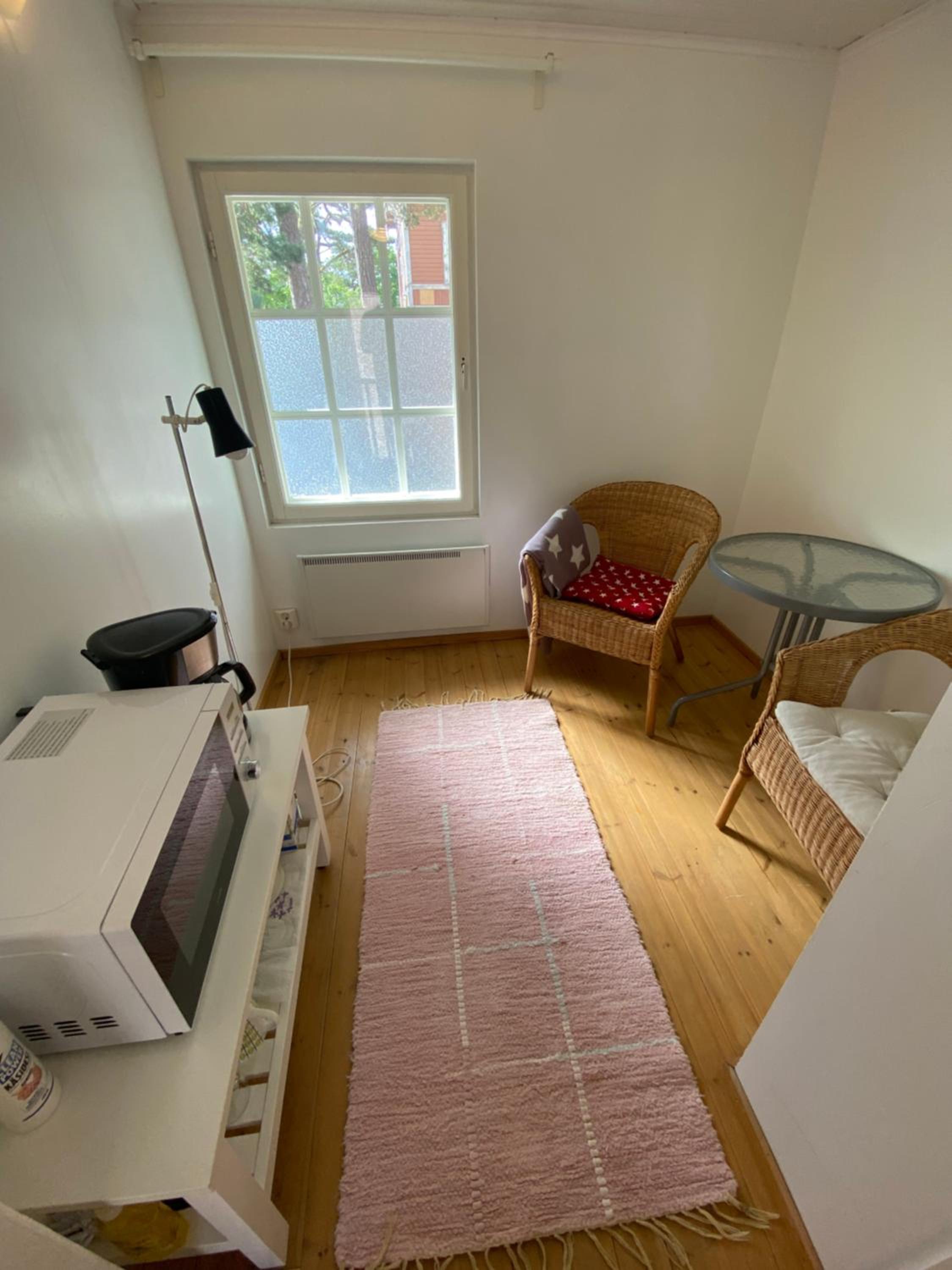 Huoneen patteri ei ollut päällä illalla mennessä. Syksyllä on jo viileää ja olisi huomaavaista lisätä lämpöä etukäteen. Lämmitys kyllä toimi sitten ihan ok. Oikein kylmällä pakkassäällä voi olla vetoisaa.