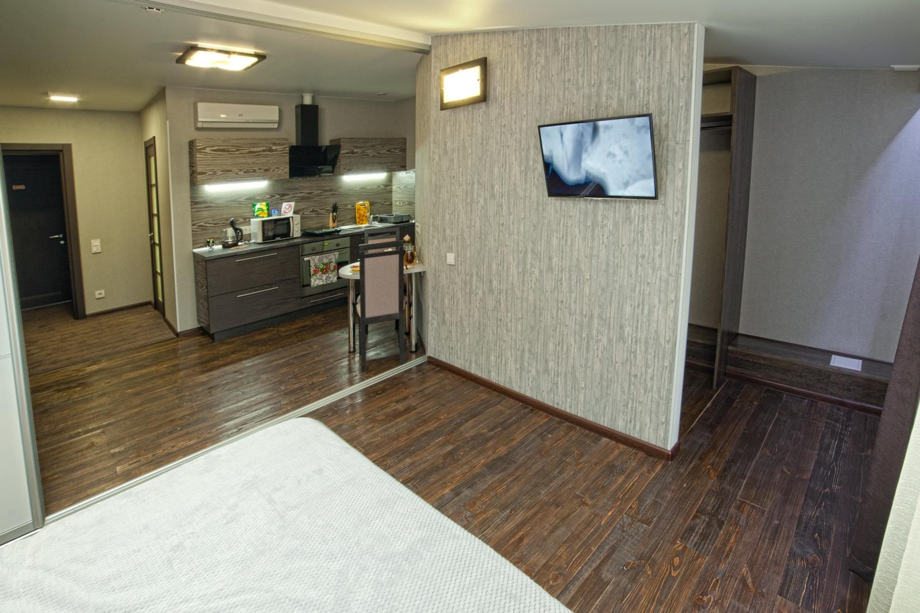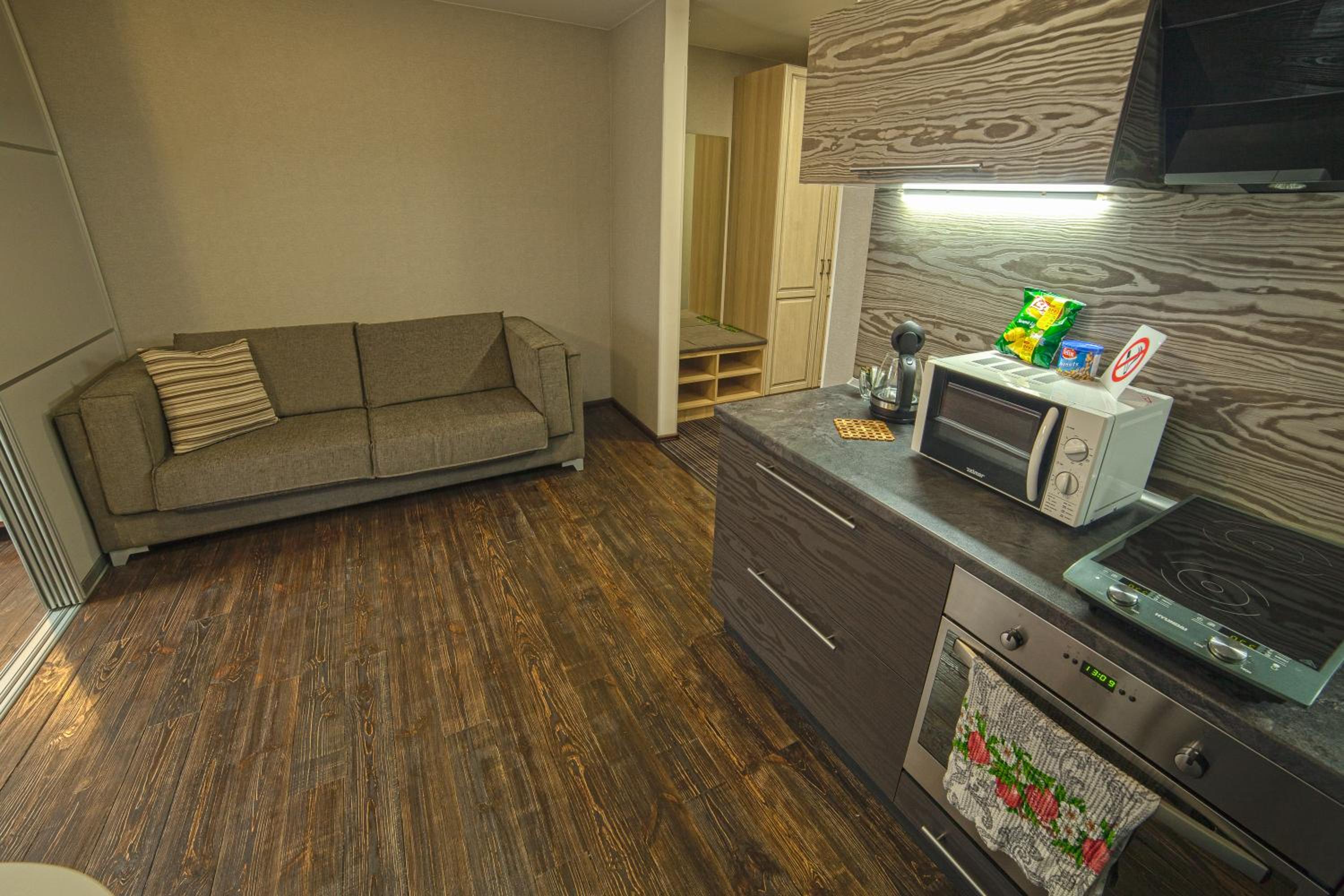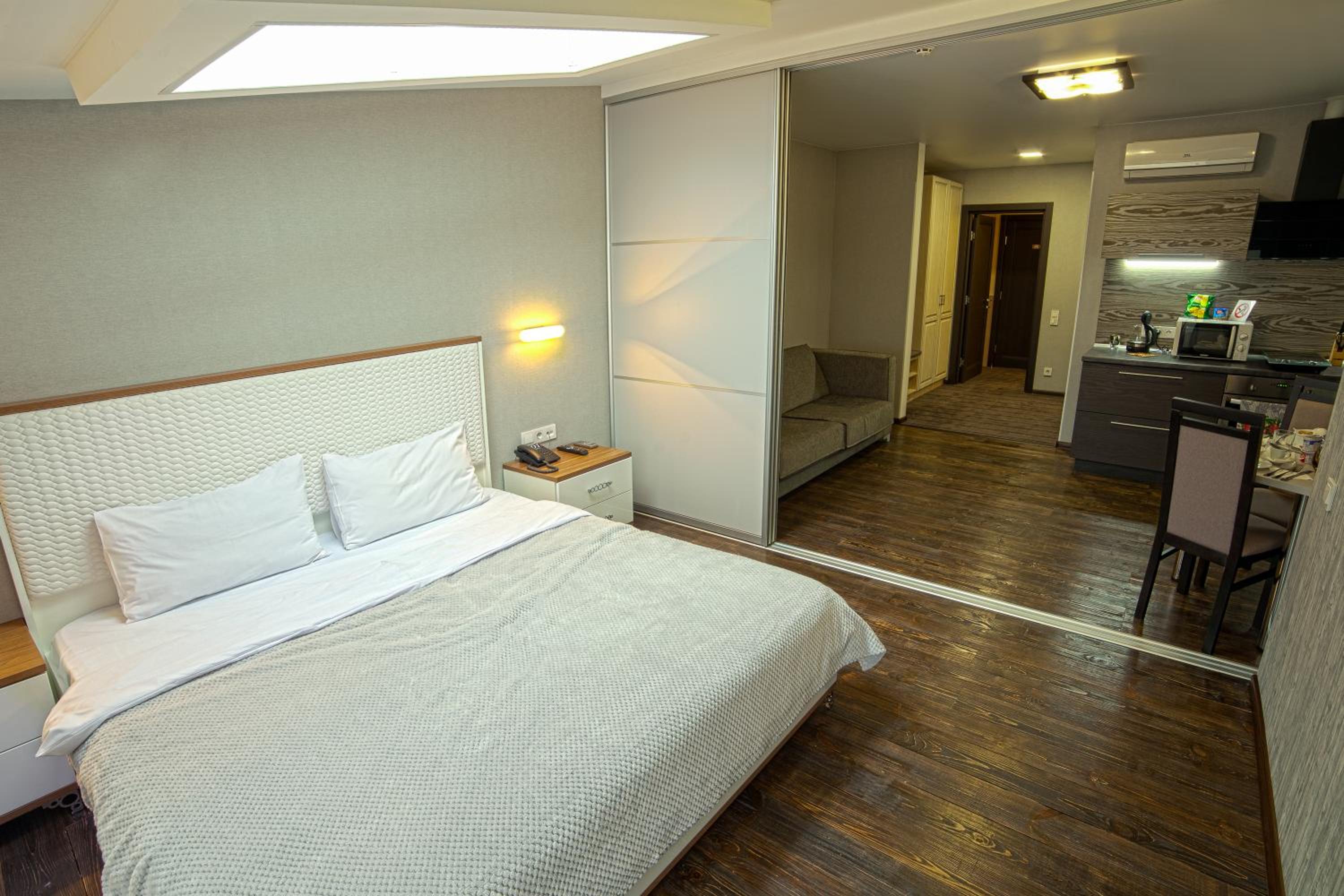 Дуже швидко змогли заселитися, буквально в той же день бронювали. Привітний персонал, дуже чисто і затишно. Окремий великий плюс, що кухня і санвузол є в номері і сам номер дуже просторий і світлий. Повернуся туди ще)