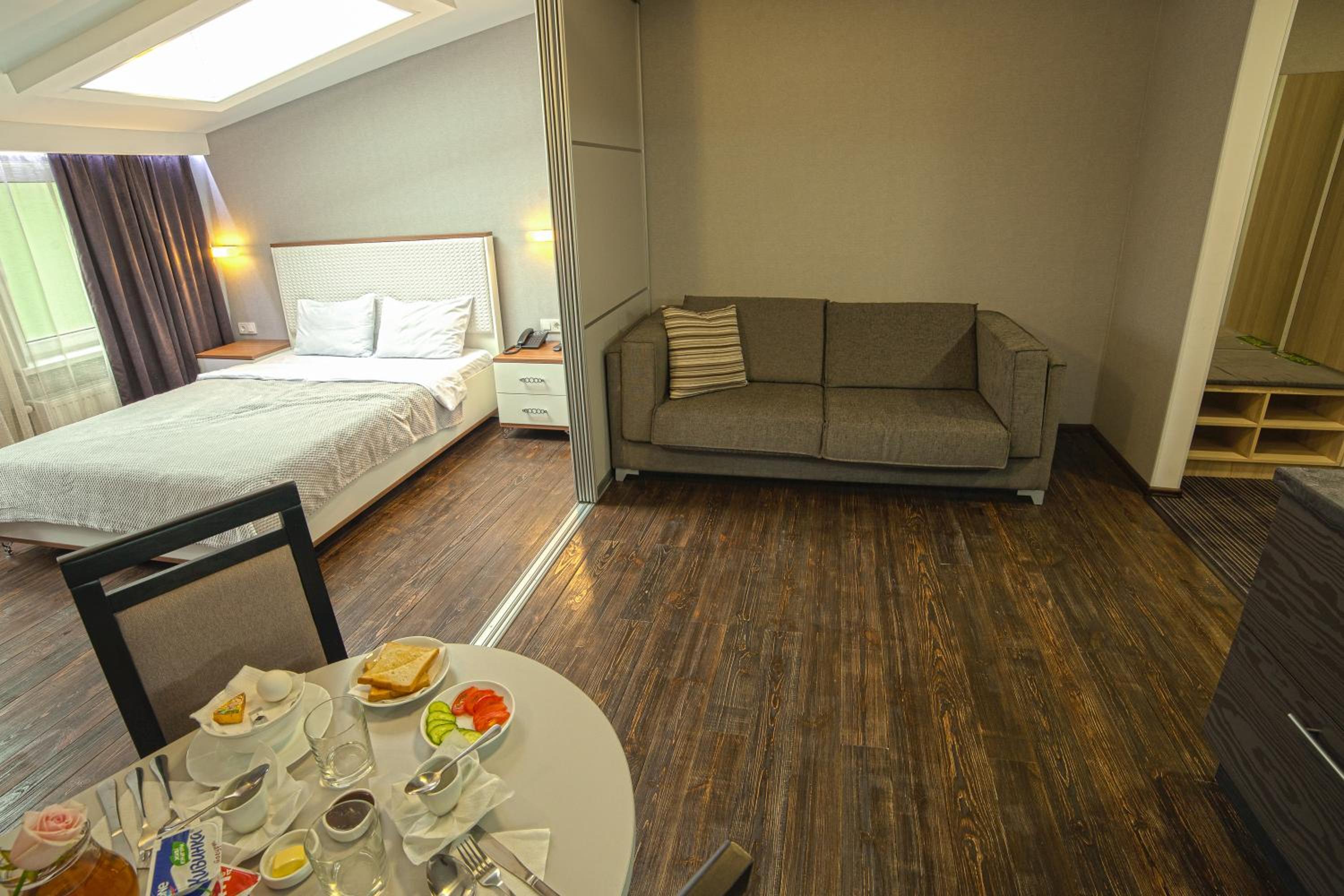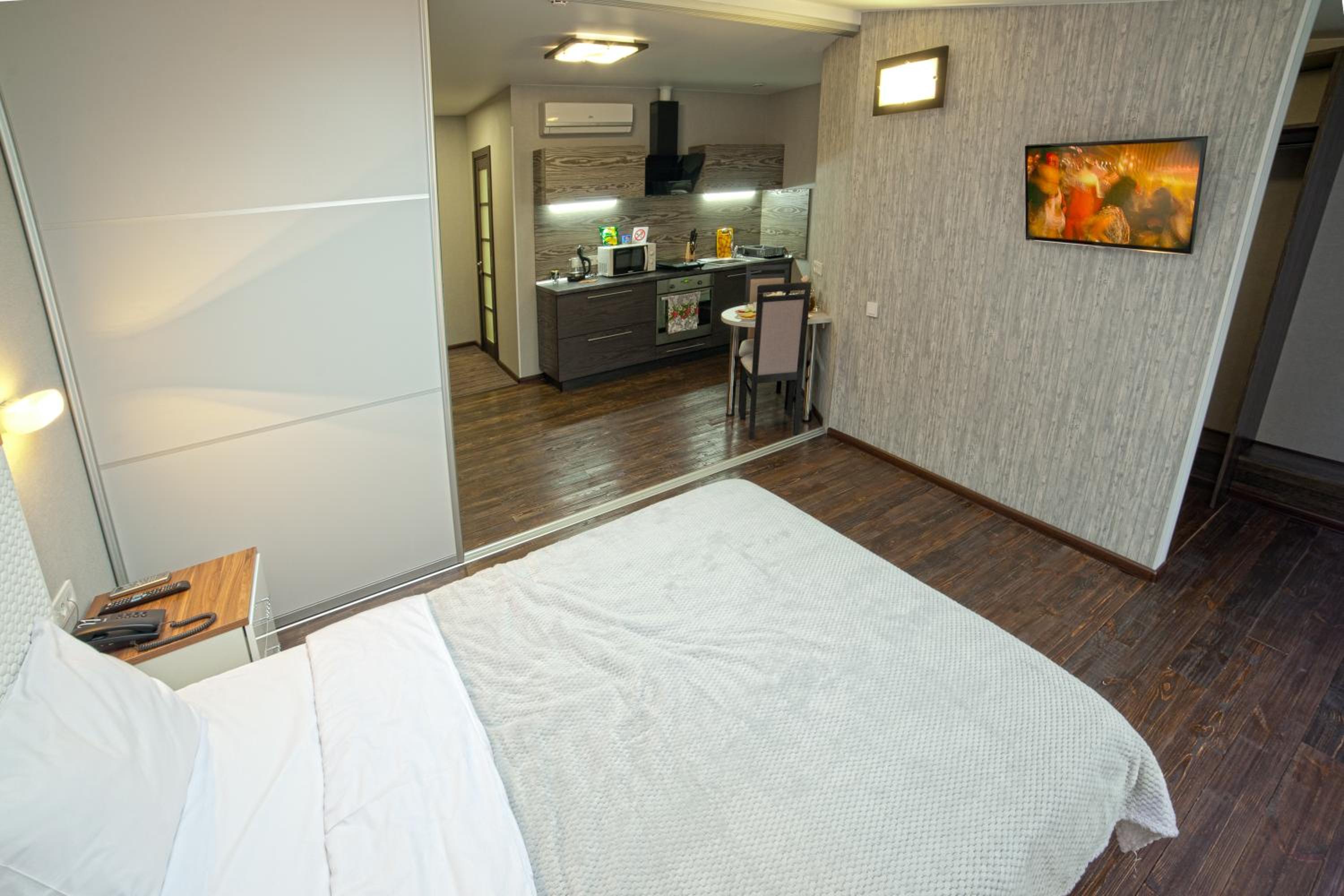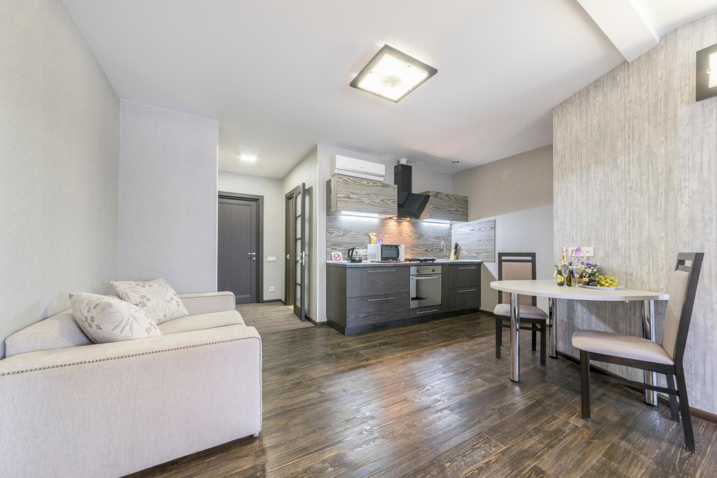 Дуже швидко змогли заселитися, буквально в той же день бронювали. Привітний персонал, дуже чисто і затишно. Окремий великий плюс, що кухня і санвузол є в номері і сам номер дуже просторий і світлий. Повернуся туди ще)