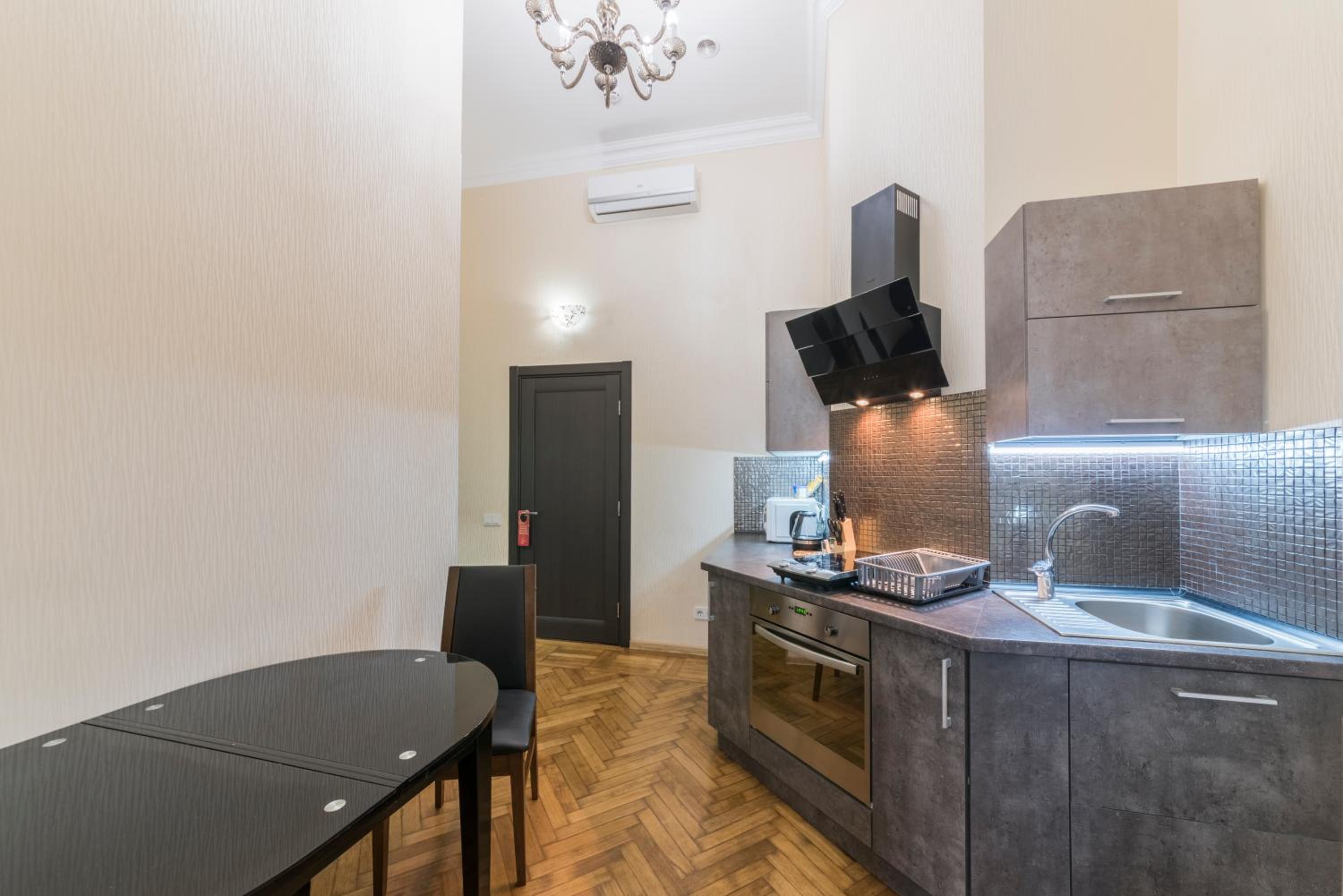 Очень стильная квартира. Нам прям очень зашла. Чистенько, есть всё необходимое. Рядом магазины скпермаркеты.