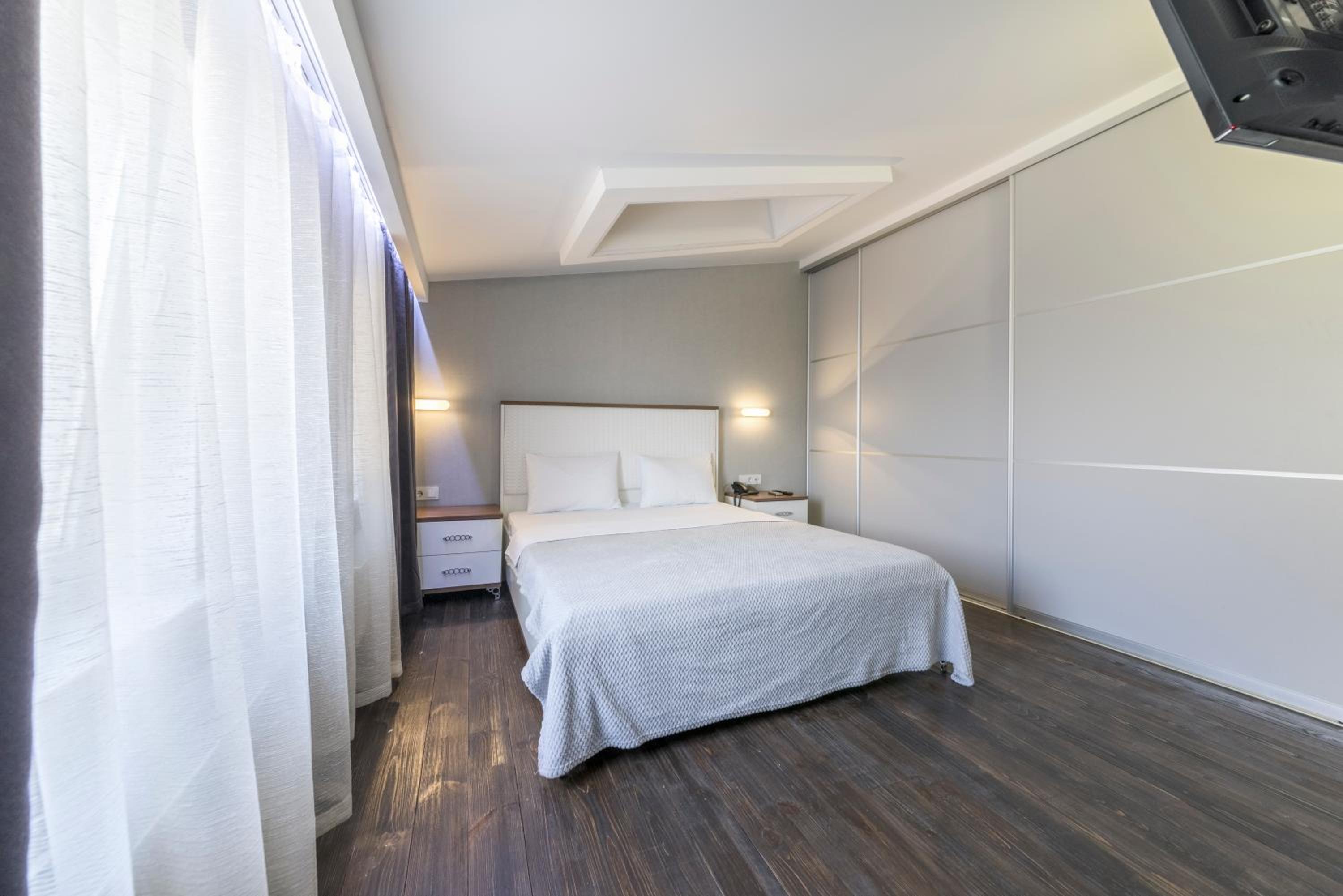 номер дуже просторий, є всі необхідні зручності, продезинфікований унітаз, наявна кухня та великий холодильник, ліжко велике та дуже комфортне , матрац дуже зручний , постіль свіжа